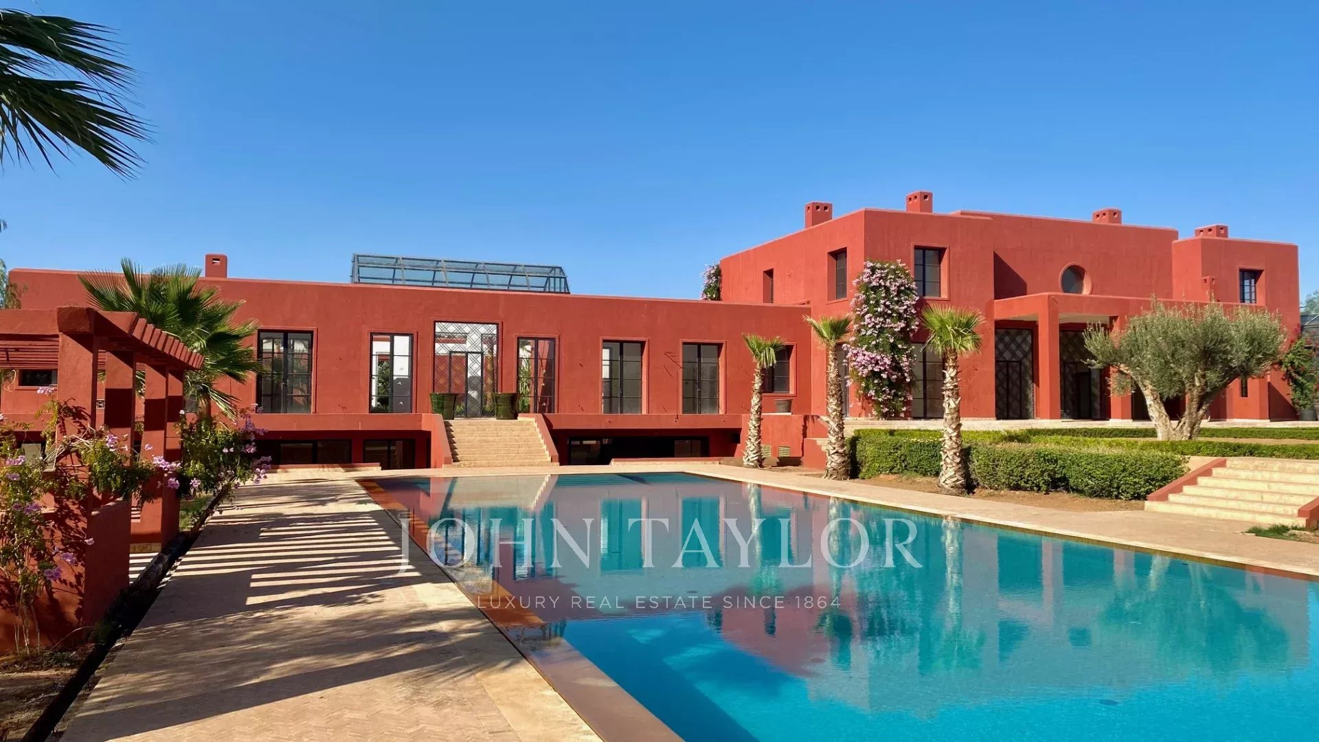 This property is enviably located in an exclusive gated community with golf course less than 15 minutes from downtown Marrakech.