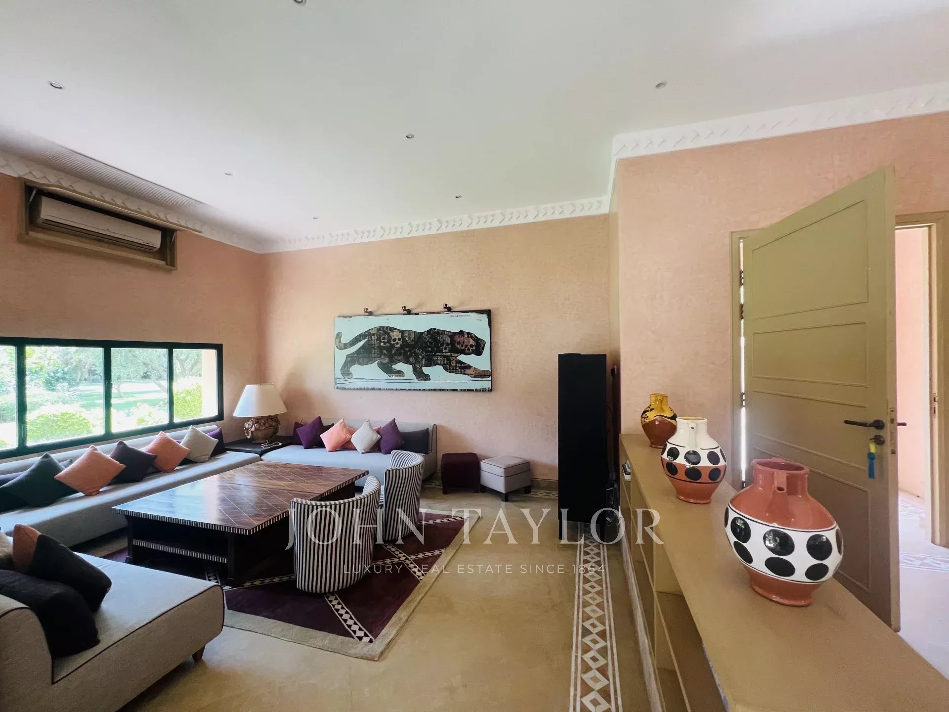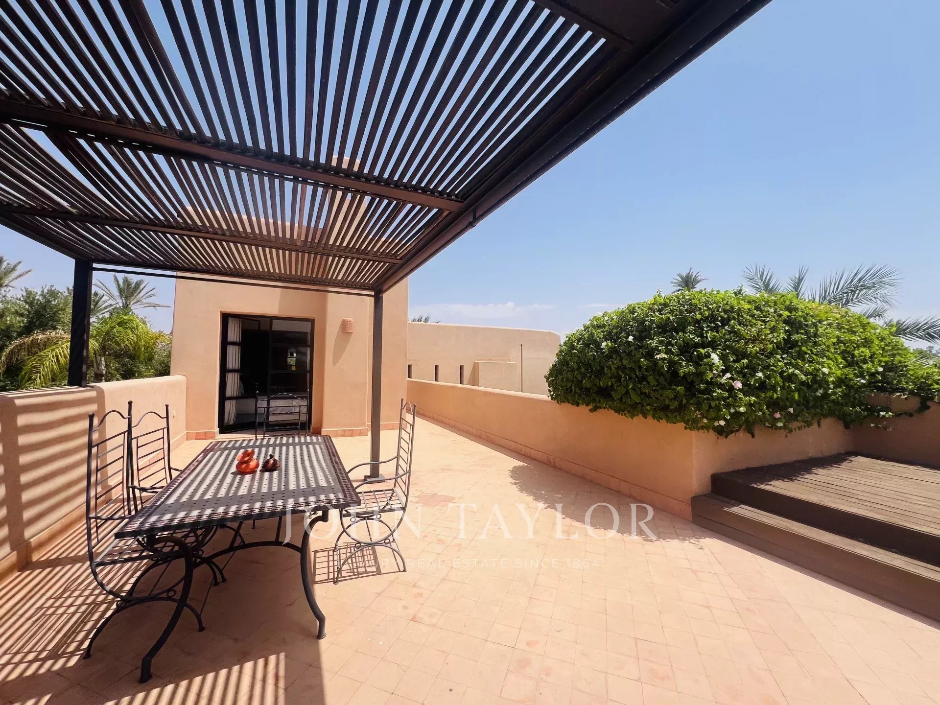 This property is enviably located in a small gated community a mere 15 minutes from downtown Marrakech.