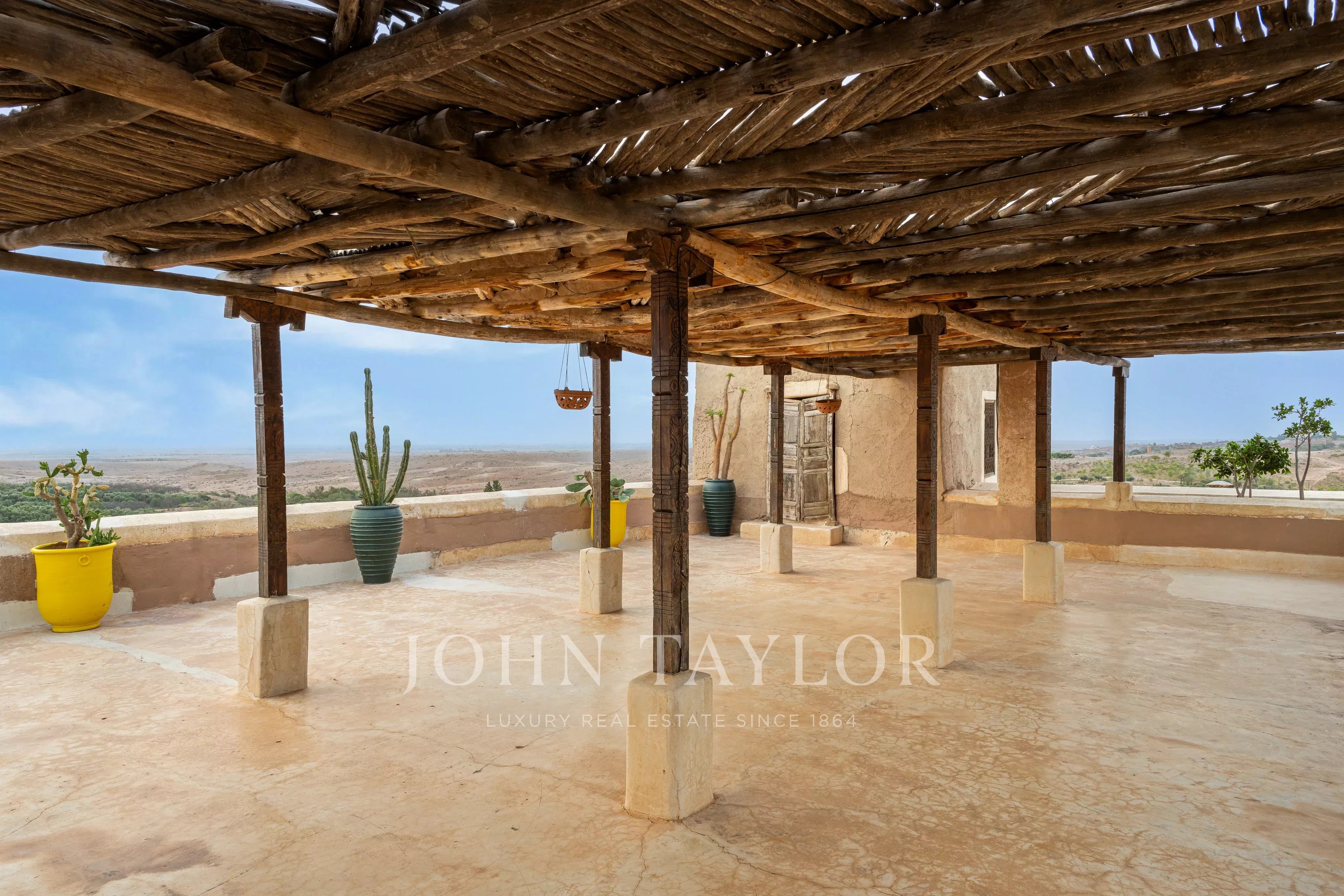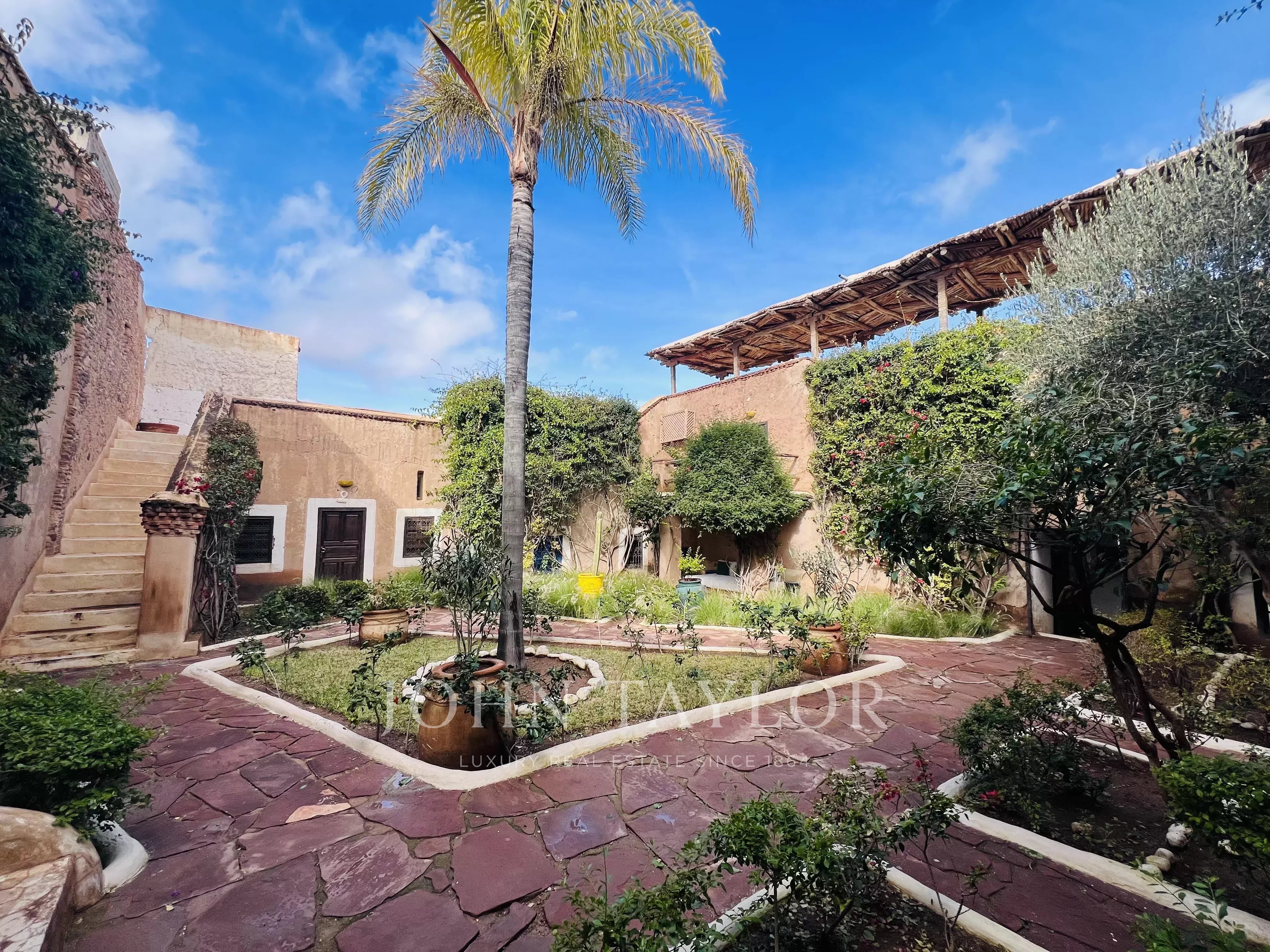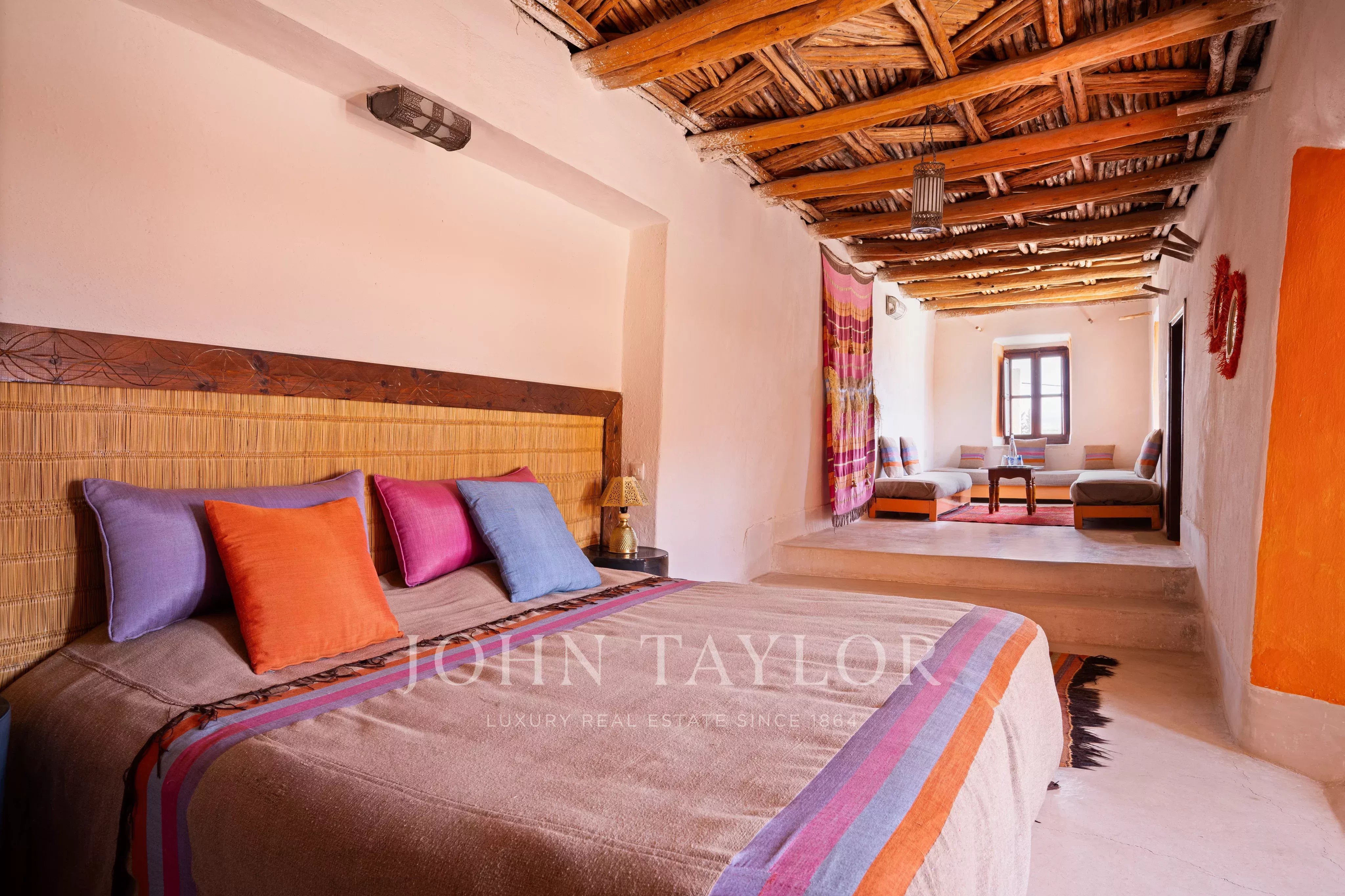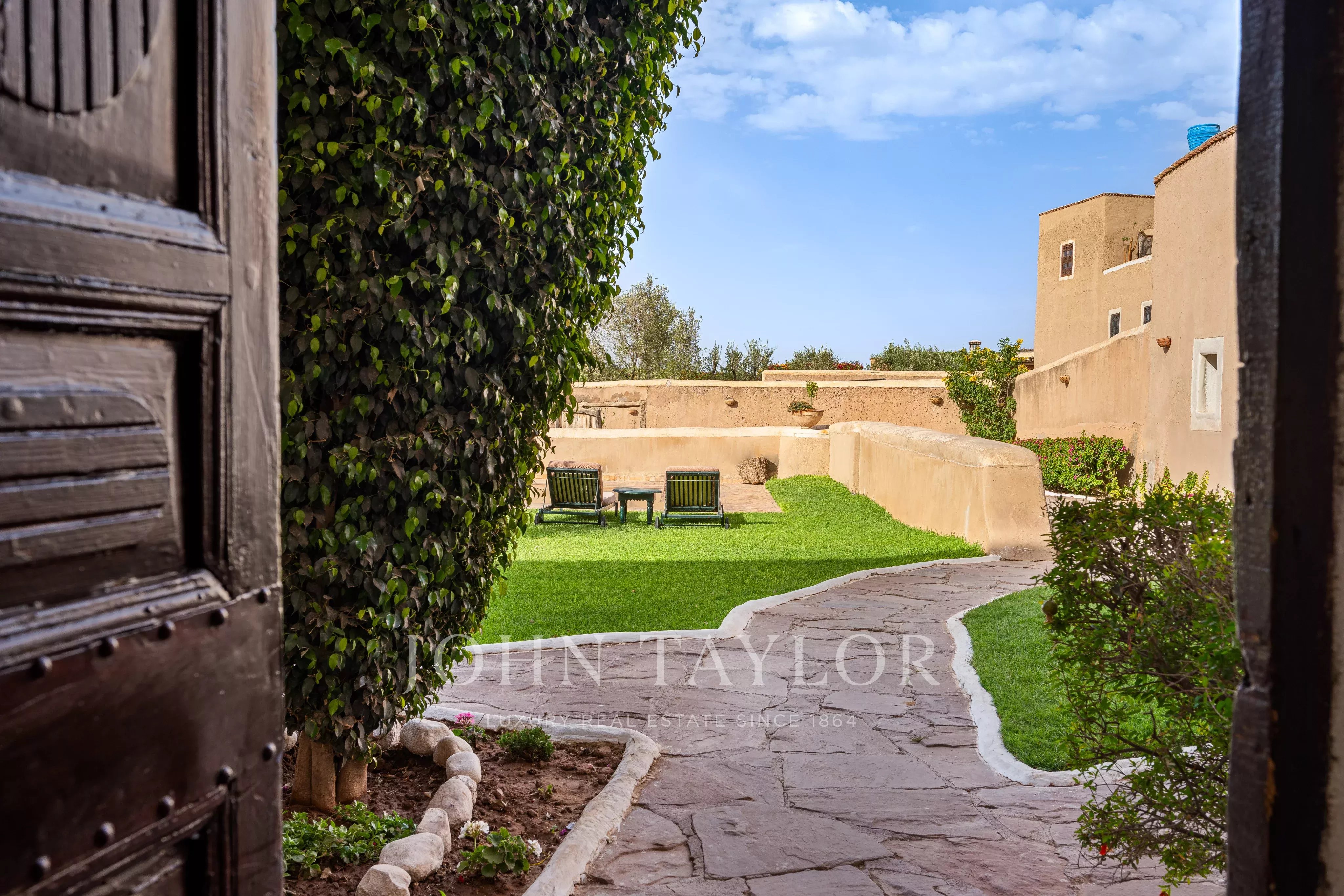 Designed in the most charming and authentic Berber style consisting of succession of interlacing courtyards, the 2 building combine rammed earth and tadelakt, with wood beamed ceilings: it perfectly blends in its local environment.