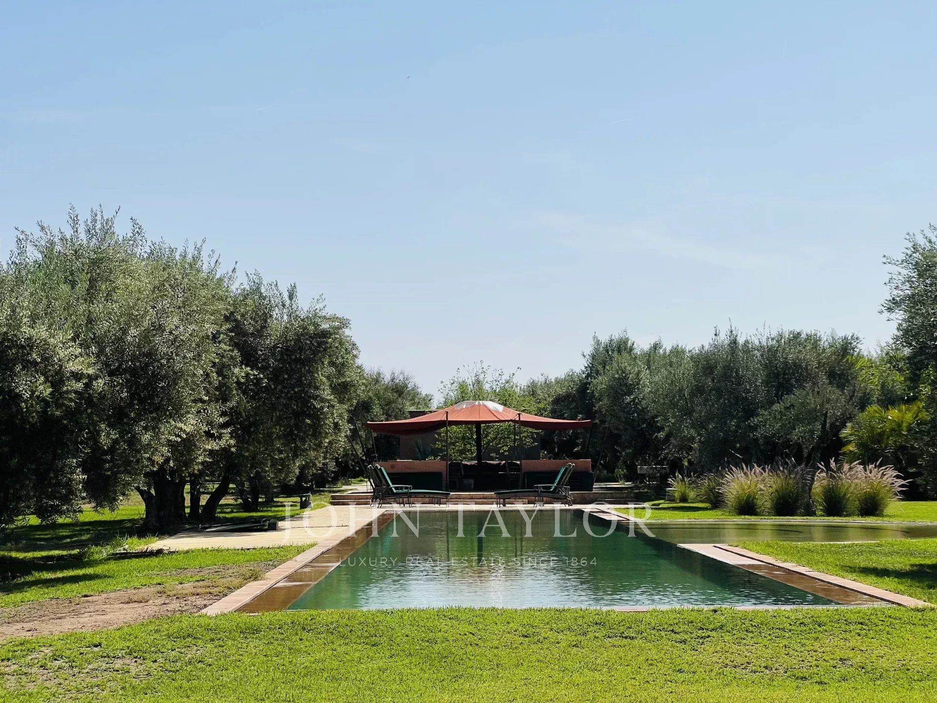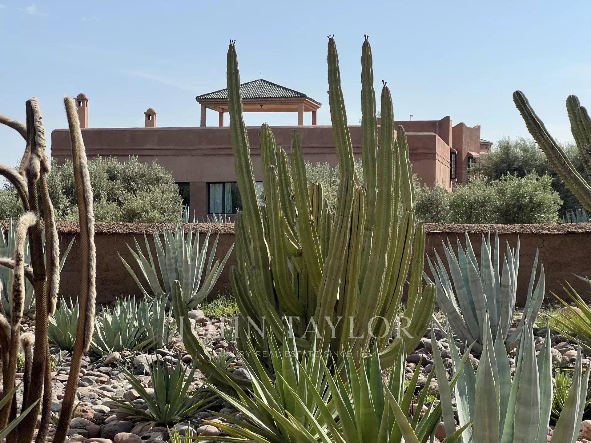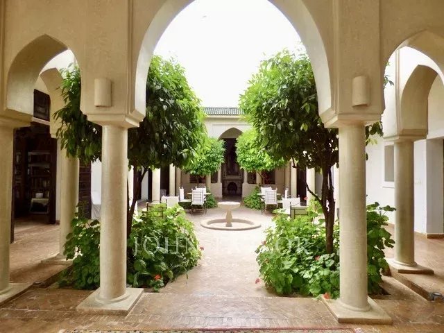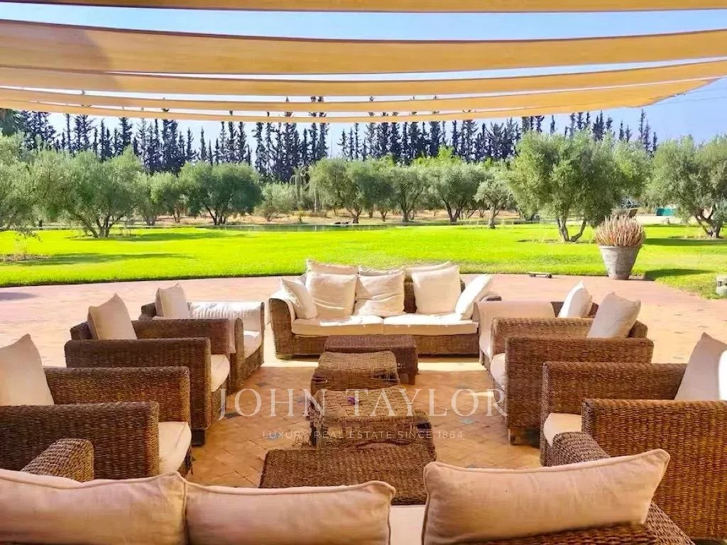 Boasting a 1 000 sqm internal size, the villa with classical lines is spread around 2 courtyards in the spirit of a traditional Riad. It comprises: 2 living-rooms with fireplaces, a dining-room, a large fitted kitchen with rear kitchen, 5 spacious ensuite bedrooms one of which a master as well as a basement with staff quarters.