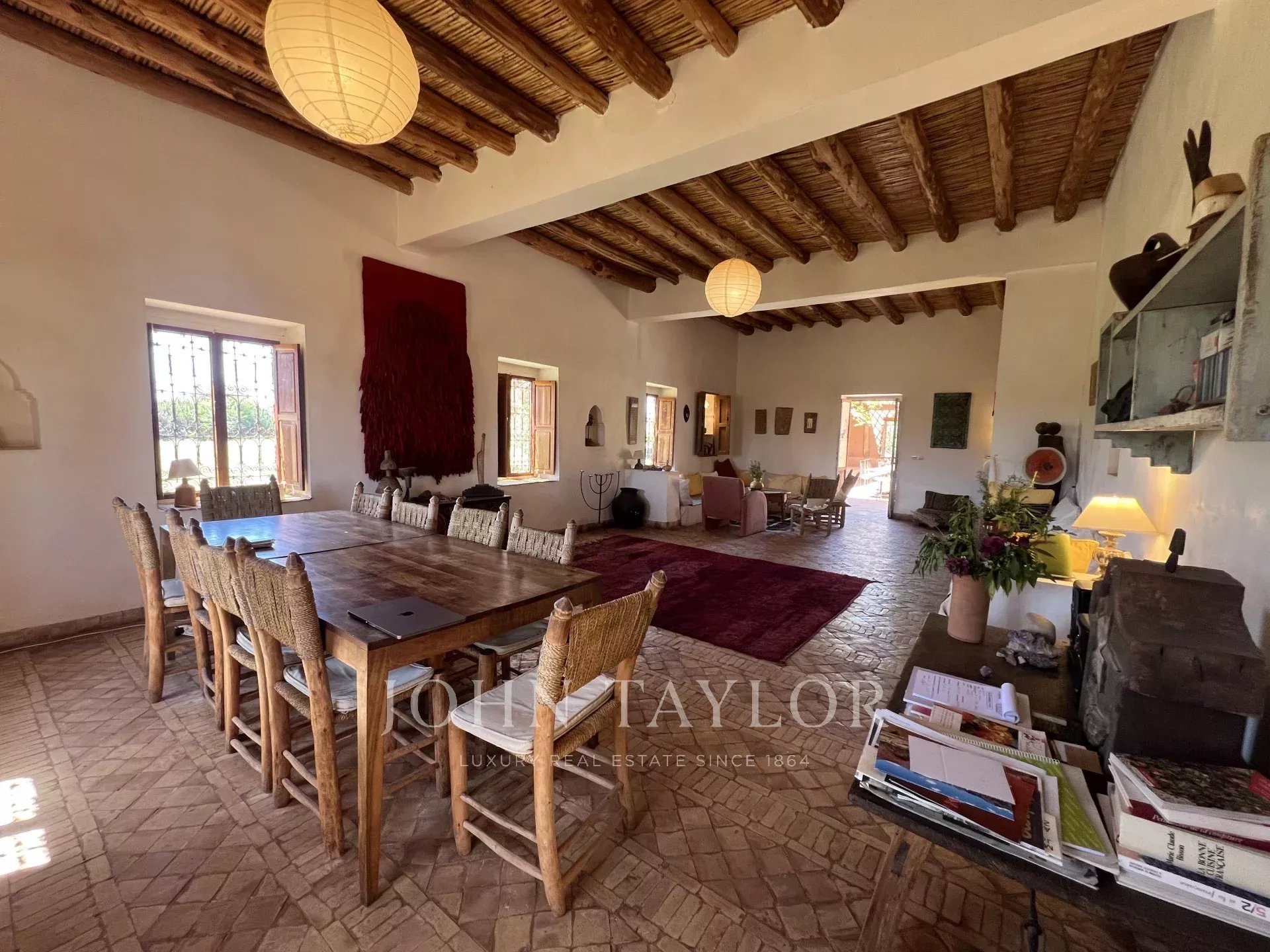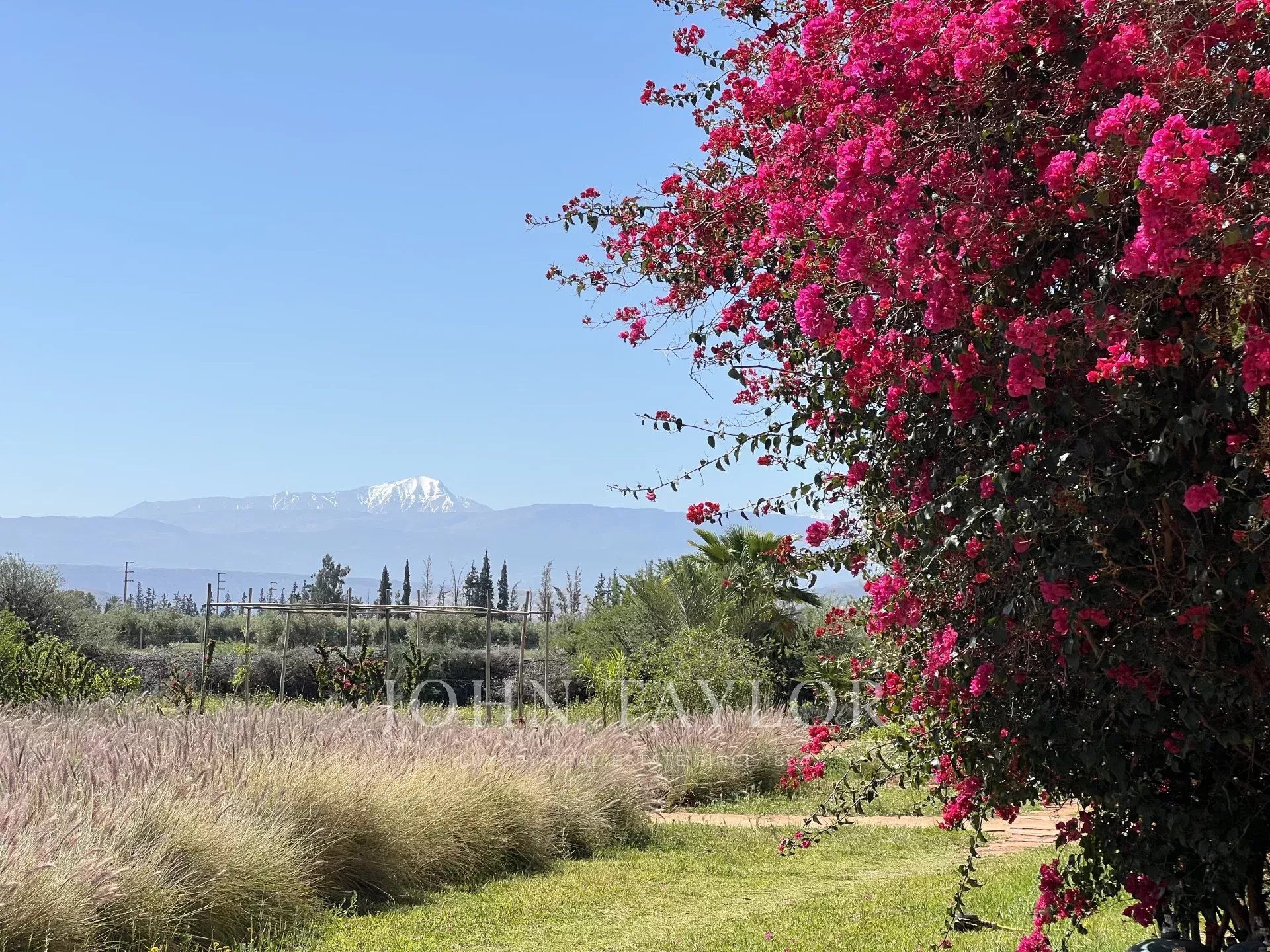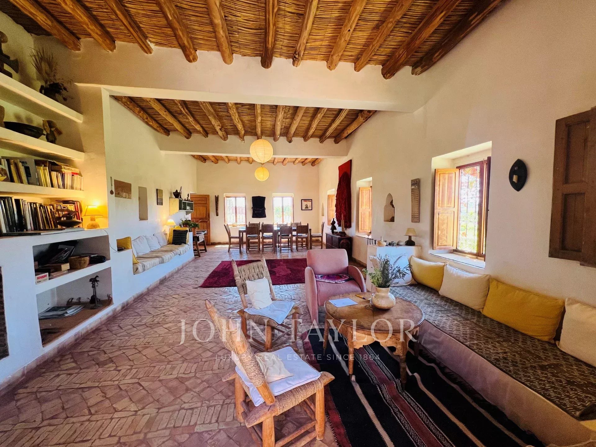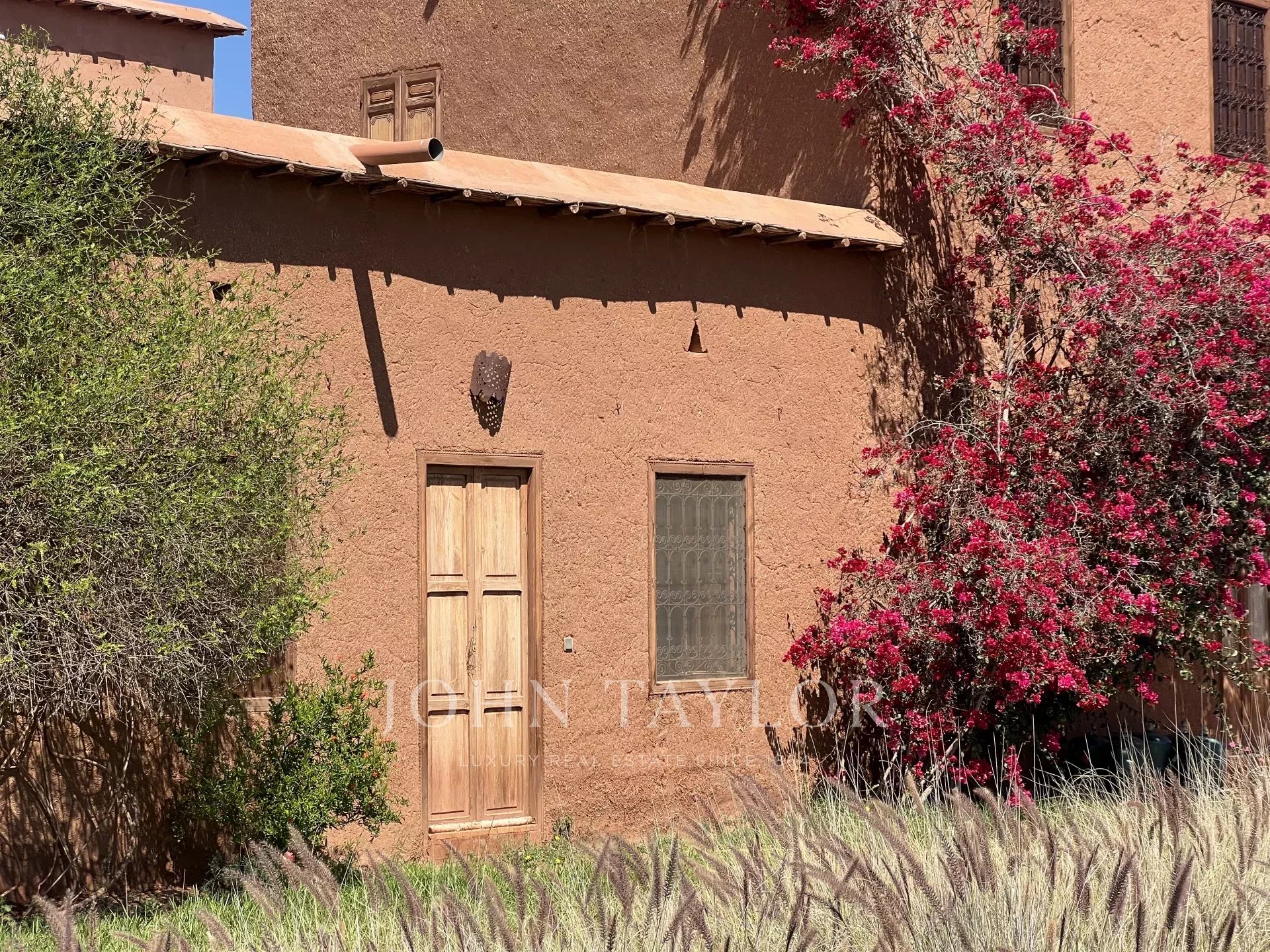 Set on a 2 hectare plot with fruit and olive trees, the grounds include the kasbah built in 2008, a vegetable garden, a swiming-pool with pool-house and 2 outbuildings, one of which hosting a studio with 2 potential extra bedrooms. Views on the Atlas mountains are utterly superb.