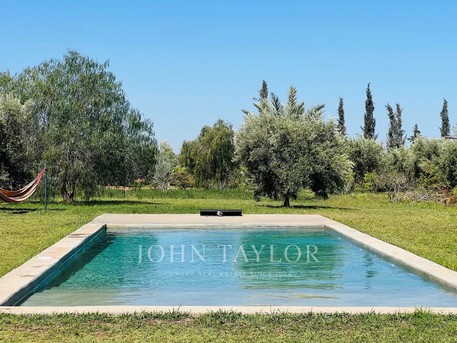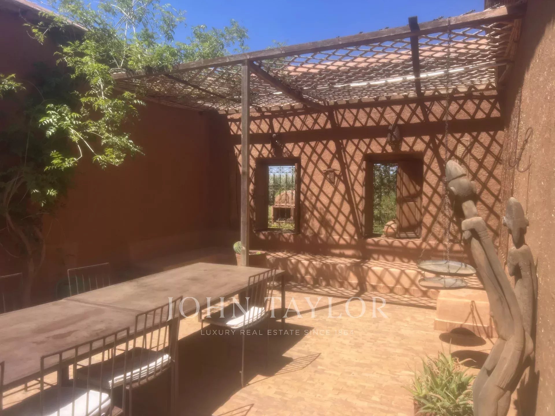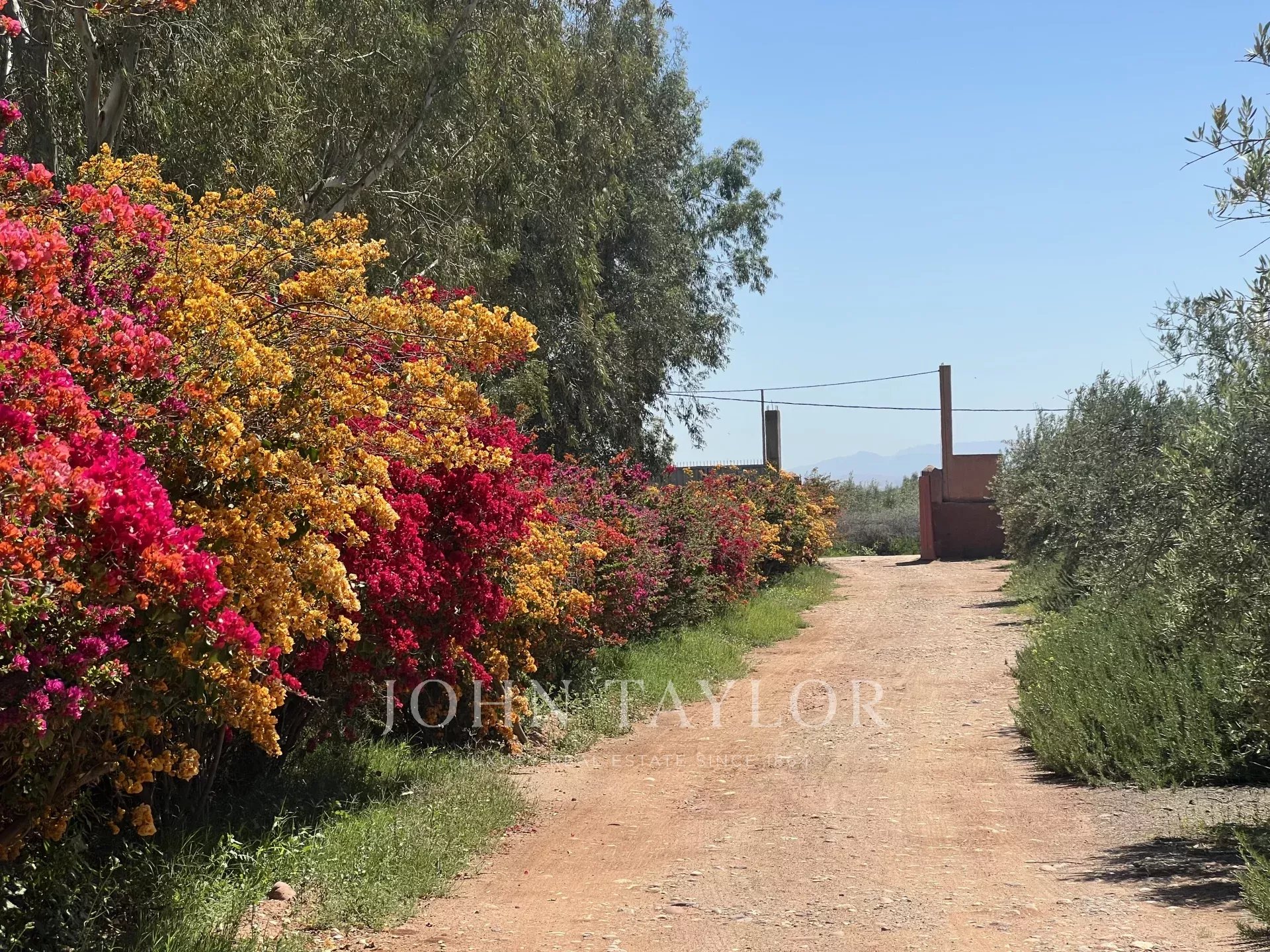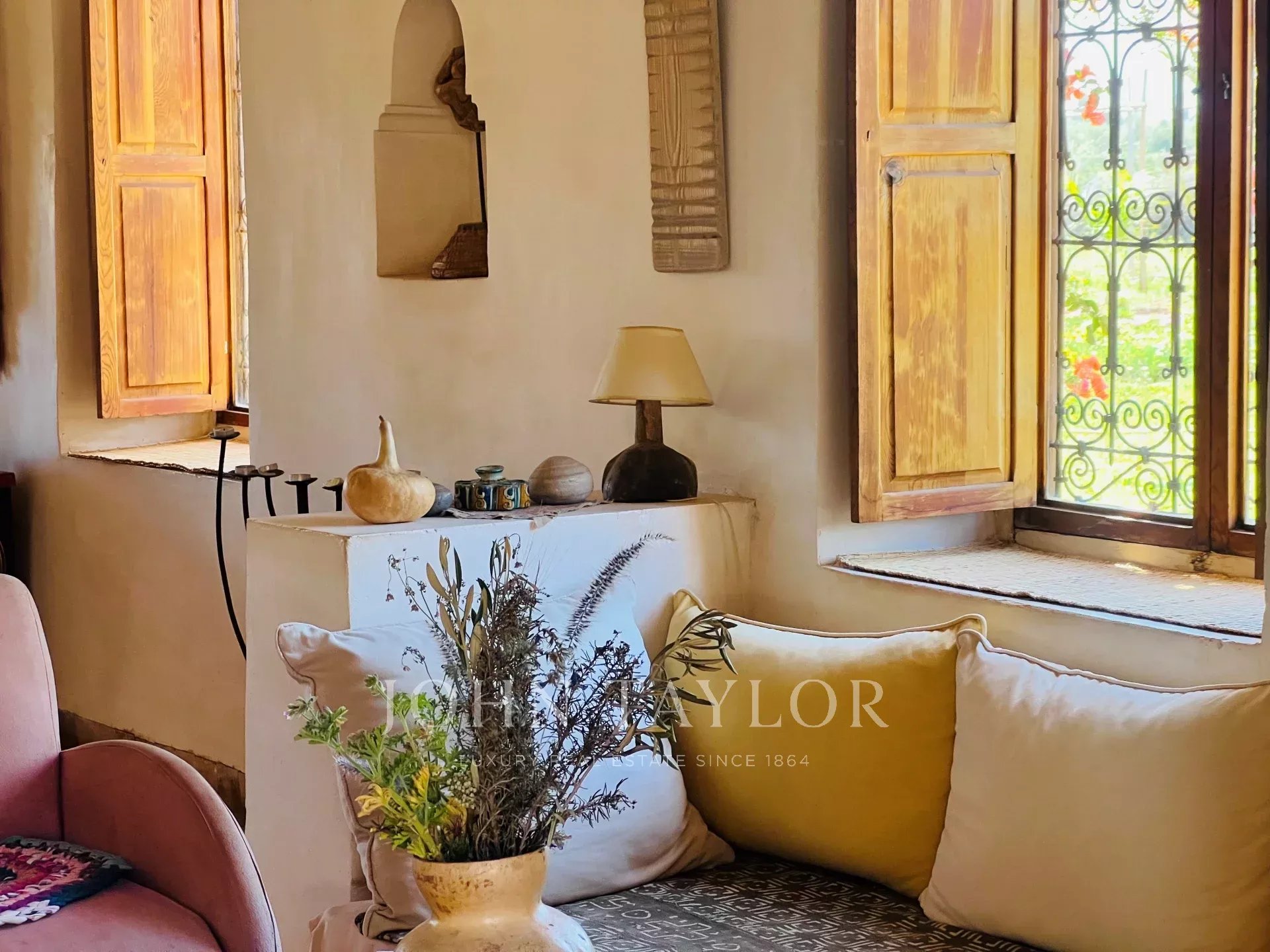 Set on a 2 hectare plot with fruit and olive trees, the grounds include the kasbah built in 2008, a vegetable garden, a swiming-pool with pool-house and 2 outbuildings, one of which hosting a studio with 2 potential extra bedrooms. Views on the Atlas mountains are utterly superb.