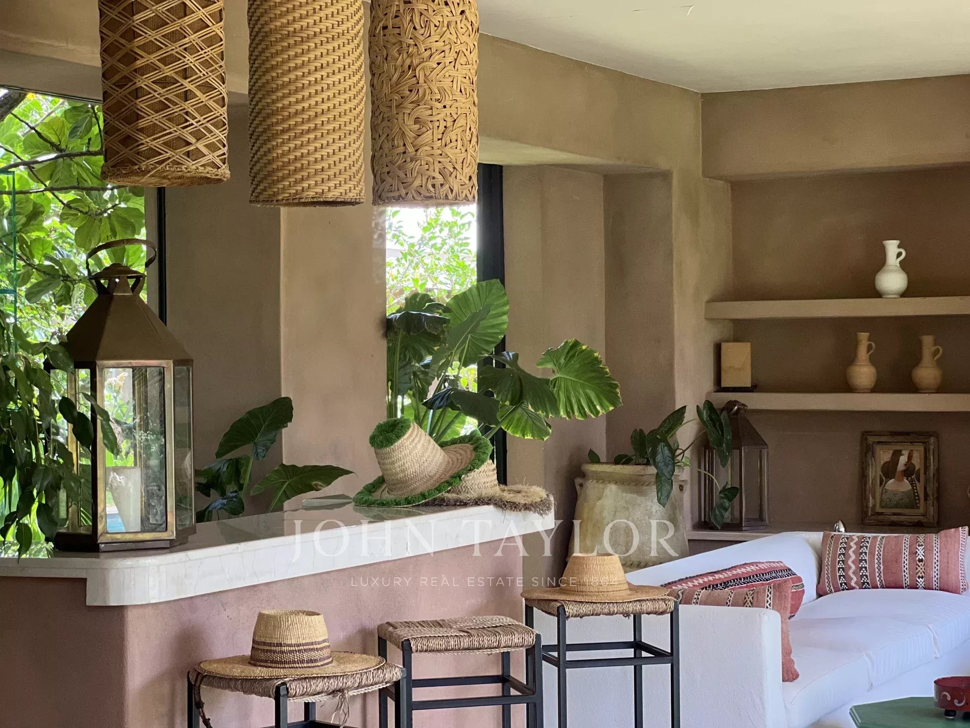 5 very large suites with private garden and terrace, bright triple reception room opening onto the garden, summer lounge/sitting room shaded by lush vegetation, warm pool-house opening onto a huge 32X5M heated pool, kitchen and staff accommodation.