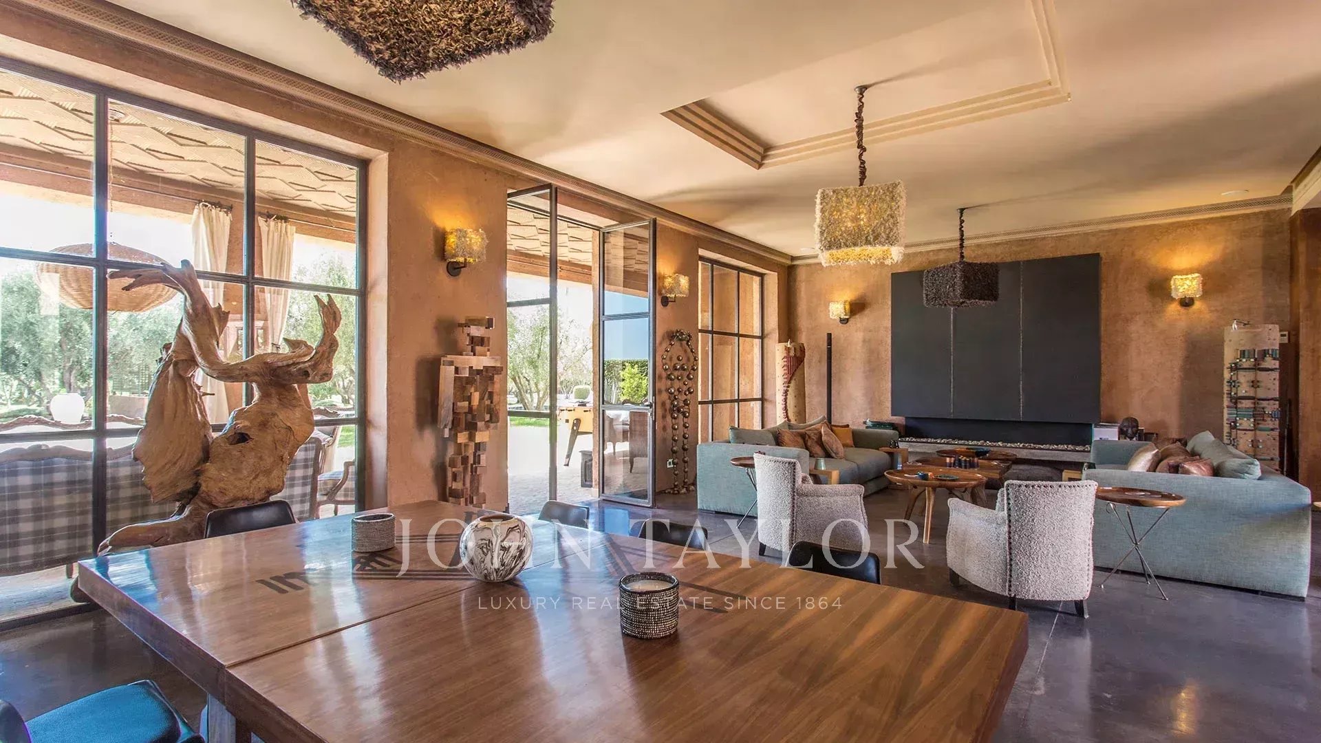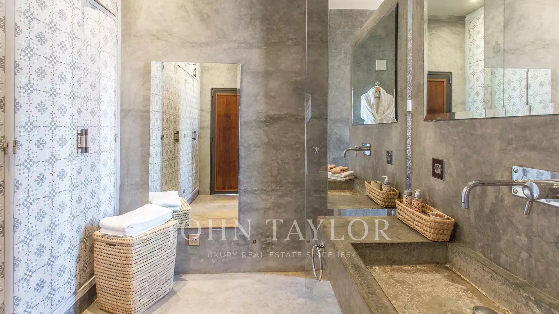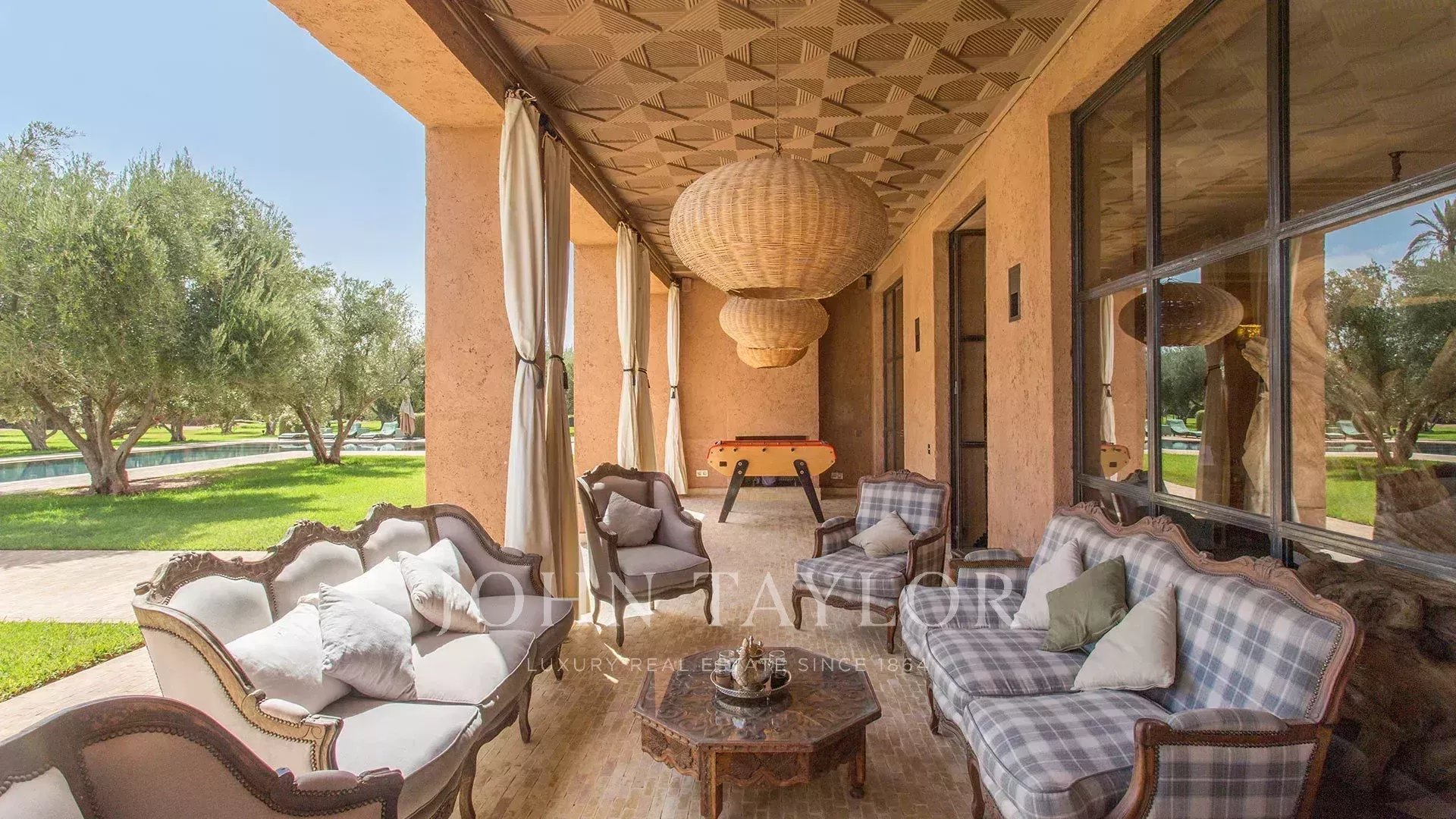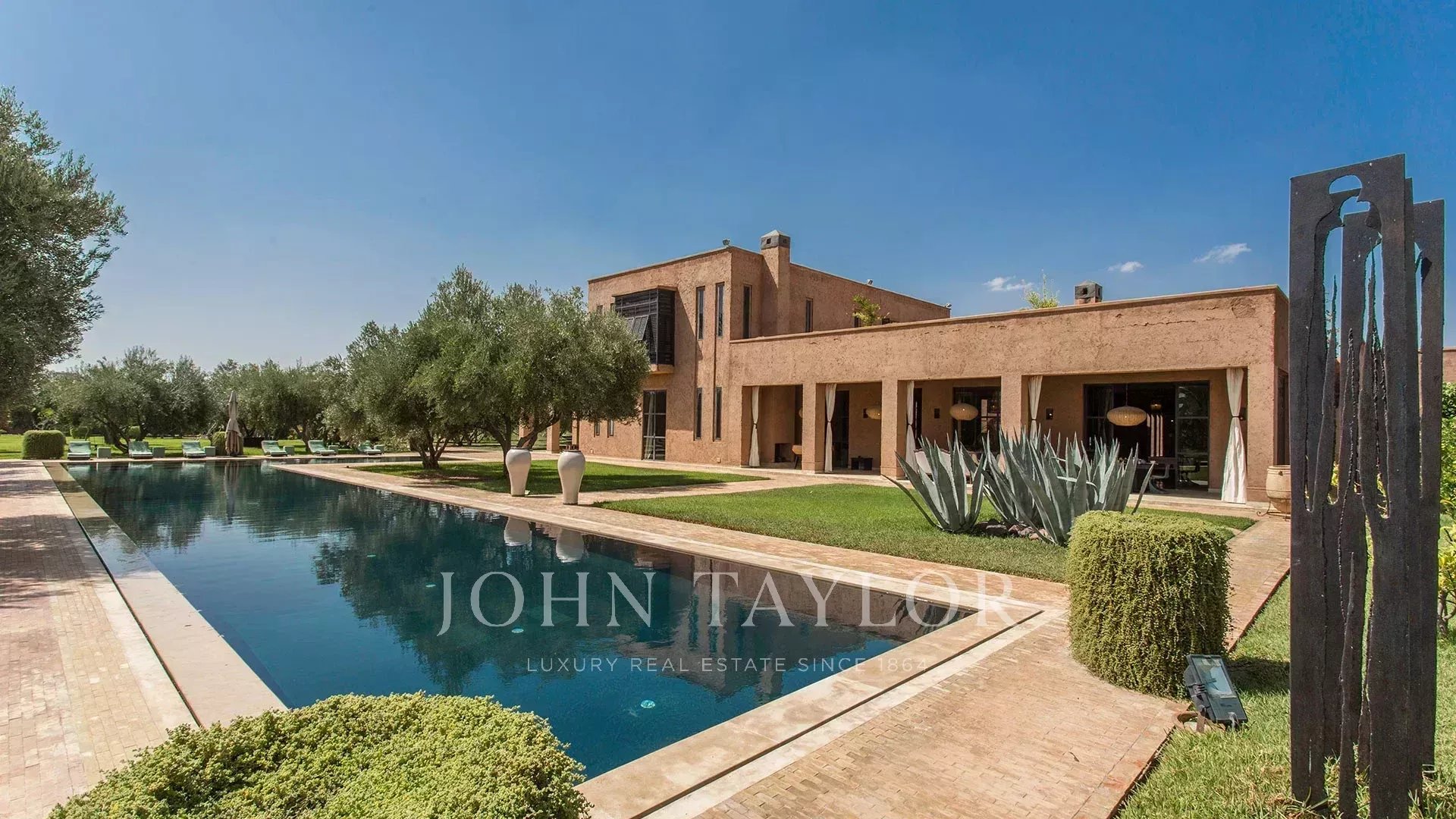 Nestled in a superb manicured 1 hectare park hosting a 30 meter swimming-pool, a garagen a petanque field and a putting green, the villa blends pure lines and Moroccan details such as a mezze and a central courtyard.