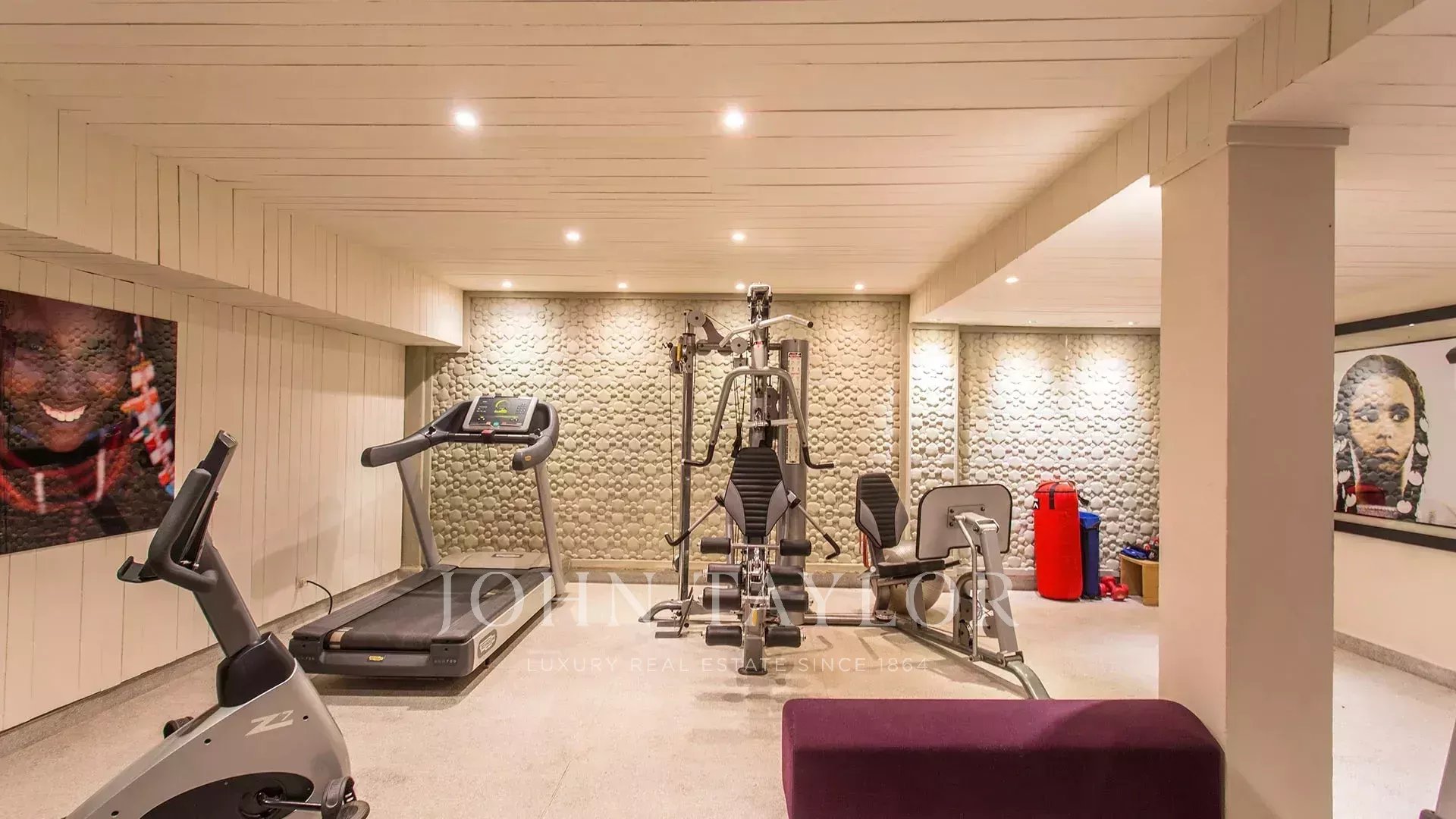 It comprises over 2 floors: large living areas, a fitted kitchen, 6 well appointed suites including a master, a spa combining hammam and room for treatments, a heated indoor pool, a home cinema and a fitness.