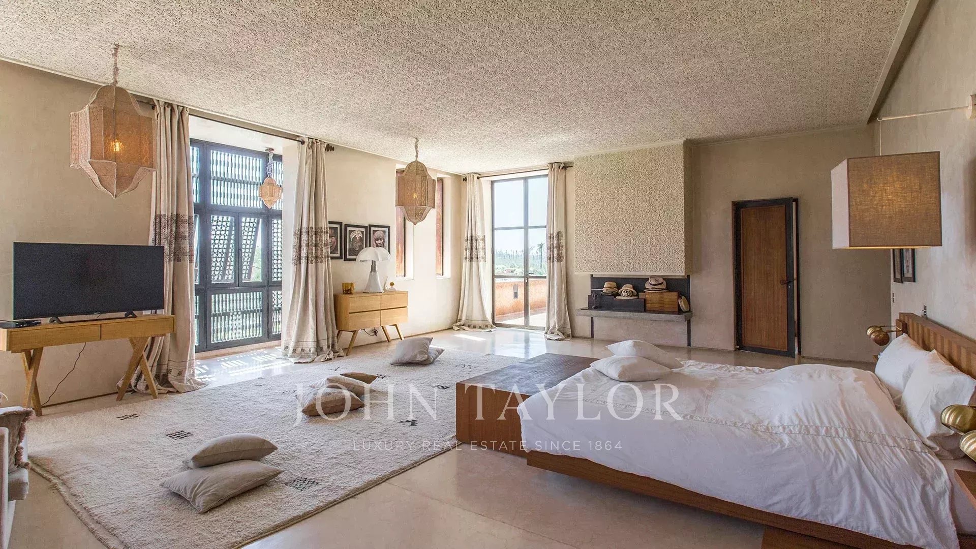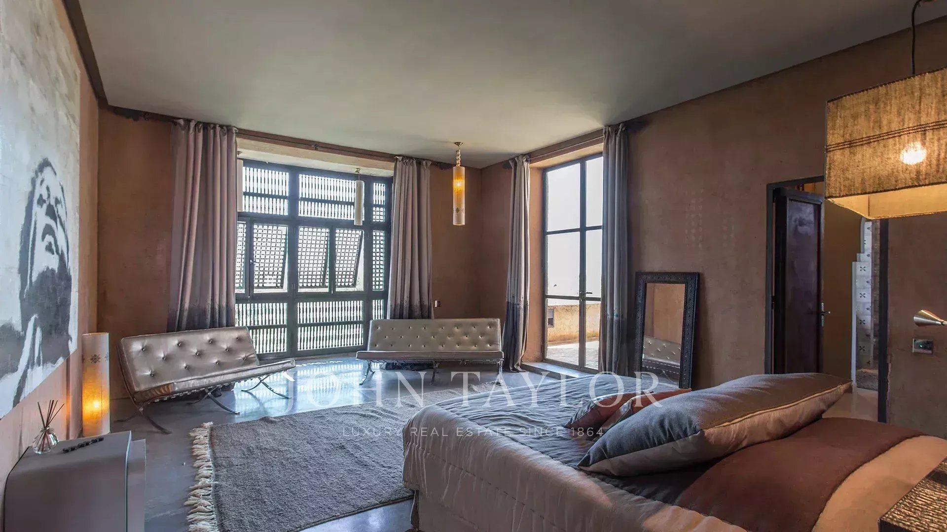 This property is enviably located in the ultra exclusive Palmeraie, a mere 20 minutes from downtown Marrakech.