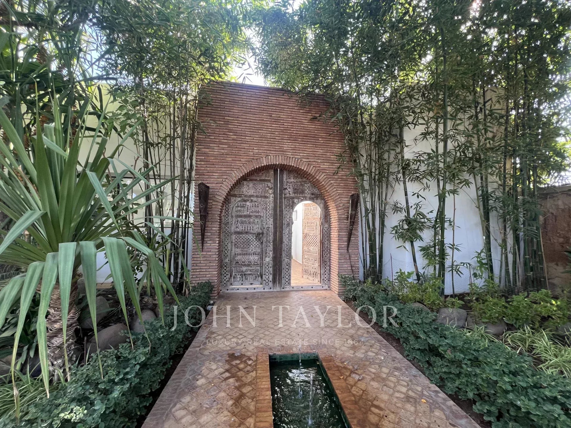 The pool area is beautifully designed, with a shaded Moroccan lounge, summer kitchen and dining room, and Hammam.
