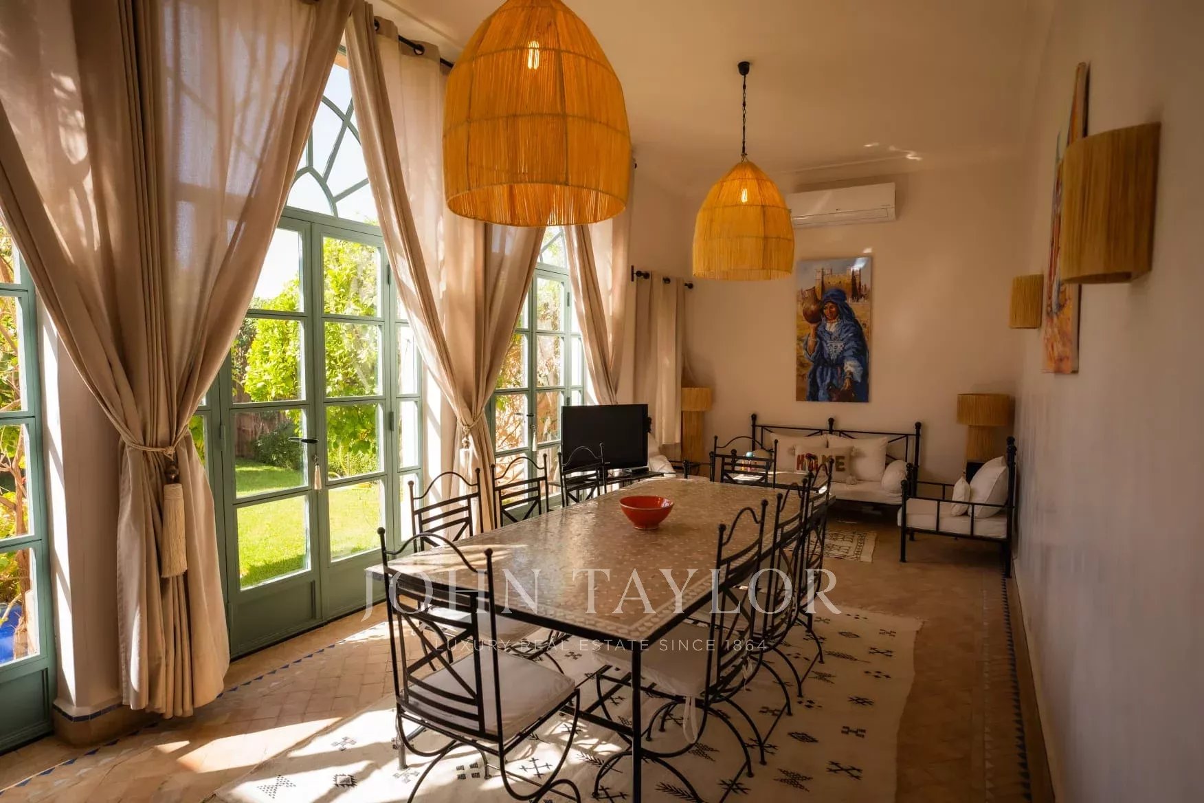 Set on a 1,200 m² landscaped plot, this elegant luxury Charles Boccara–designed villa offers 280 m² of refined living space that beautifully combines modern comfort with Moroccan architectural poetry. The property features 4 bedrooms, each with its own bathroom, 4 WCs, and an additional guest powder room. The generous layout includes two spacious salons, a formal dining area, a fully equipped kitchen, and large outdoor living spaces.