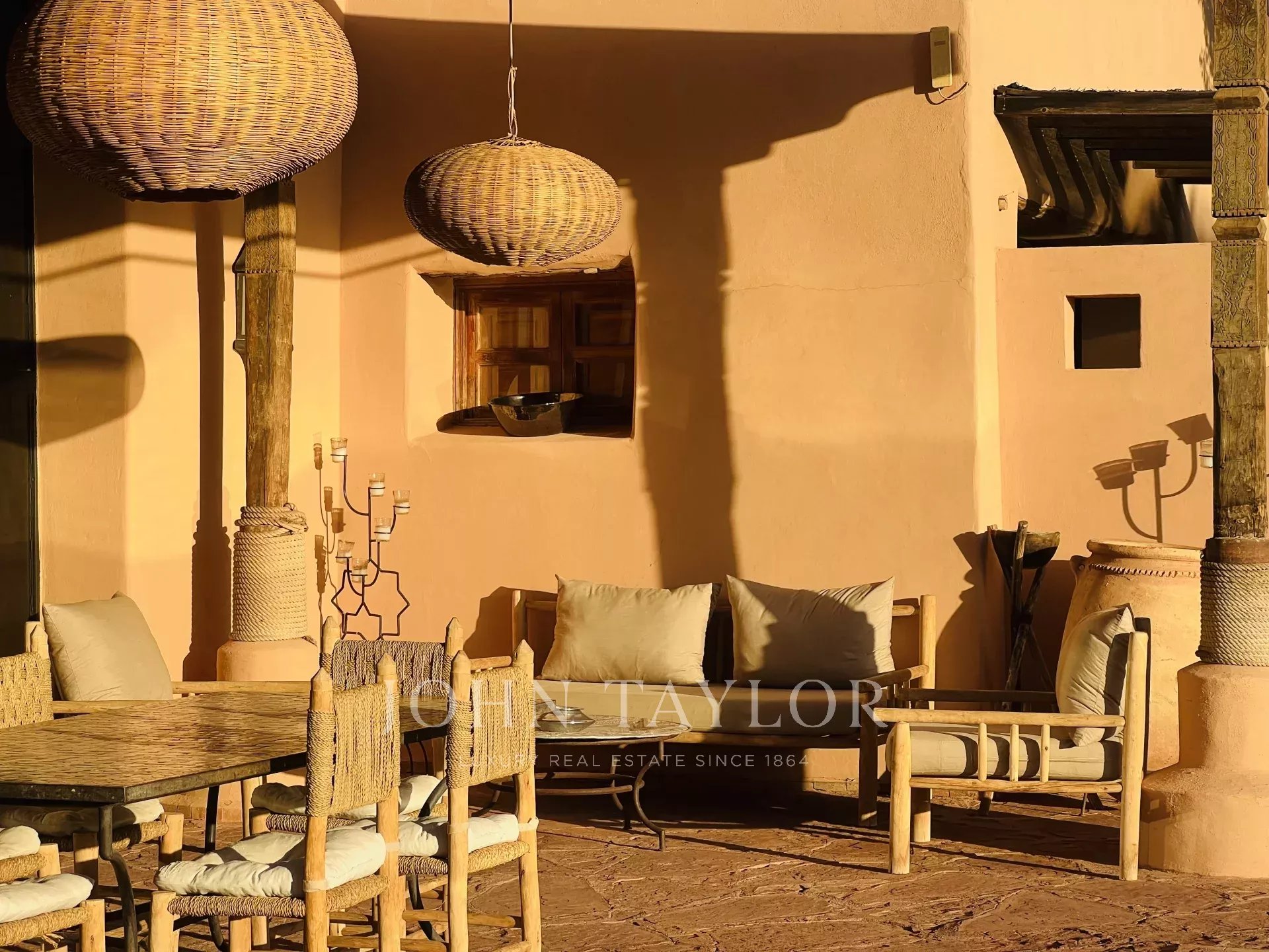 Nestled in a 1.6 hectare plot hosting 2 swimming-pools, it comprises a lovely reception area under a caidal tent, 2 lounges with fireplaces, a restaurant, 2 swimming-pools, a spa, 11 suites with private terracing and 2 independent apartments with respectively 2 and 3 bedrooms.