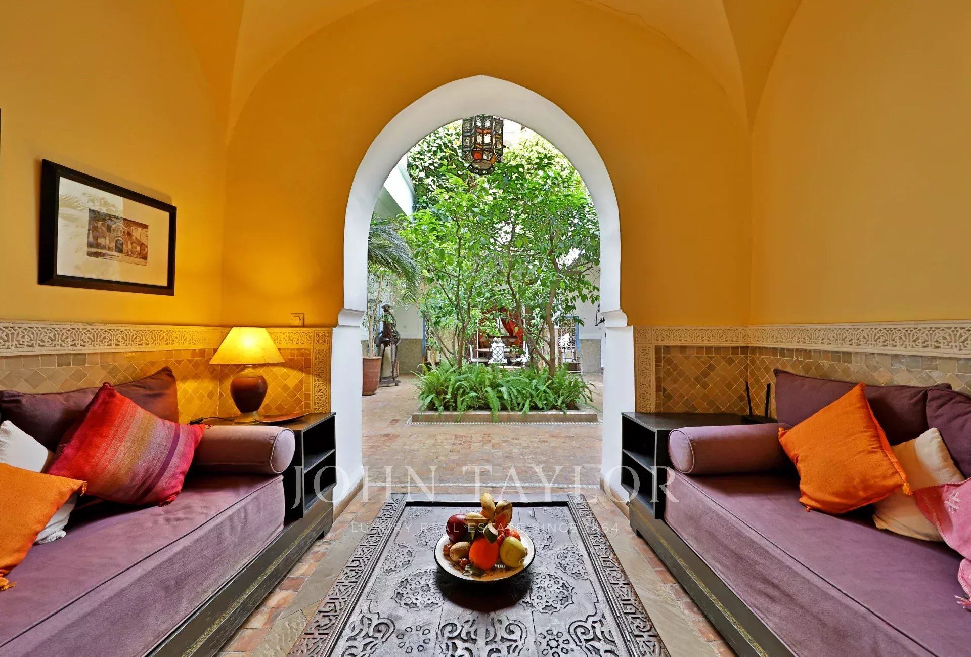 Renovated fifteen years ago with respect to its original spirit, the Riad is spread around a charming leafy courtyard.