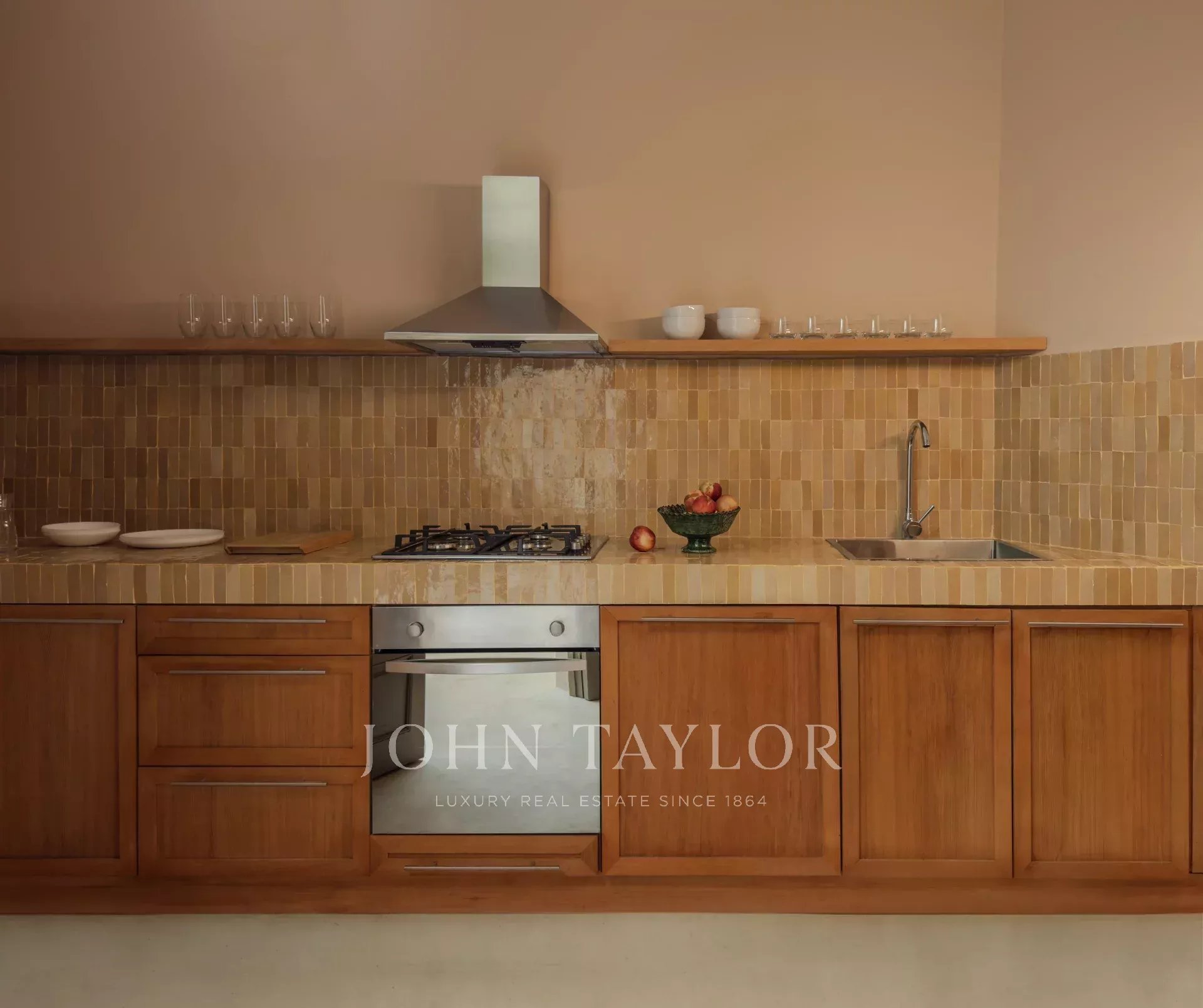 Boasting a 75 sqm footprint, it comprises on the ground floor around a handsome courtyard with plunge-pool and summer lounge: an entrance with guest loo, a superb fitted kitchen and a lounge with fireplace. The first floor comes with 2 spacious ensuite bedrooms.