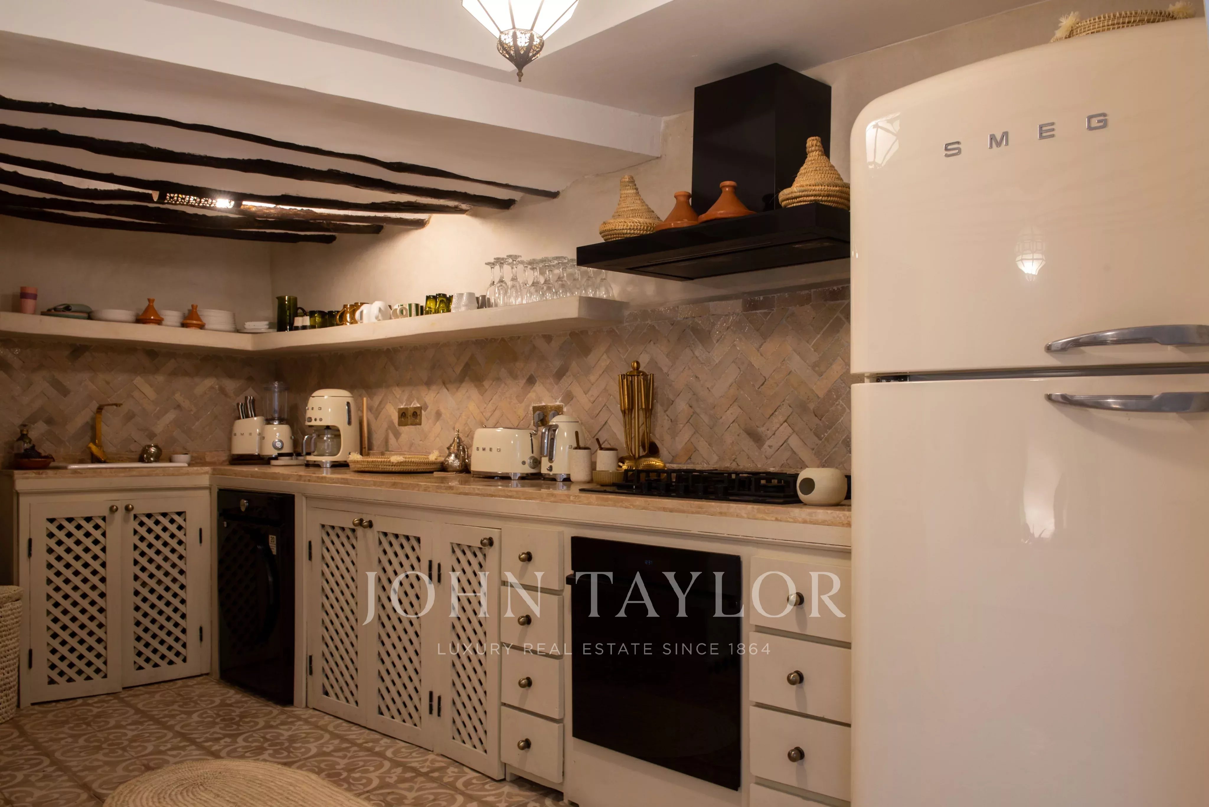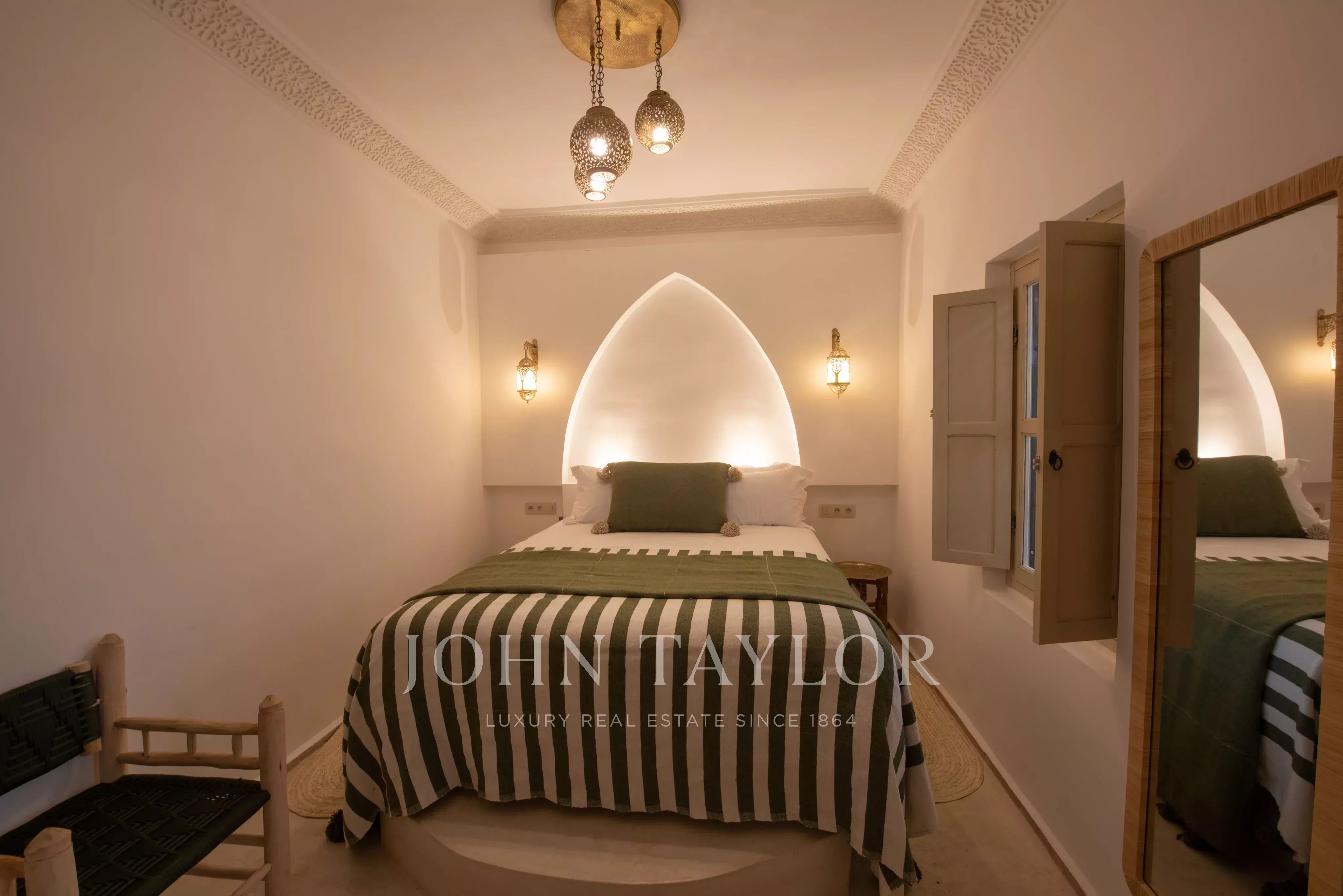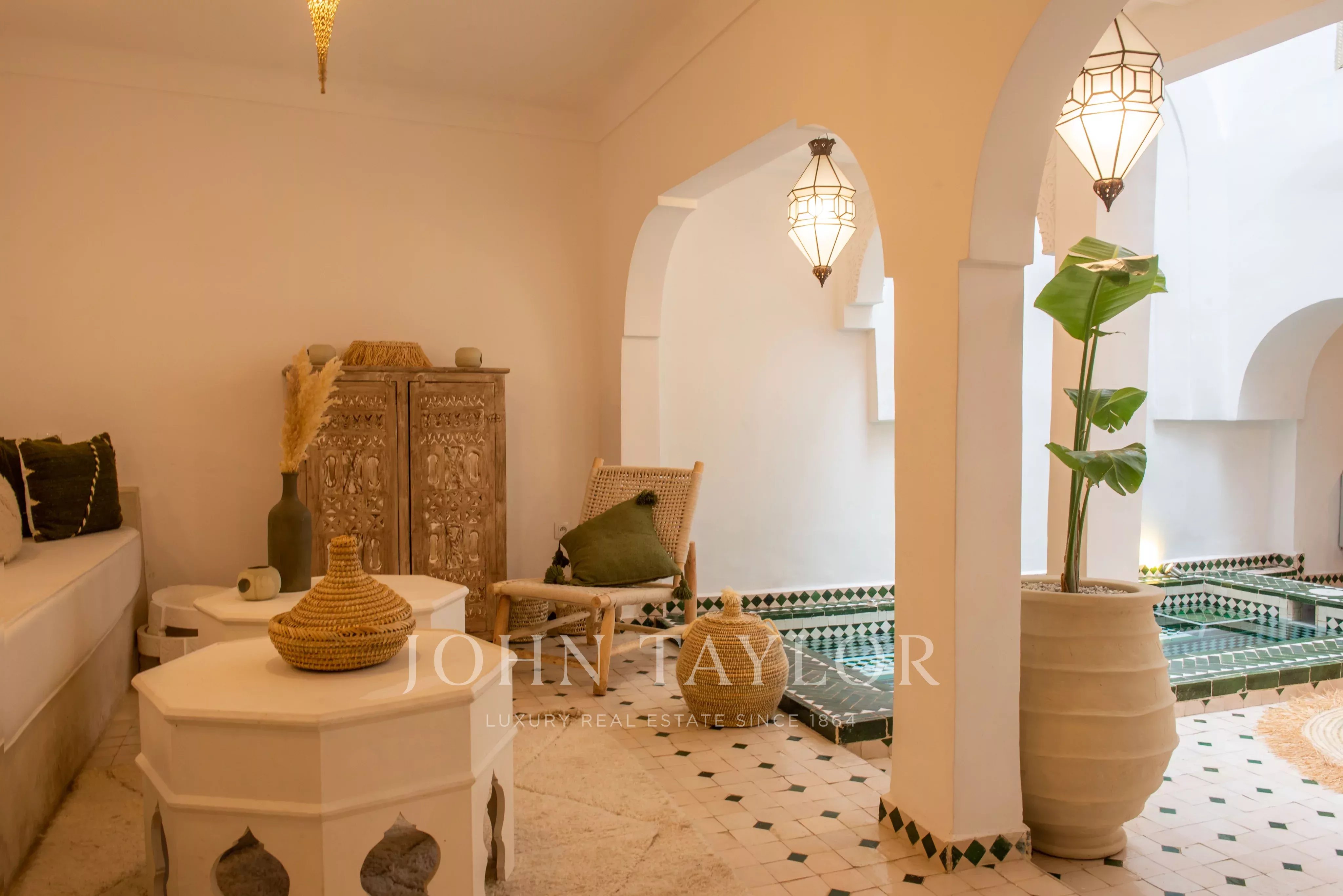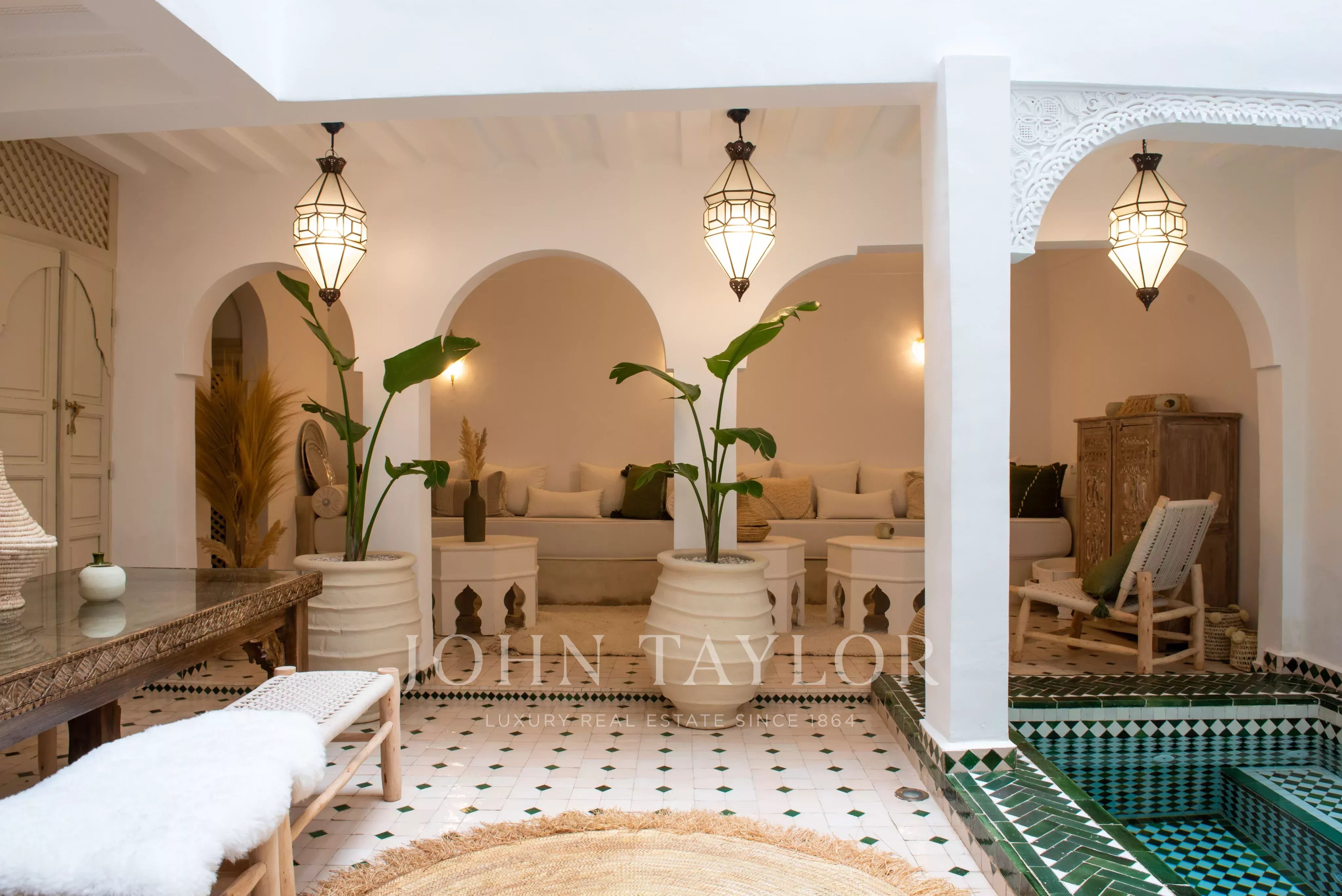 This property is enviably located in a popular area of the Medina of Marrakech, a few steps from the atmospheric markets and with an immediate car access.