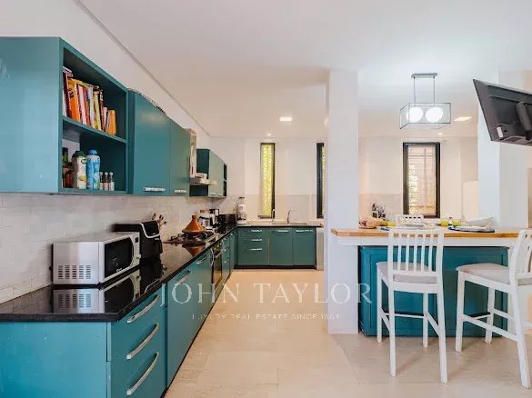 Nestled in a 1 300 sqm mature garden, the 2 storey villa features nice living areas opening onto the shaded terrace and the pool, a fitted kitchen as well as 4 well appointed ensuite bedrooms.