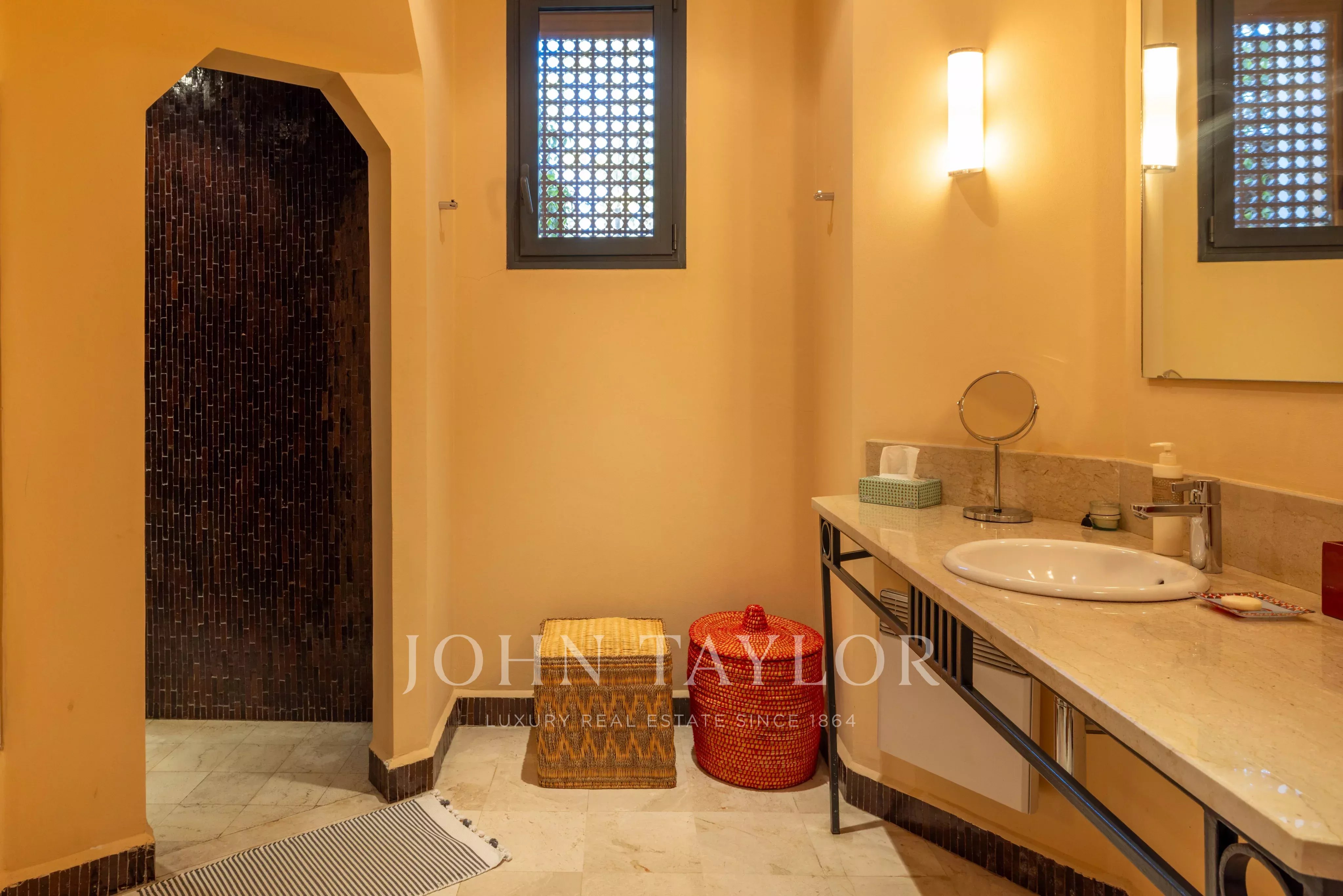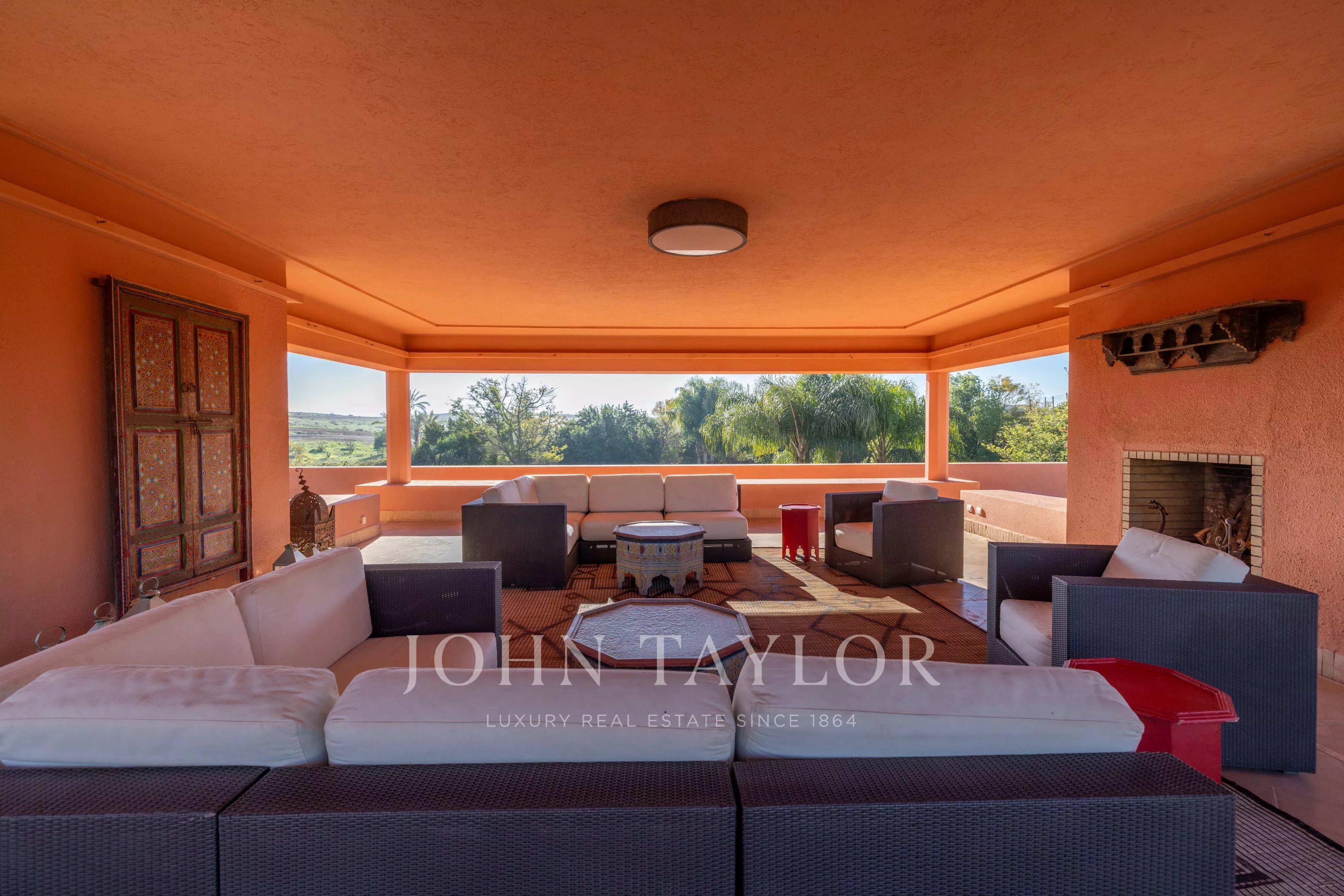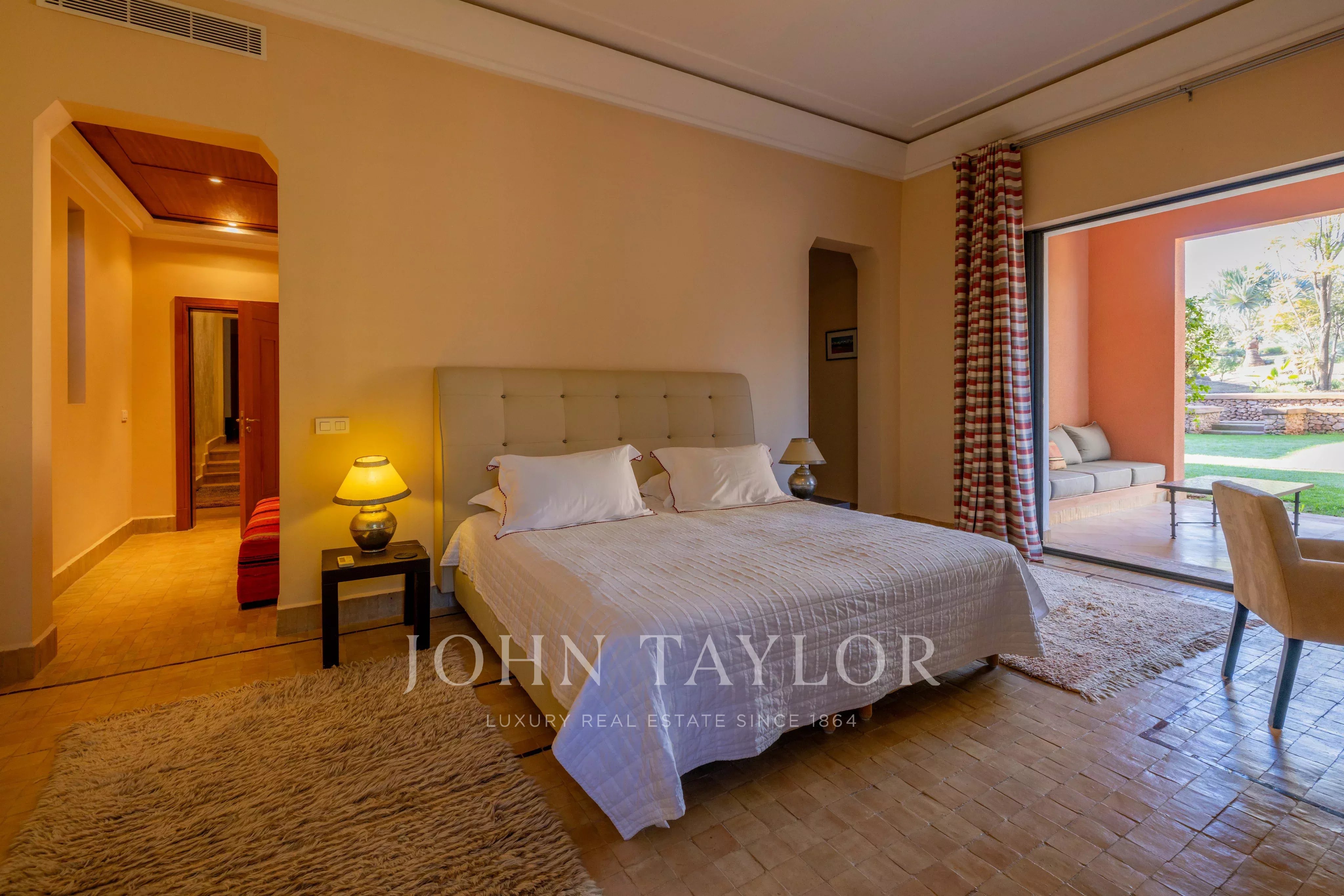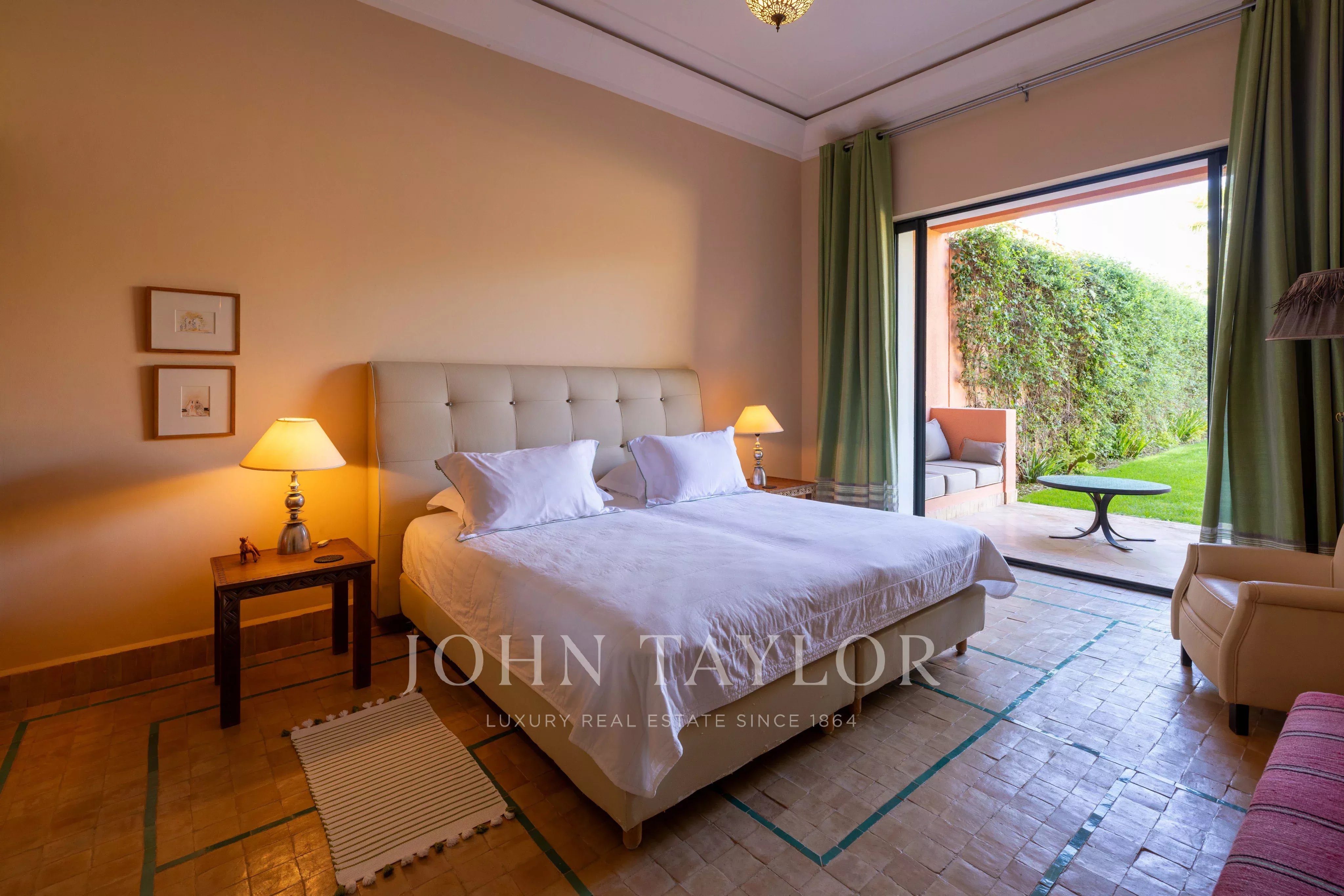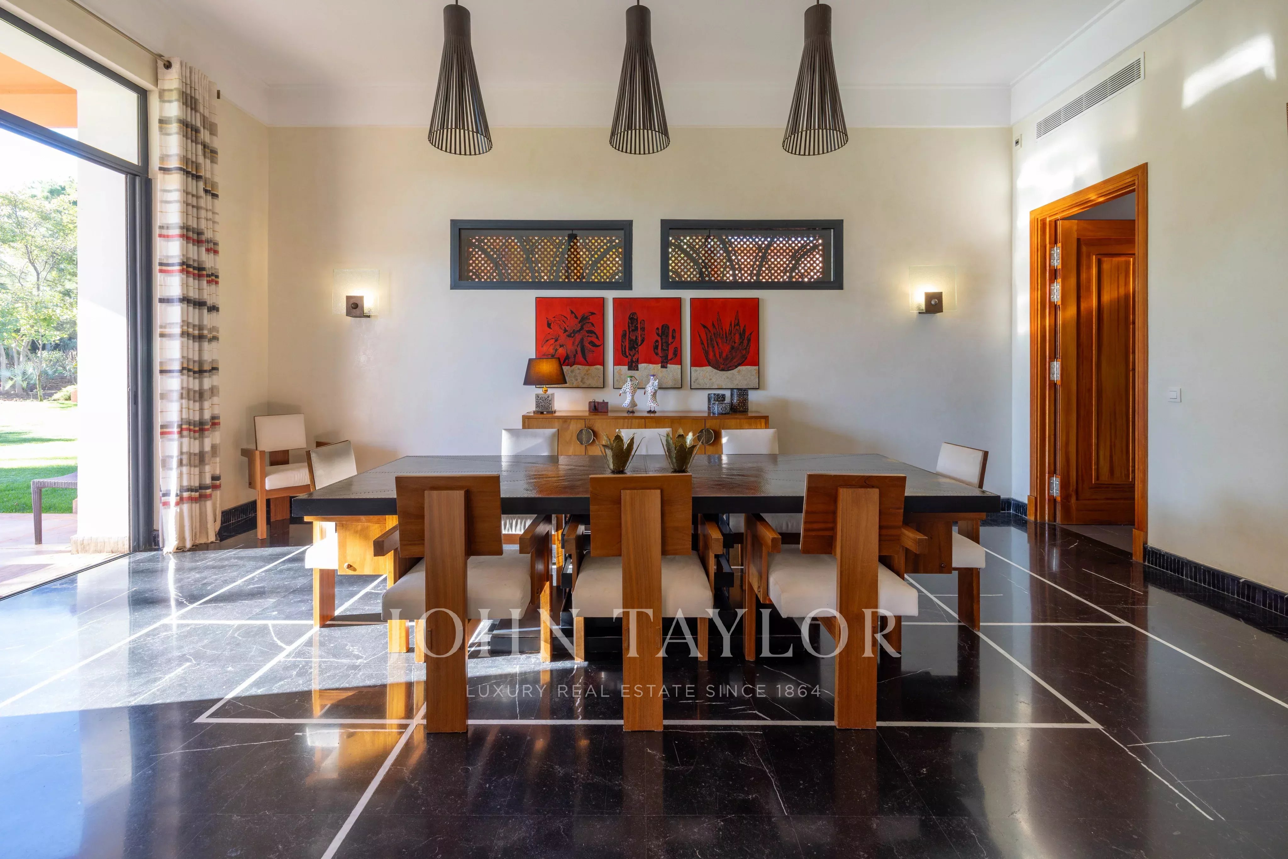 This property is enviably located in a gated community with a sought after 18 golf course, a mere 15 minutes from the airport and less than 30 minutes from downtown Marrakech.