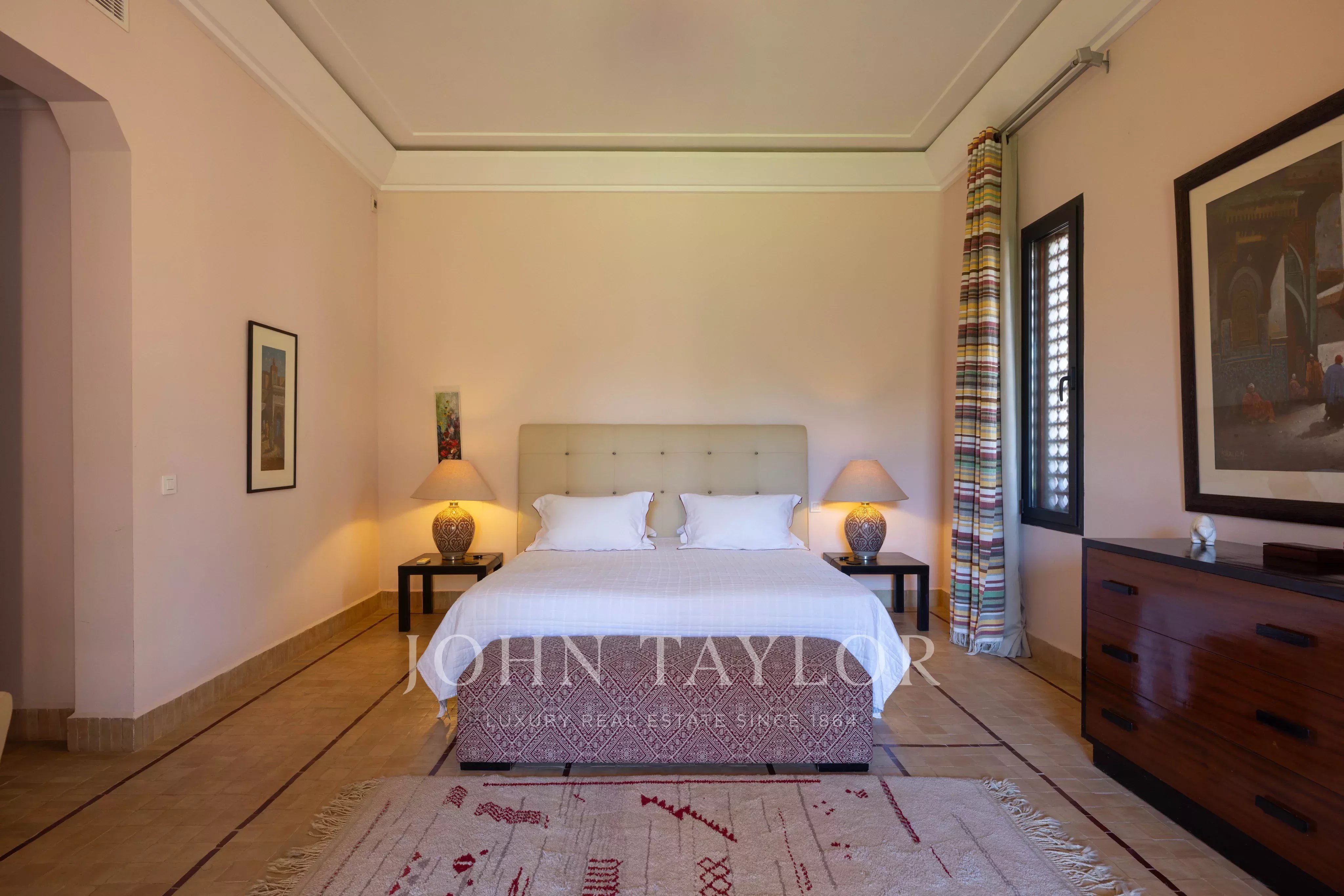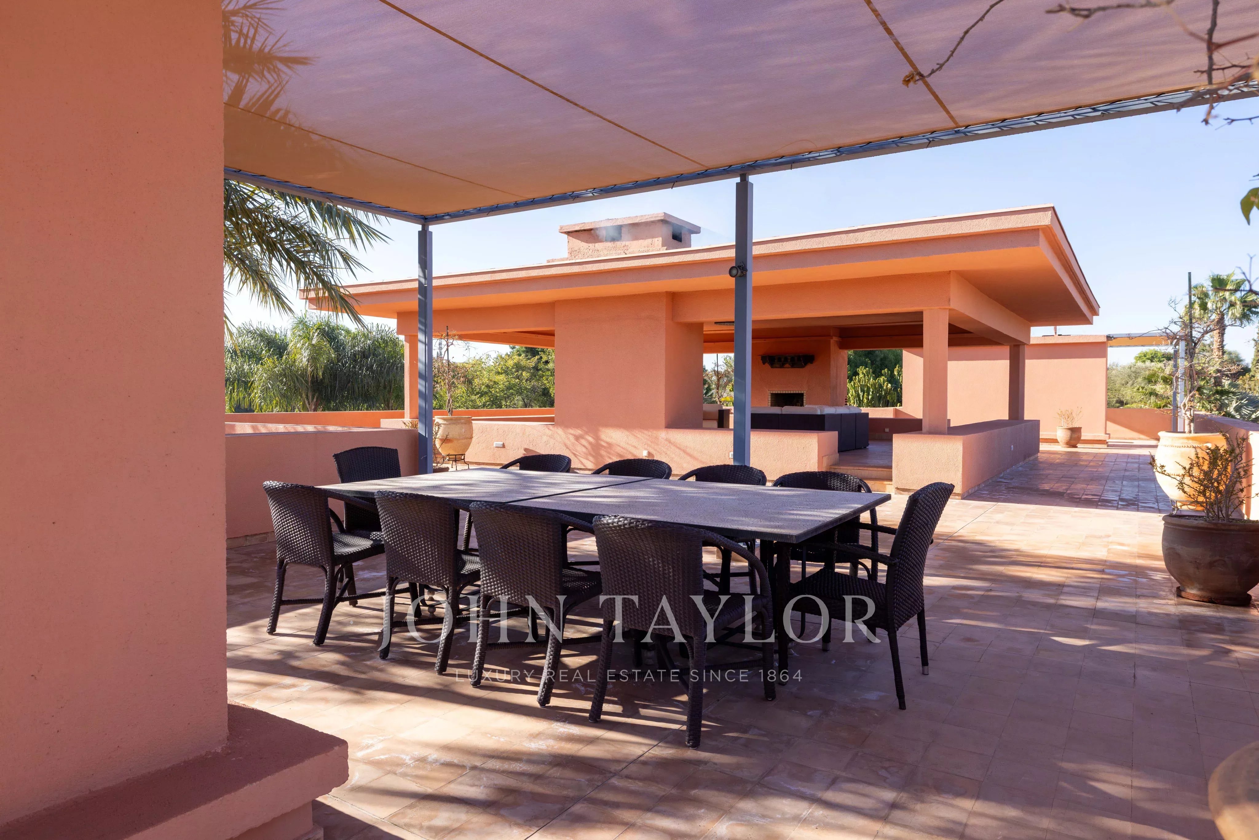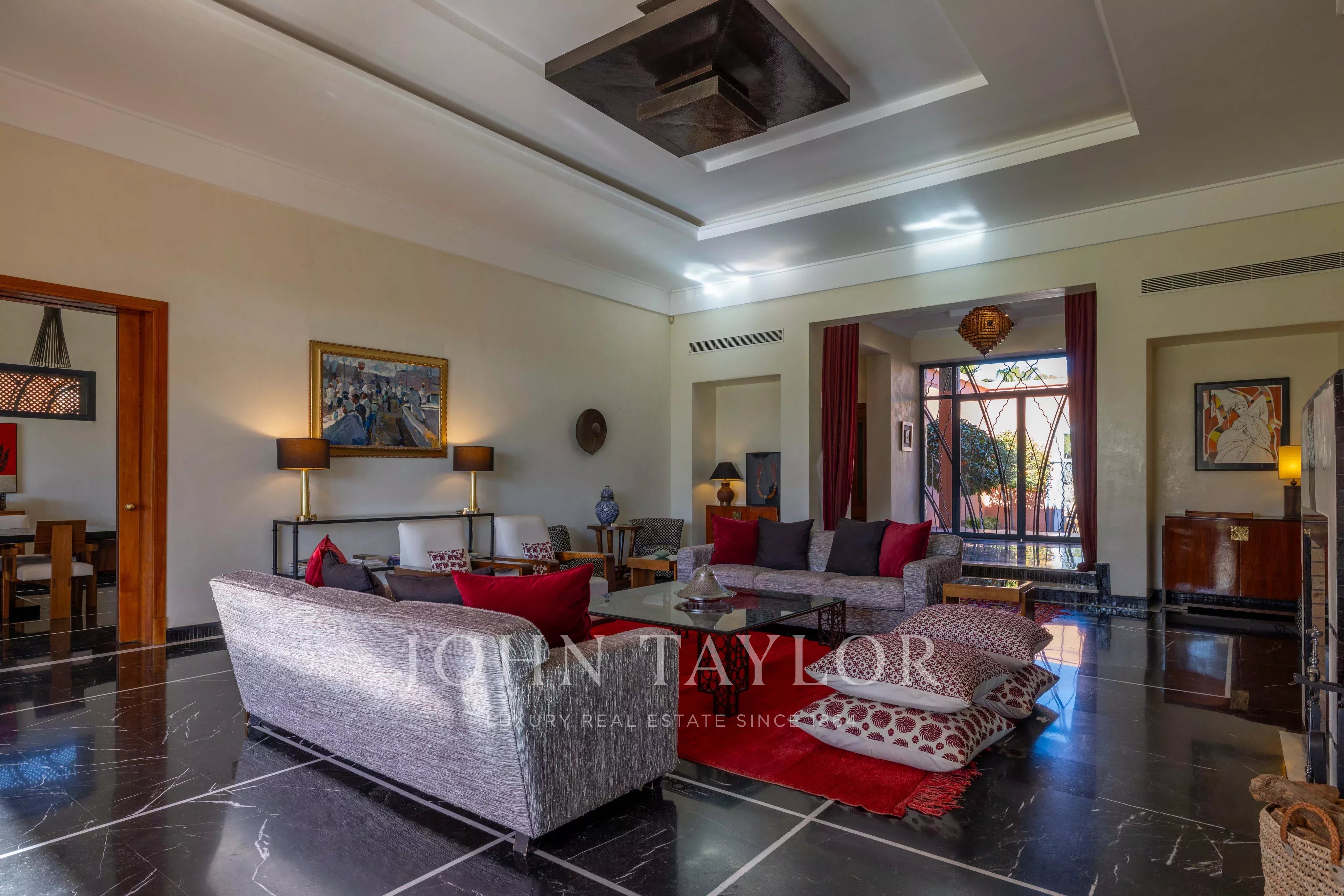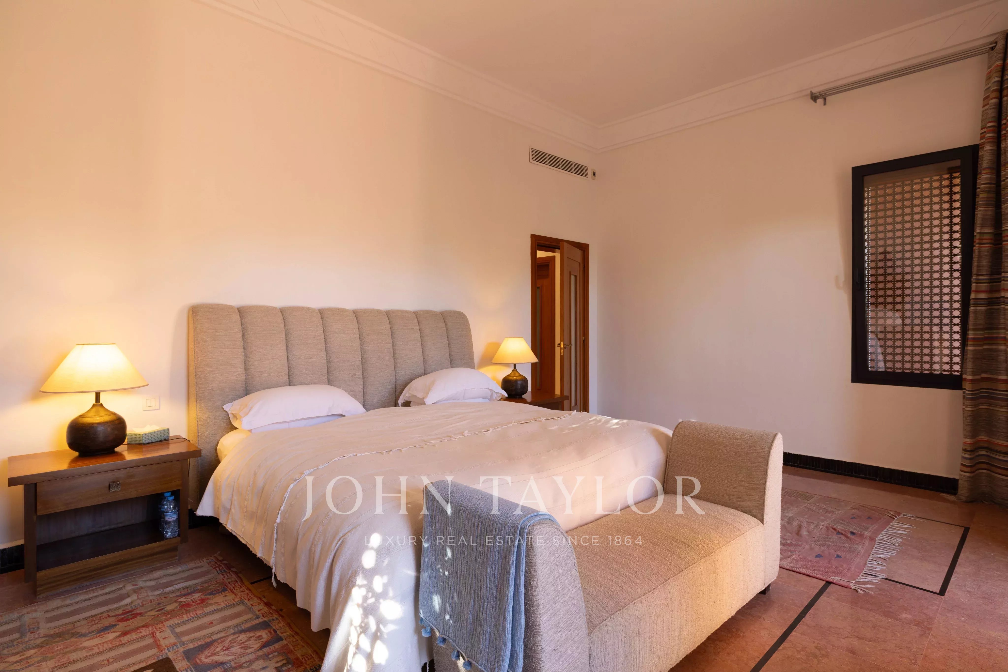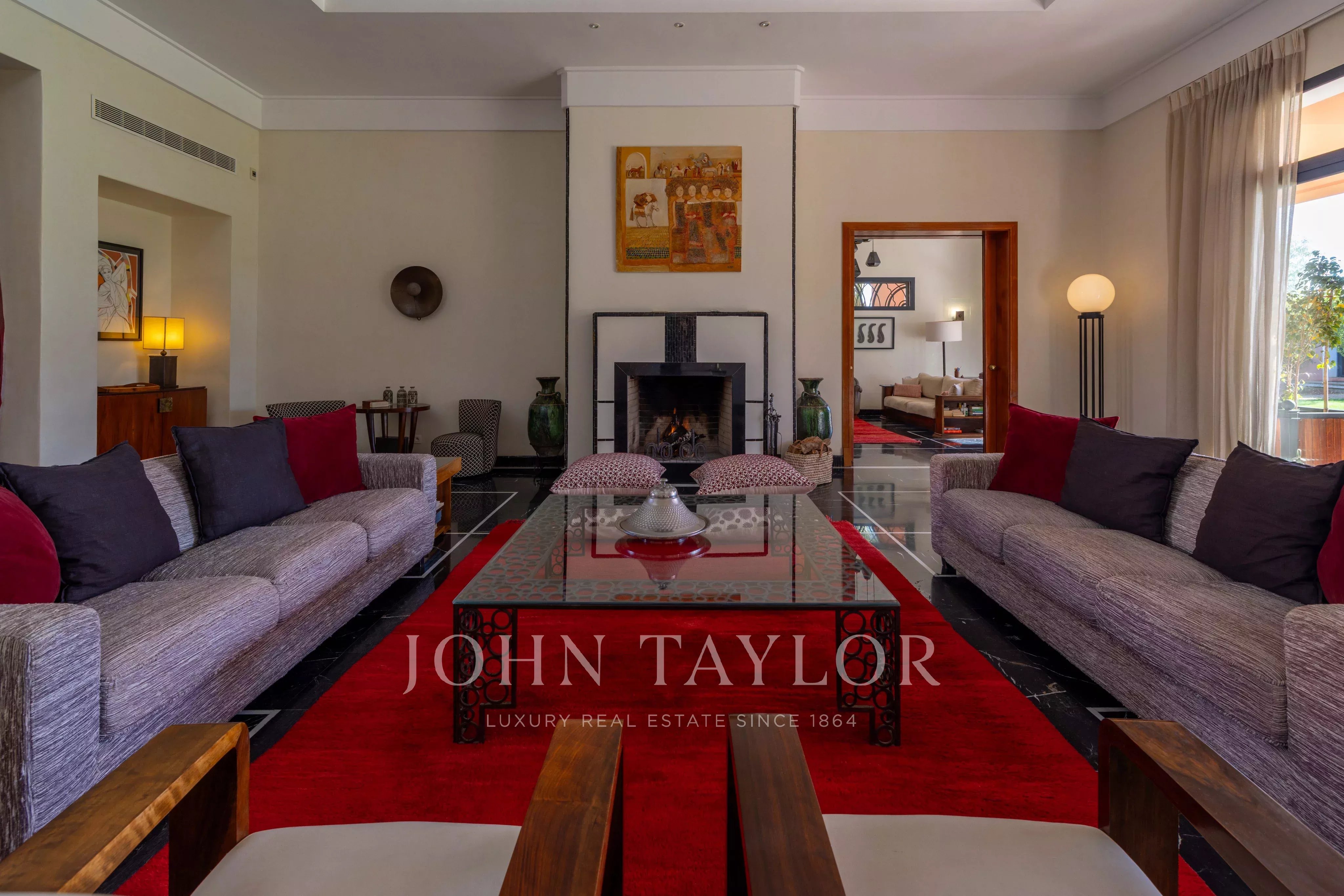 This property is enviably located in a gated community with a sought after 18 golf course, a mere 15 minutes from the airport and less than 30 minutes from downtown Marrakech.