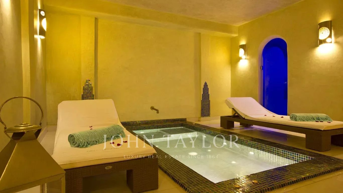 Noteworthy: a spacious basement comes with a hammam, a jacuzzi, a room for treatments and a gym.