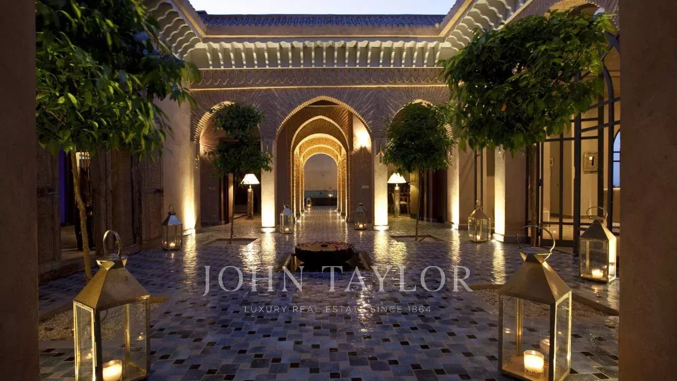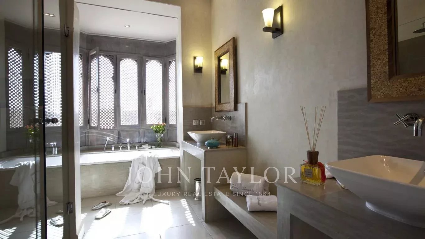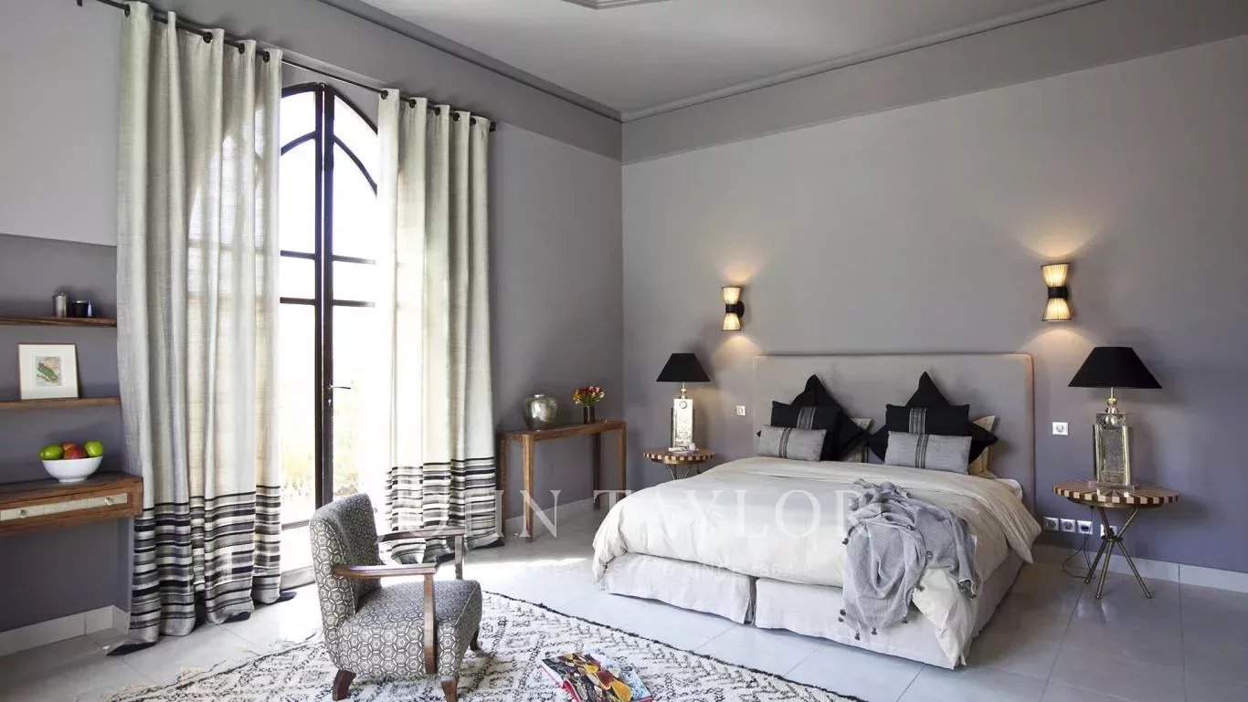 Nestled in a mature 2 000 sqm garden hosting a heated swimming-pool, the villa with Moorish vibes is spread around a handsome andalusian courtyard in the spirit of a traditional Riad.