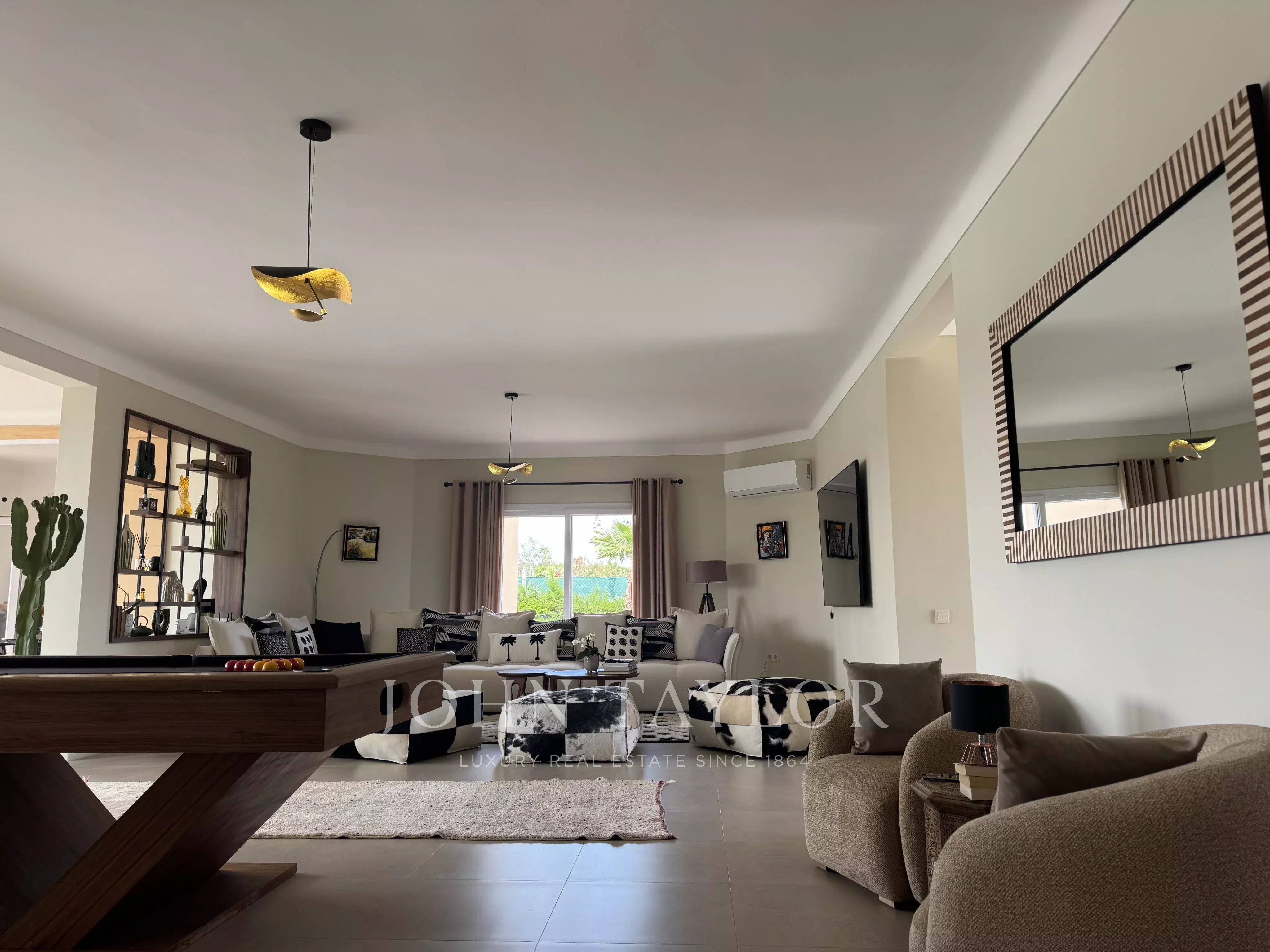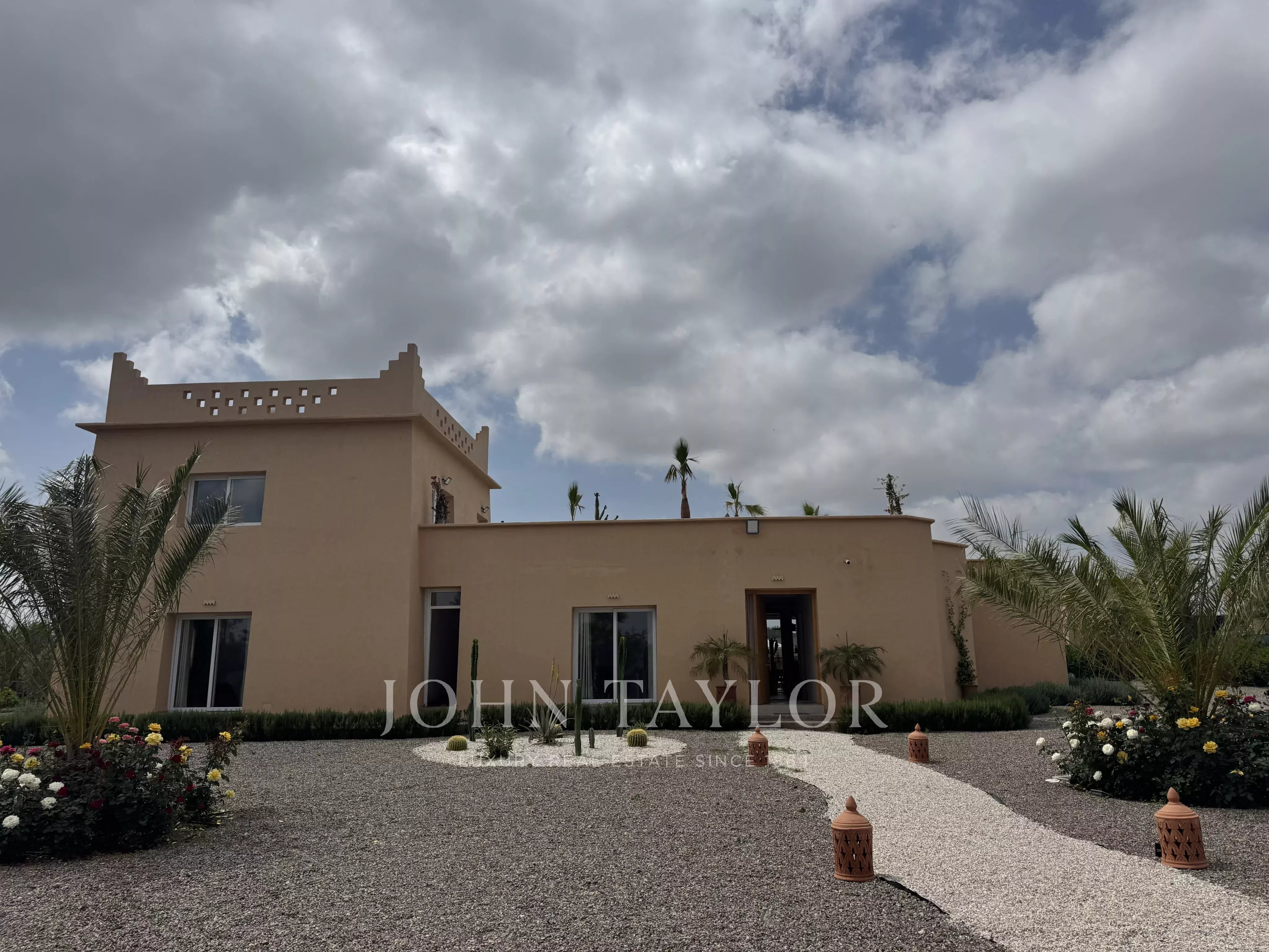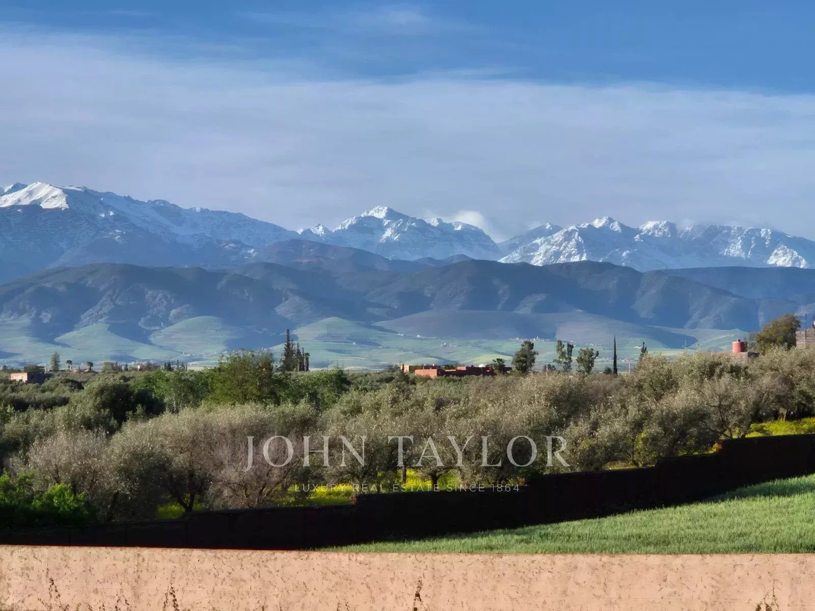 Nestled in a lovely 5 000 sqm garden hosting a swimming-pool, the kasbah-style villa boasts superb views over the Atlas mountains.