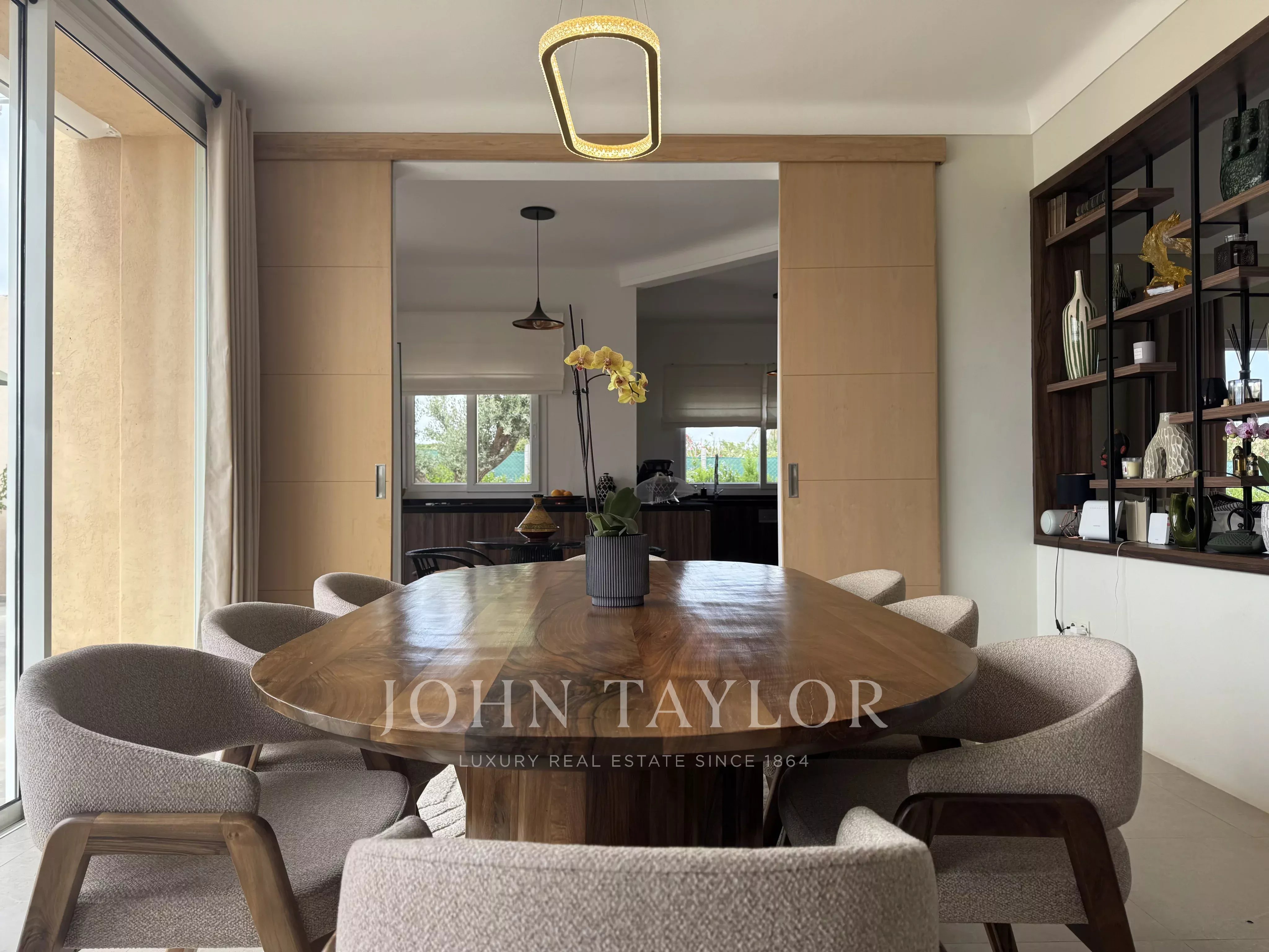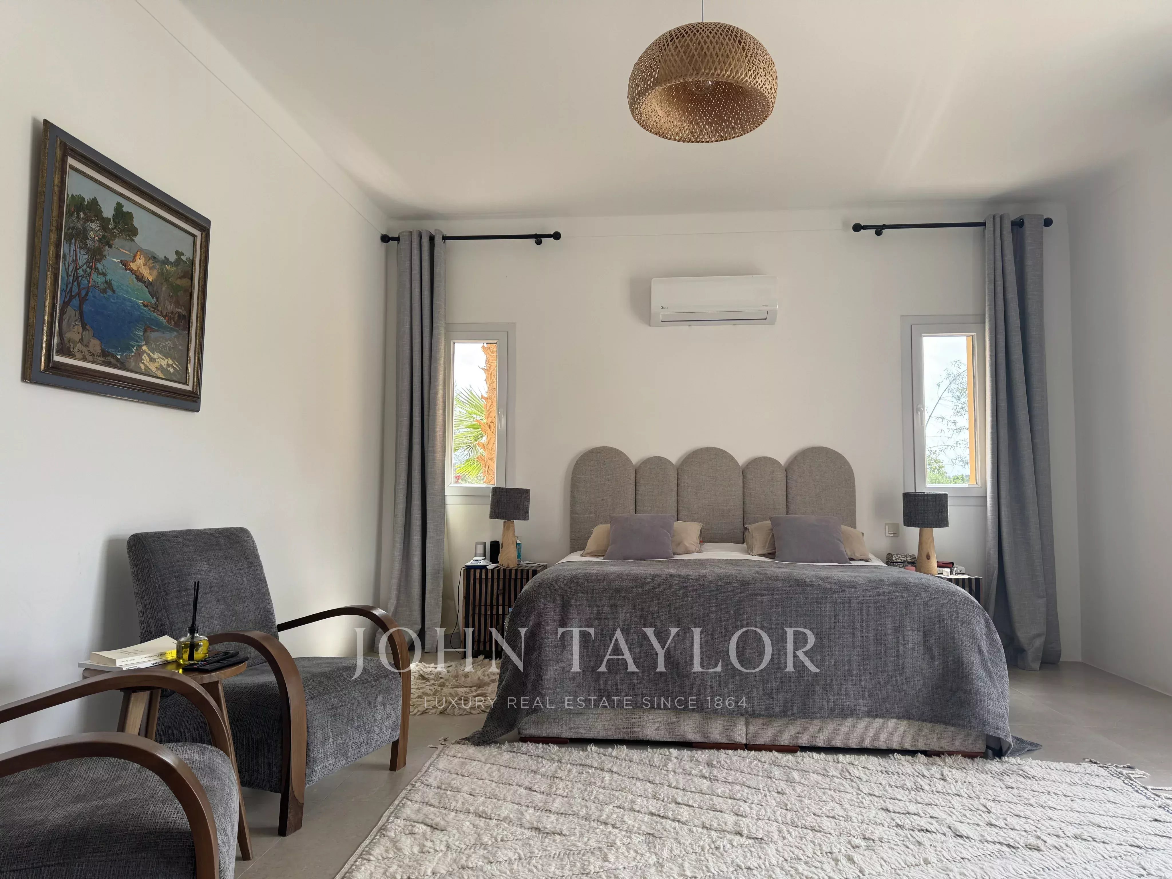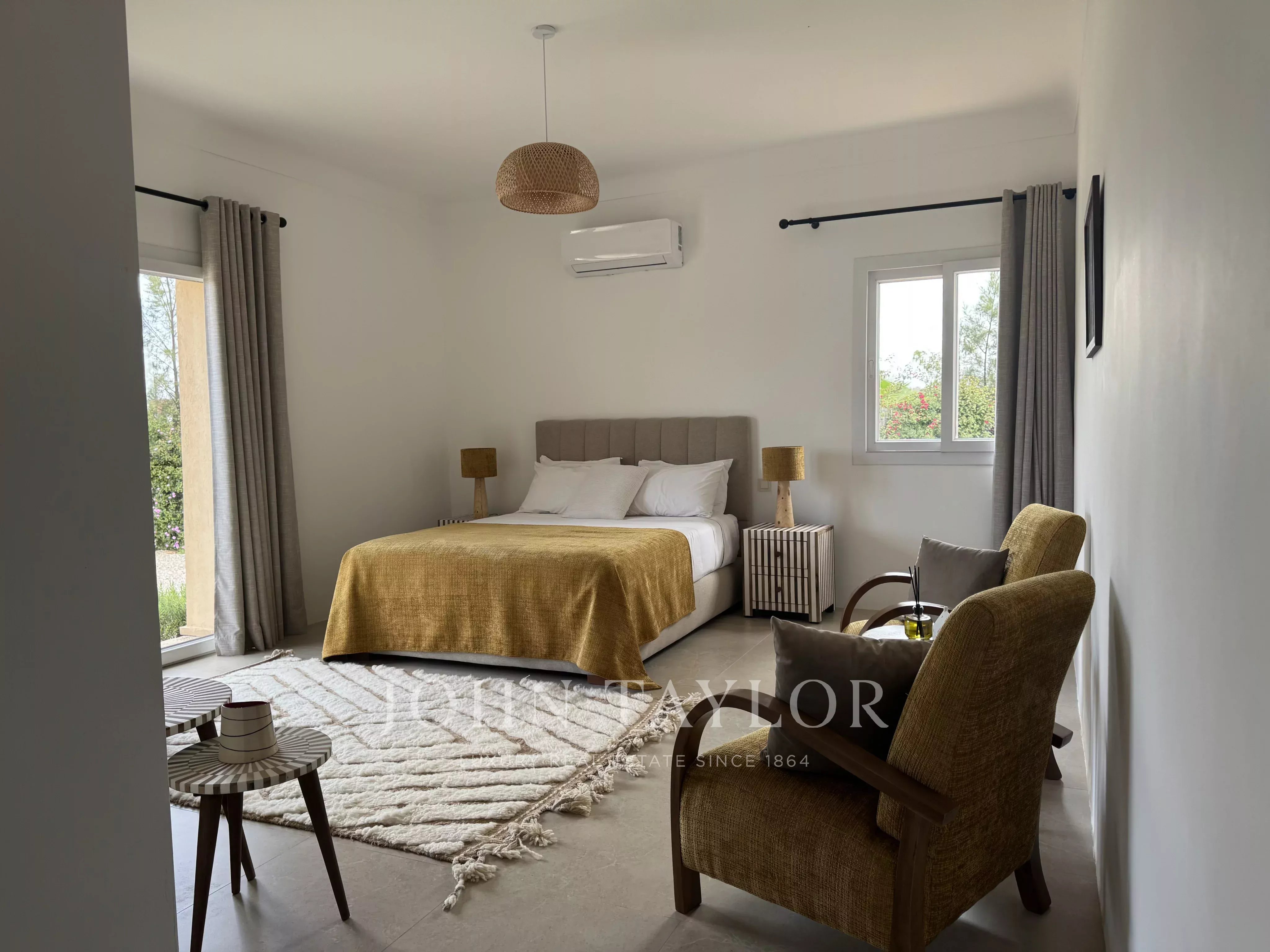 With a 420 sqm internal size over 2 floors, it comprises: a large and airy living area opening onto the pool, a spacious fitted kitchen, 4 ensuite bedrooms as well as a fith bedroom in a separate pavilion next to the pool.