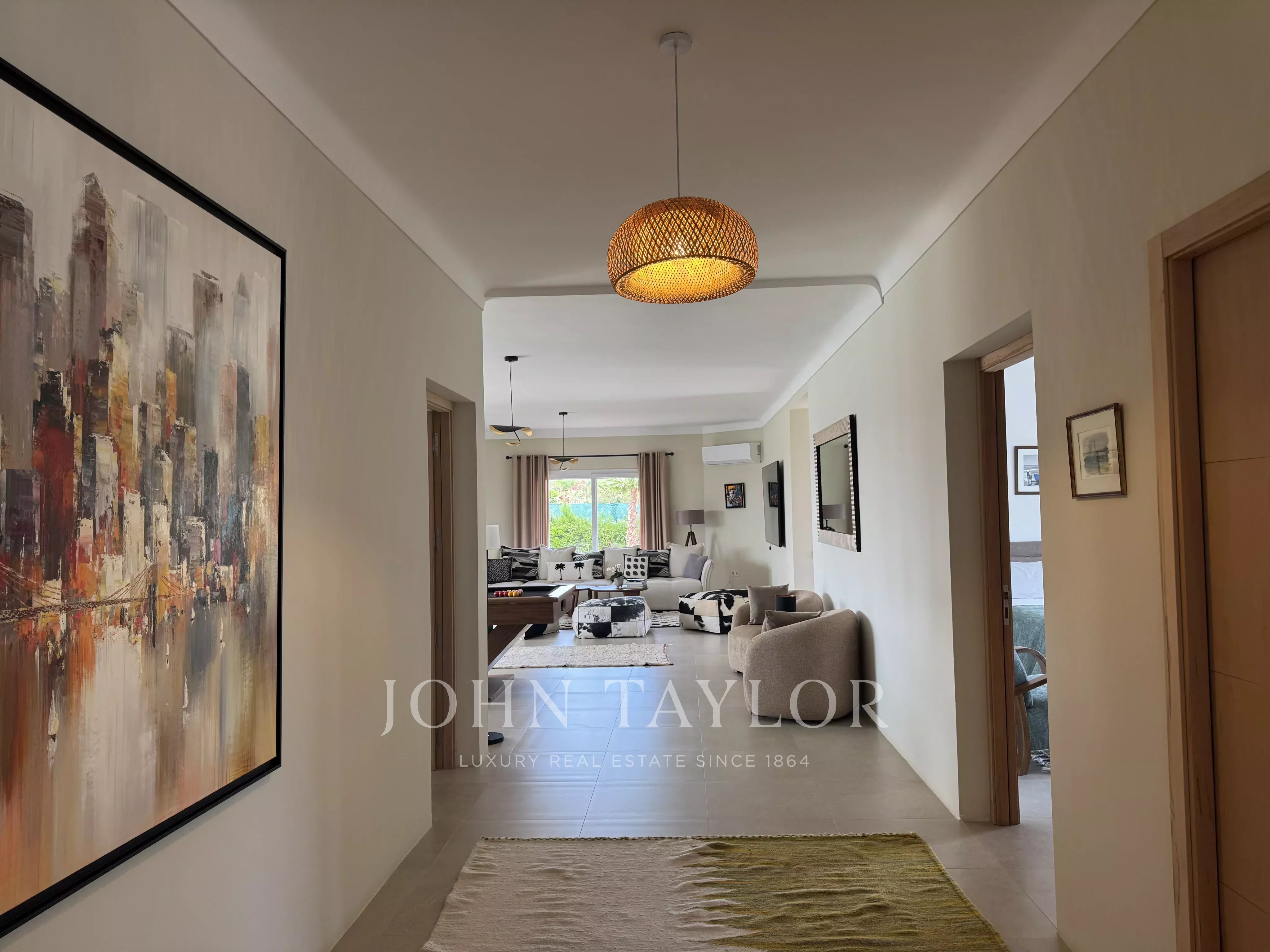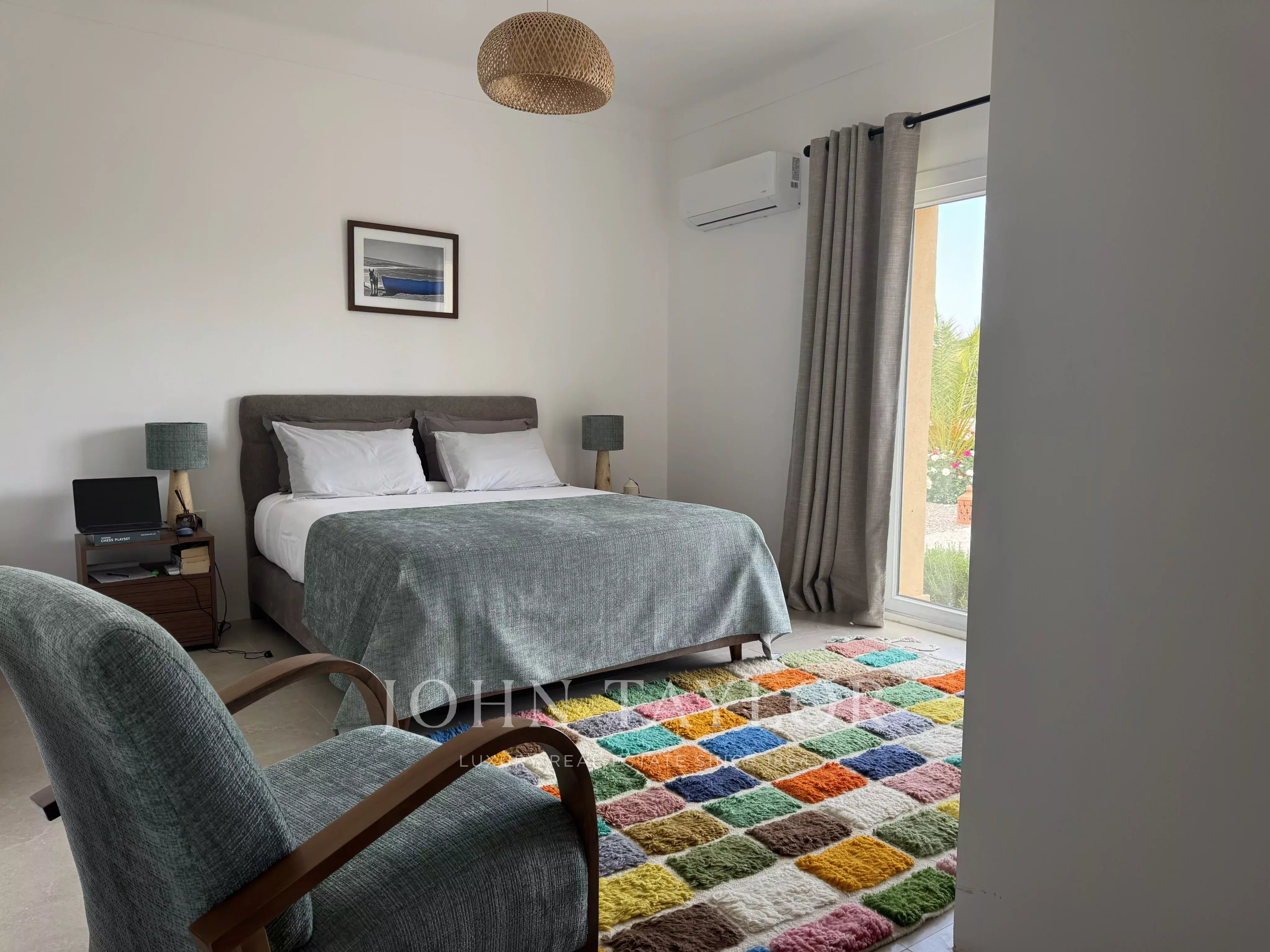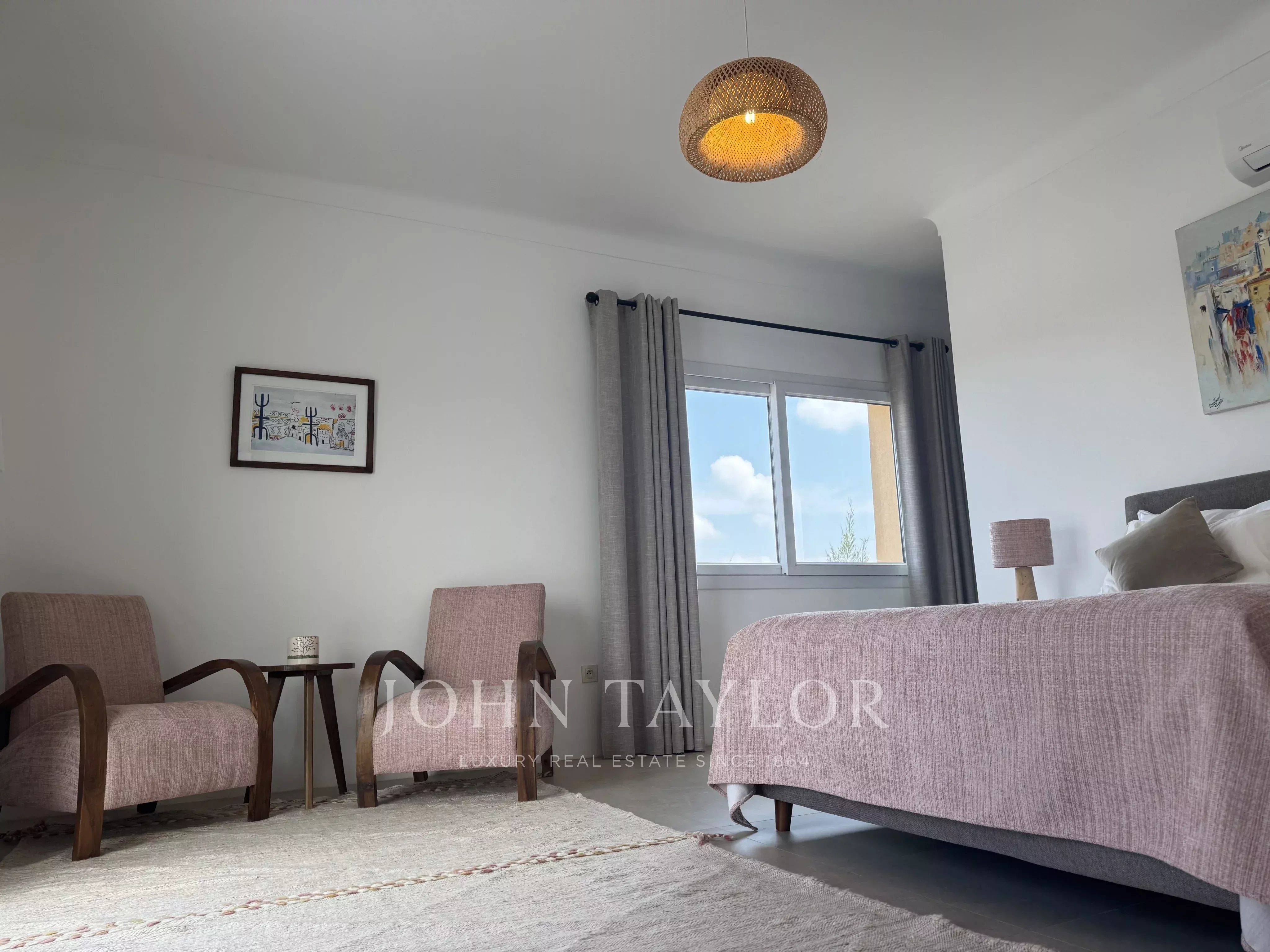 With a 420 sqm internal size over 2 floors, it comprises: a large and airy living area opening onto the pool, a spacious fitted kitchen, 4 ensuite bedrooms as well as a fith bedroom in a separate pavilion next to the pool.
