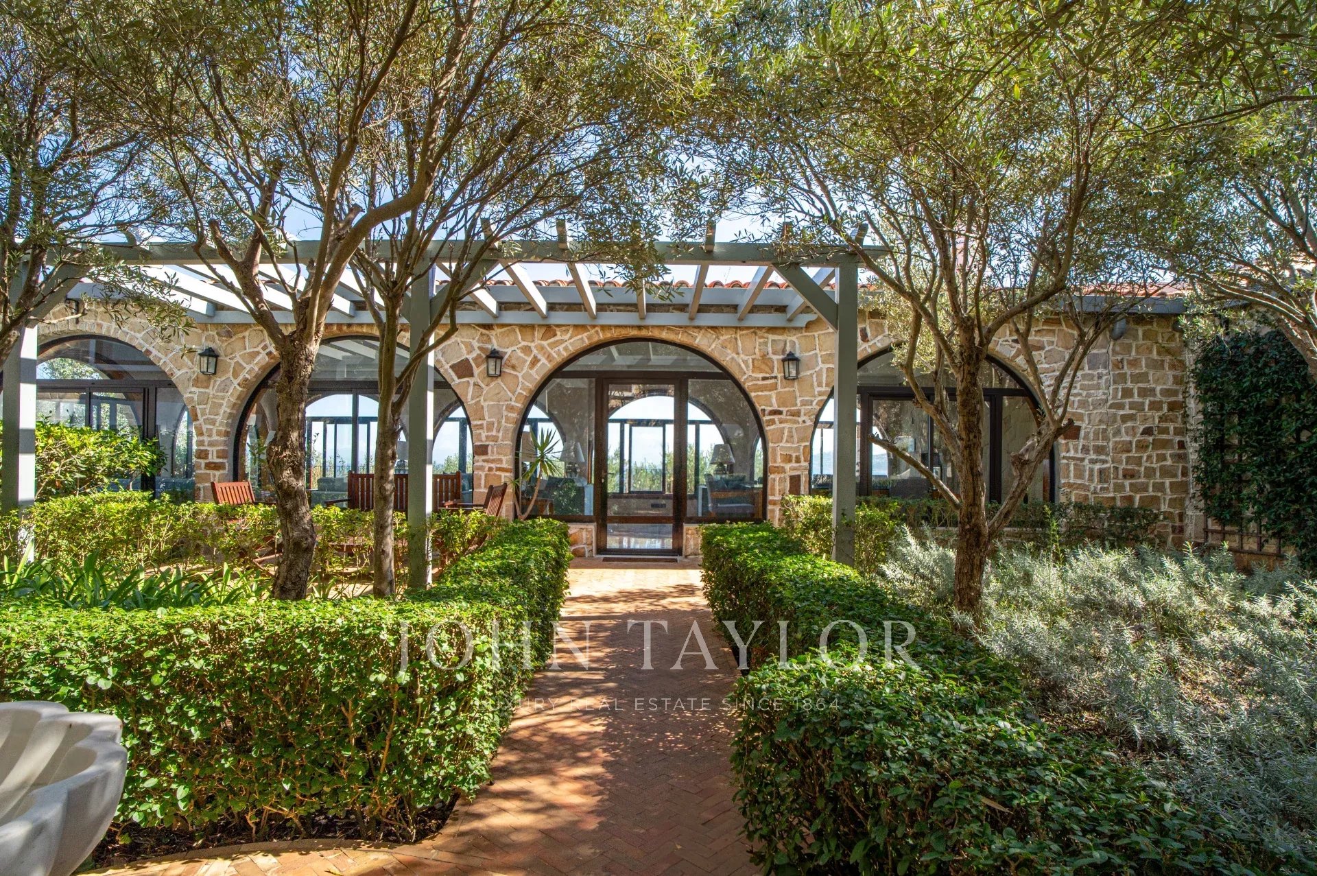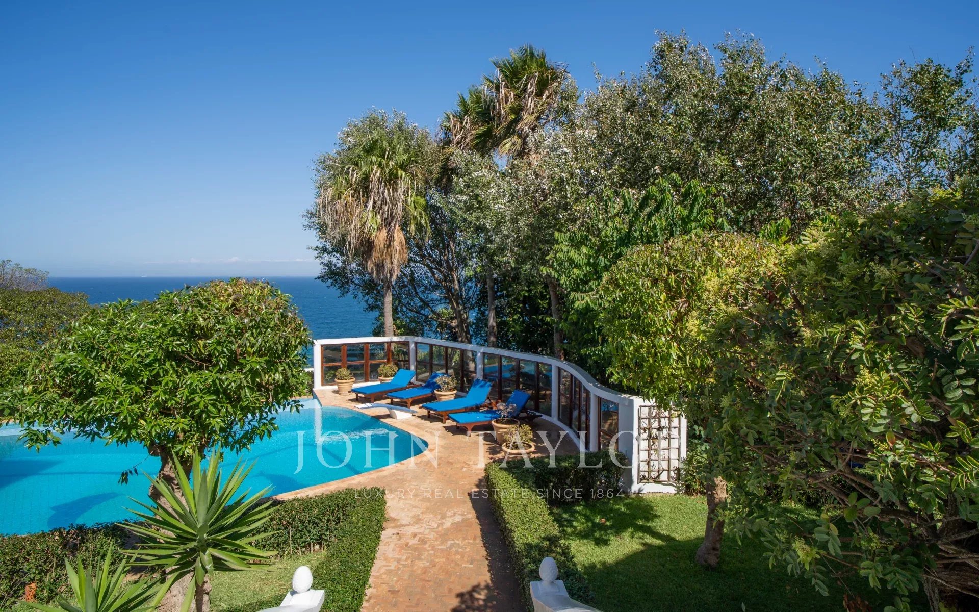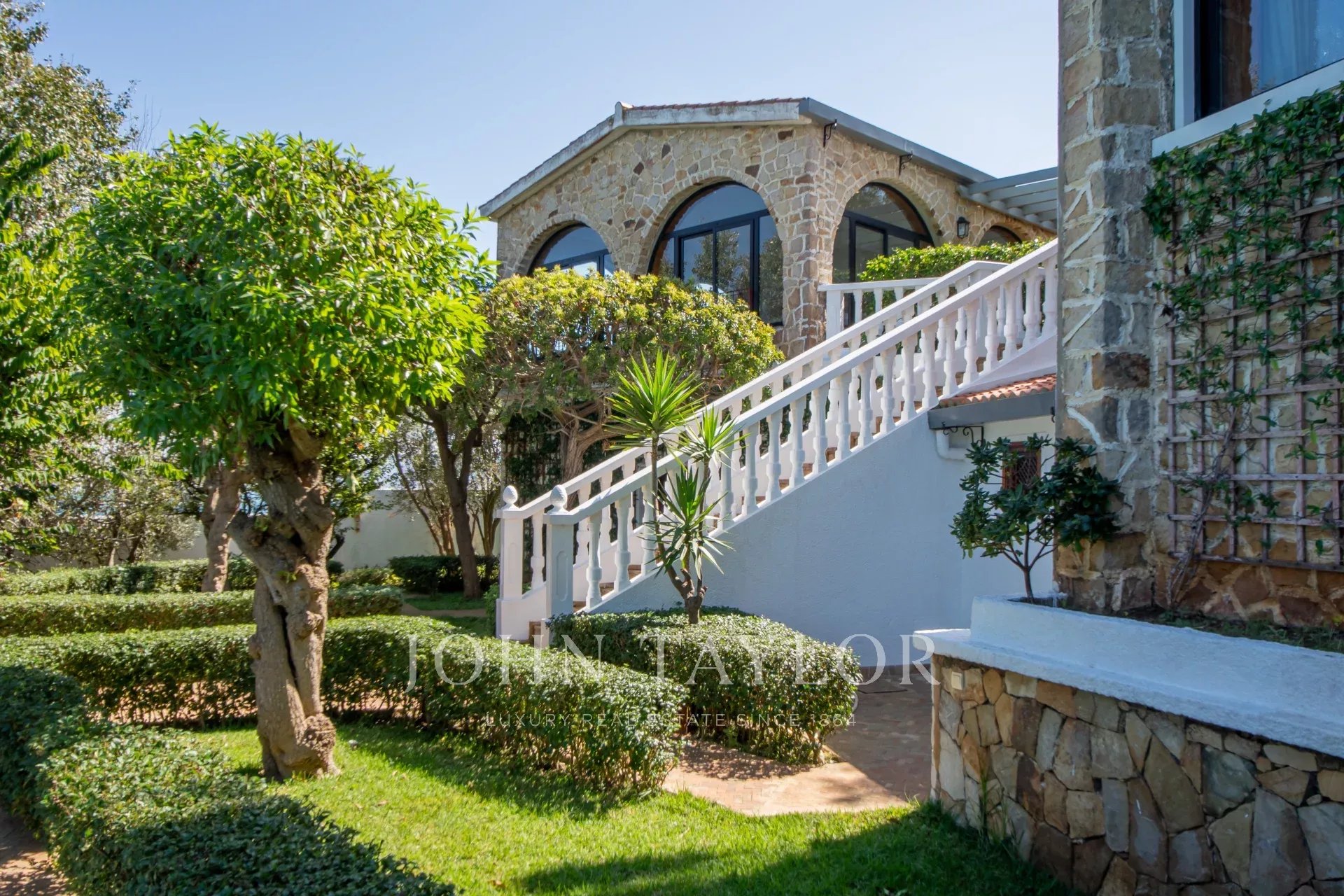 Nestled in a terraced 7 000 sqm garden hosting a swimming-pool, a summer lounga and pavilions overlooking the detroit, the villa refurbished in 2017 comprises over several levels: large living areas and 6 spacious suites including a superb master.
