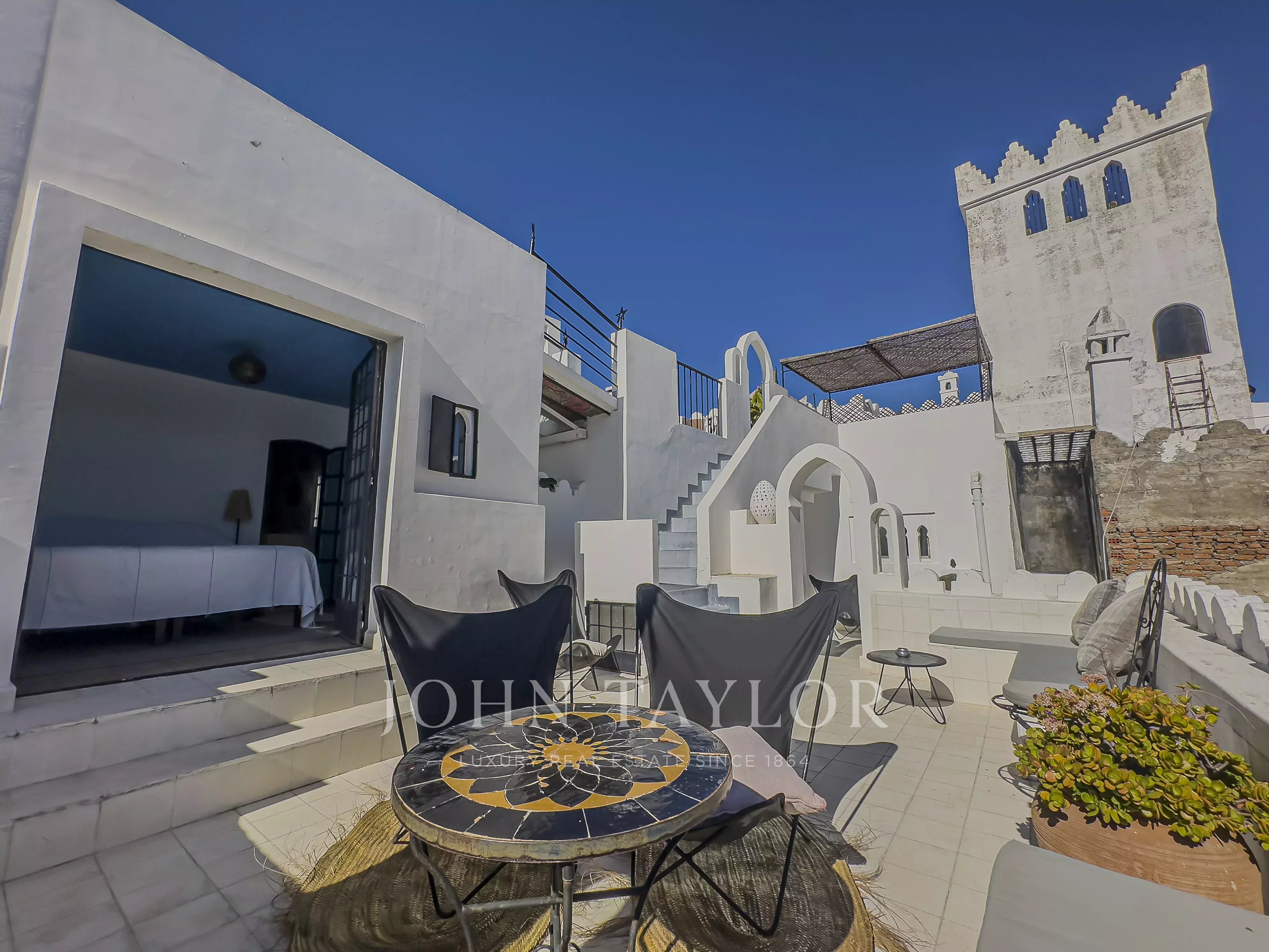 This unique property is enviably located on the heights of the historic Kasbah of Tangier and delights with lovely views over the iconic bay.