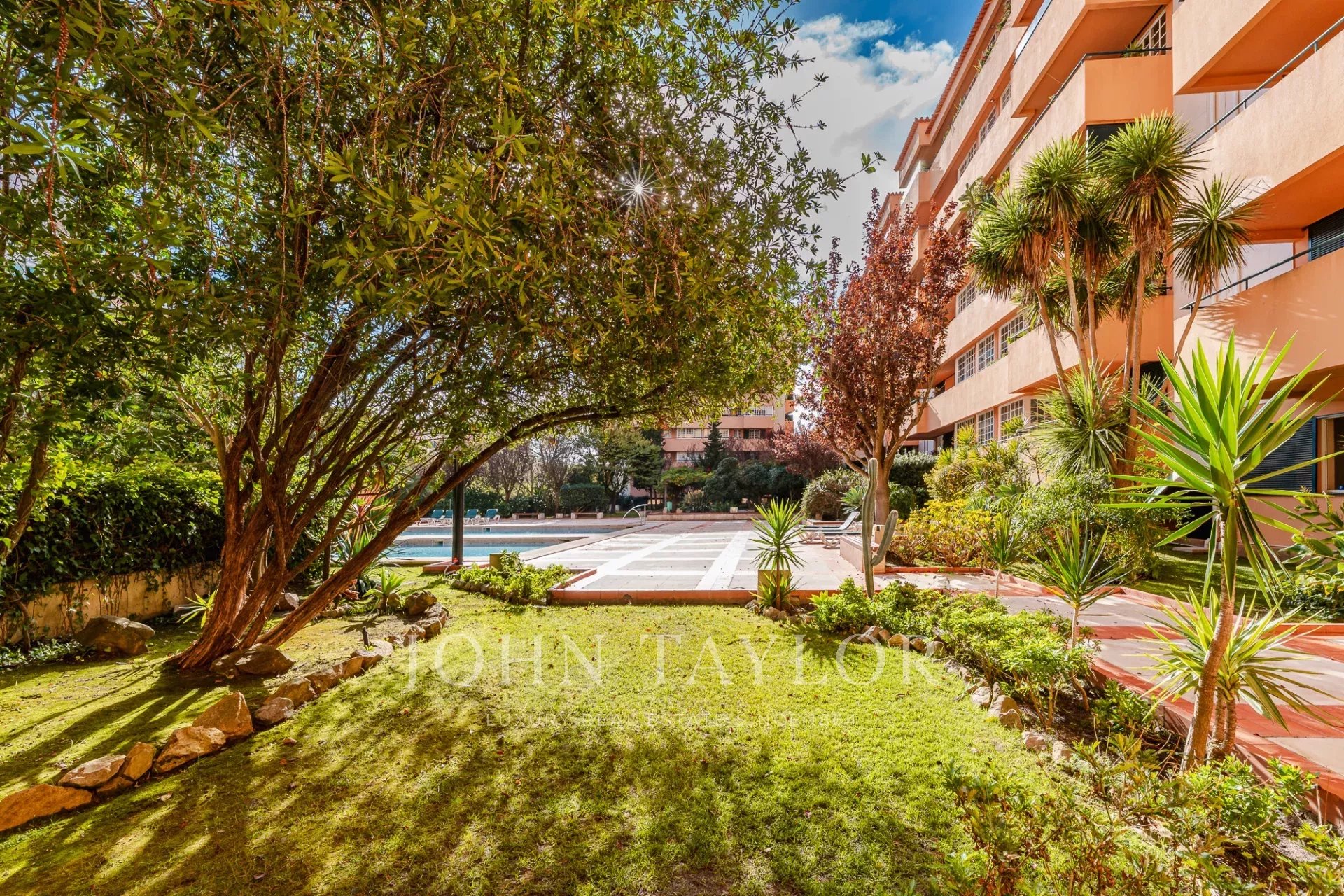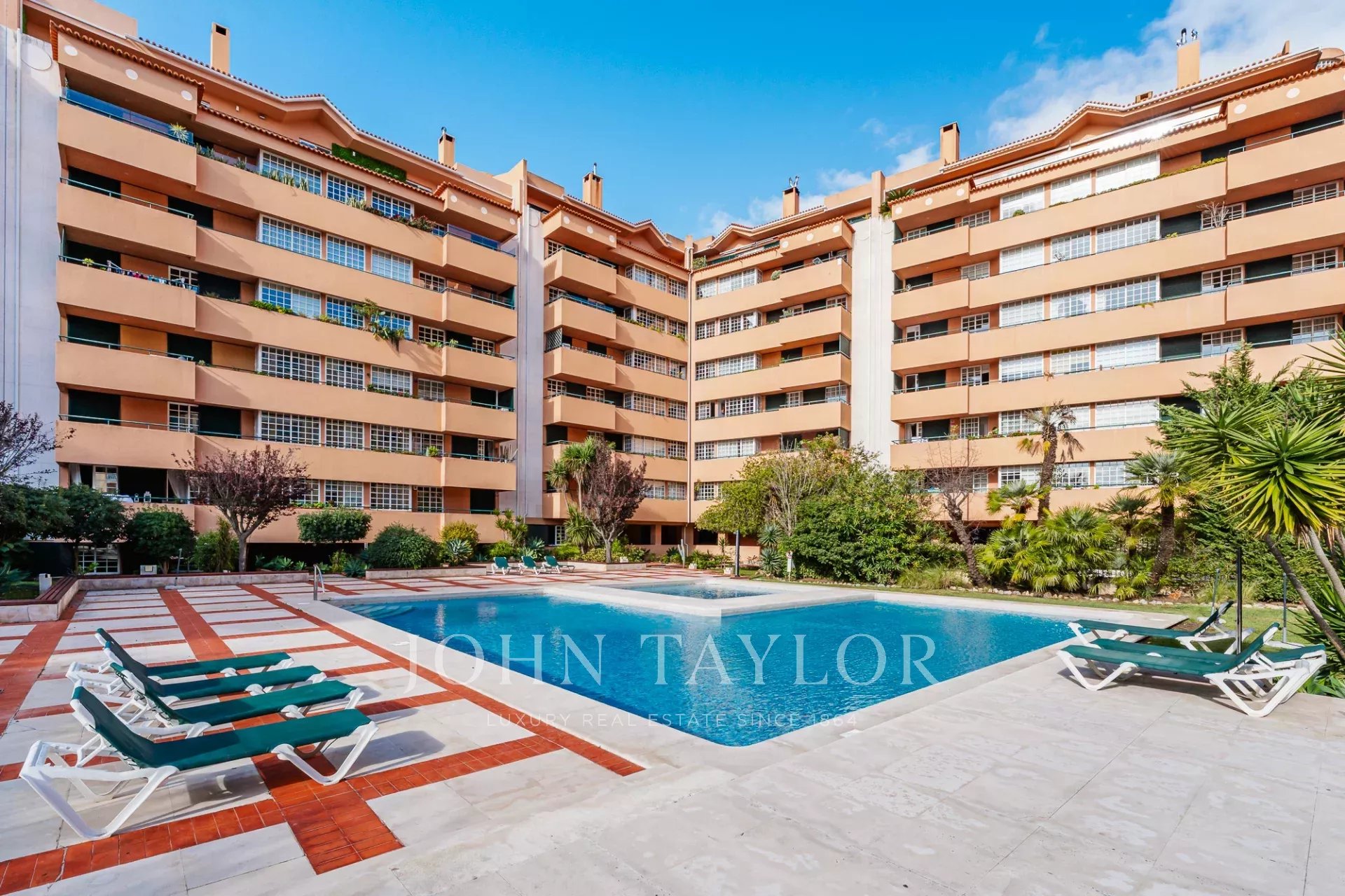 In the heart of the prestigious Bairro do Rosário in Cascais, this 94 m² two-bedroom apartment is located within a private condominium offering extensive amenities and beautifully landscaped gardens.