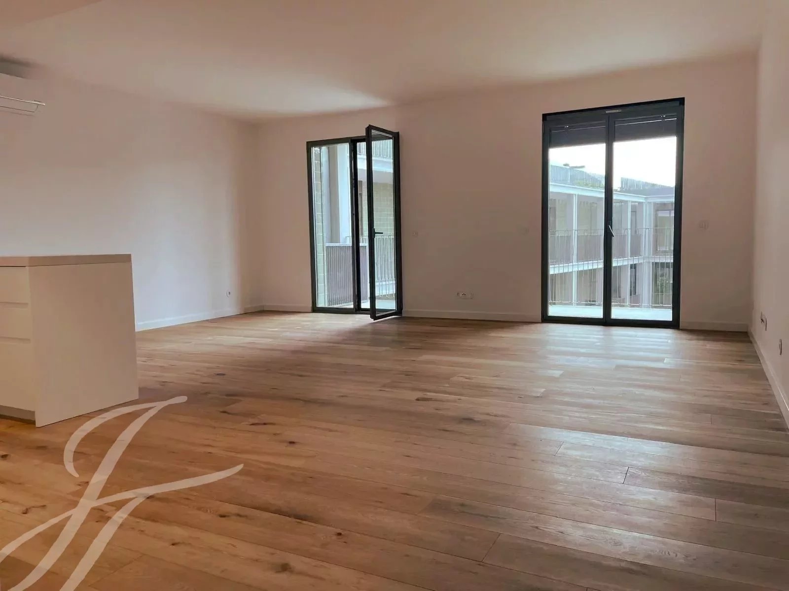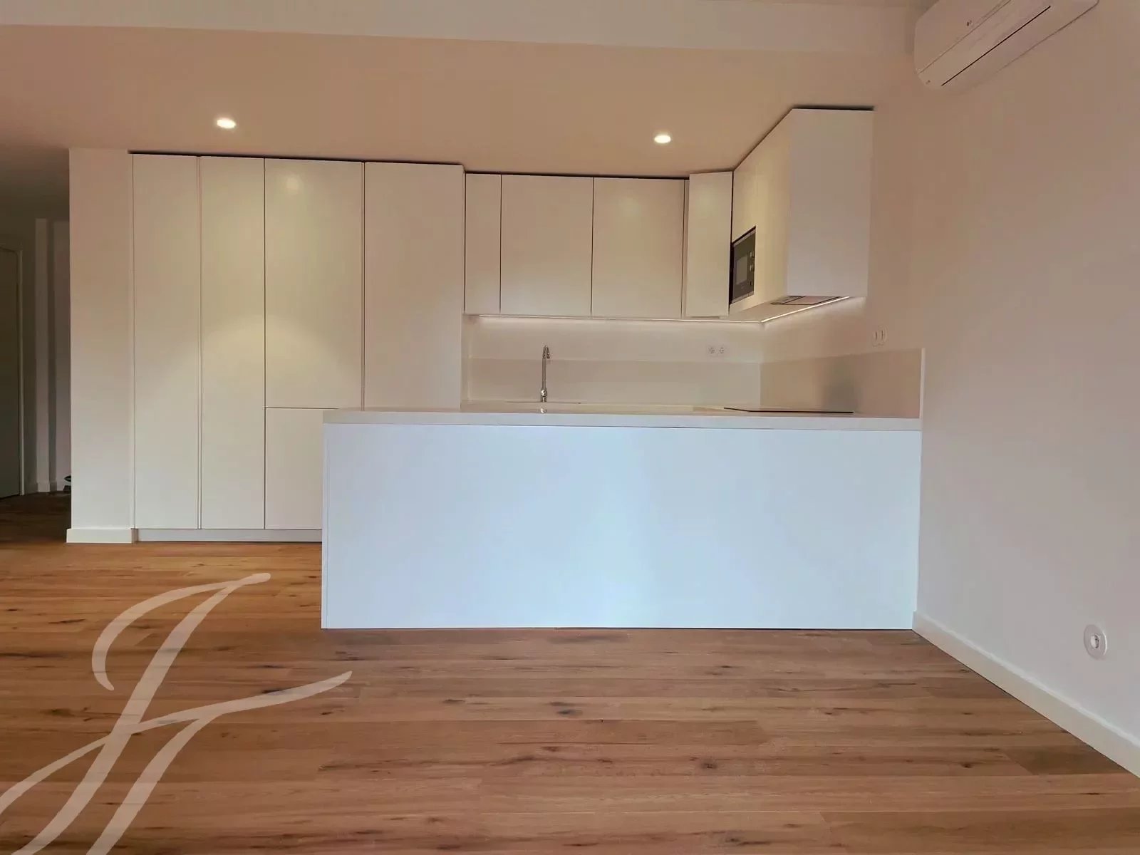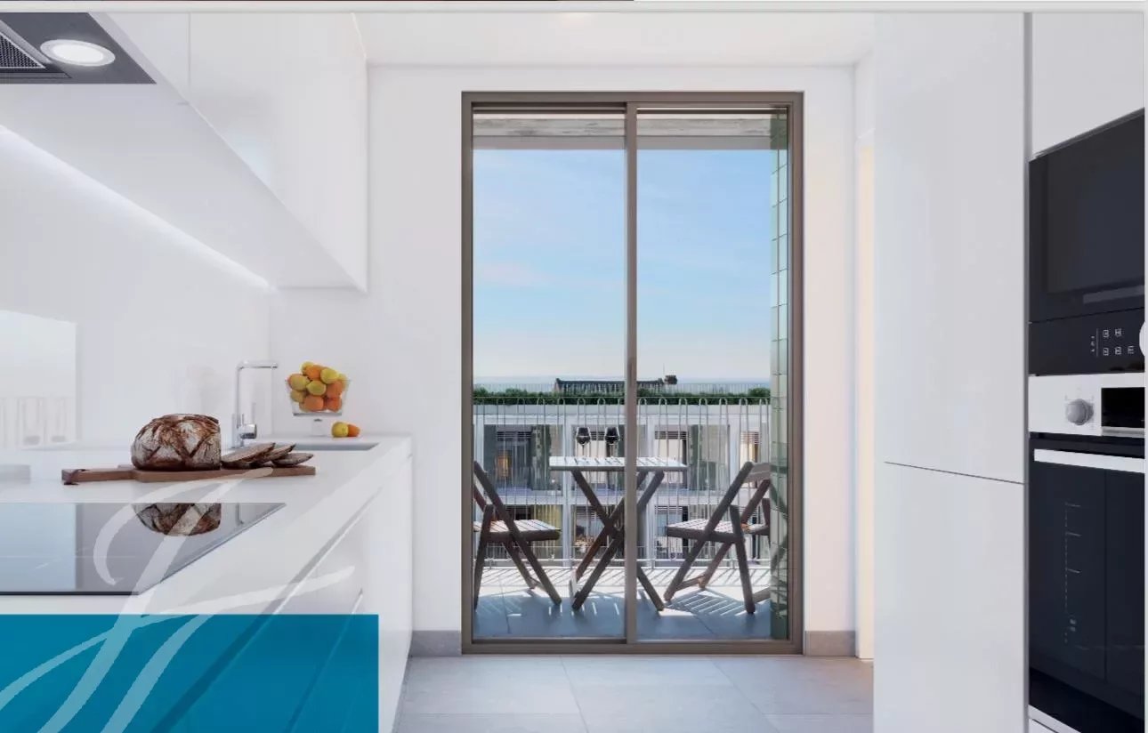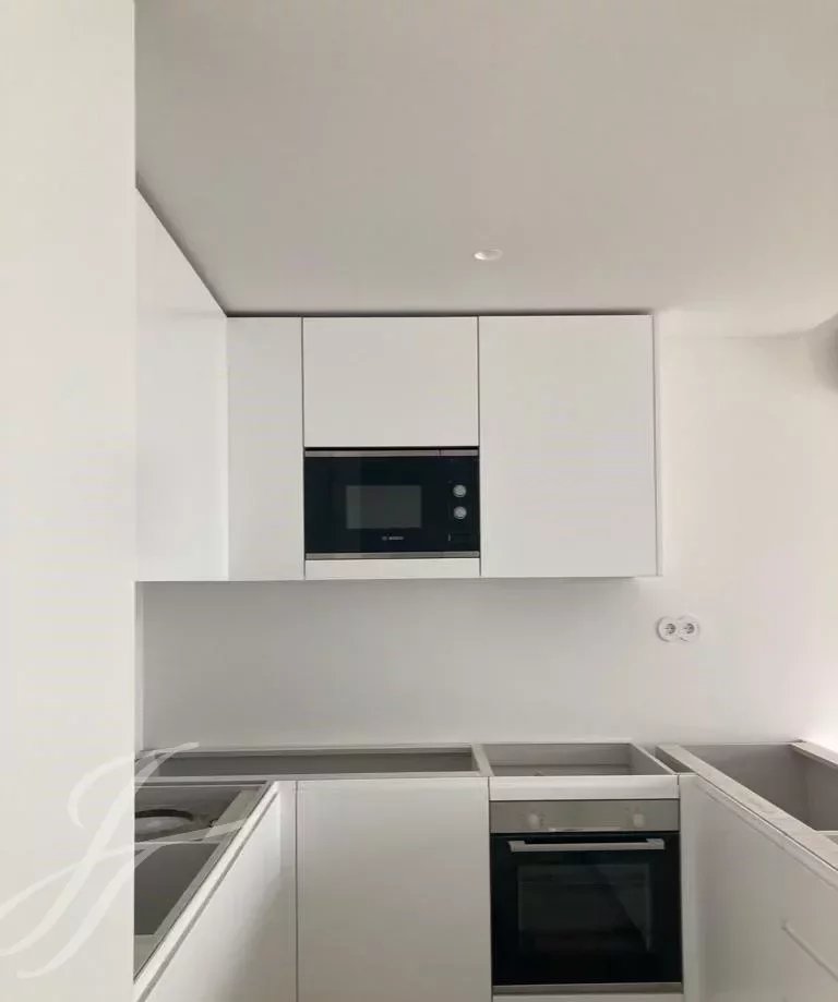 The typology of the apartment offers a spacious living room, a modern fully equipped open kitchen with built in Bosch appliances (fridge, oven, washing machine, dishwasher and microwave).