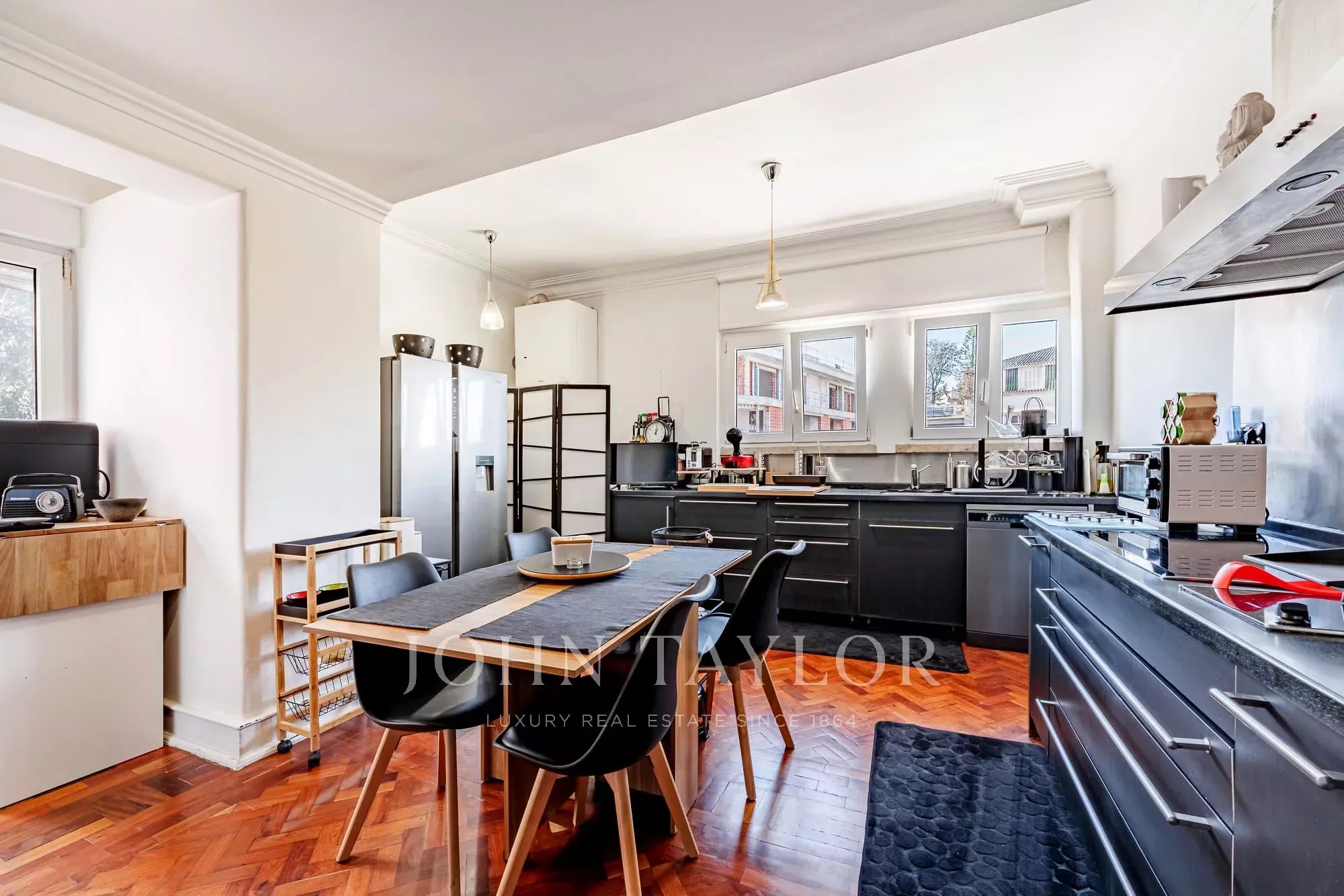 The fully equipped kitchen, also filled with natural light, has been thoughtfully designed to function as a central hub for daily life, combining practicality with comfort.