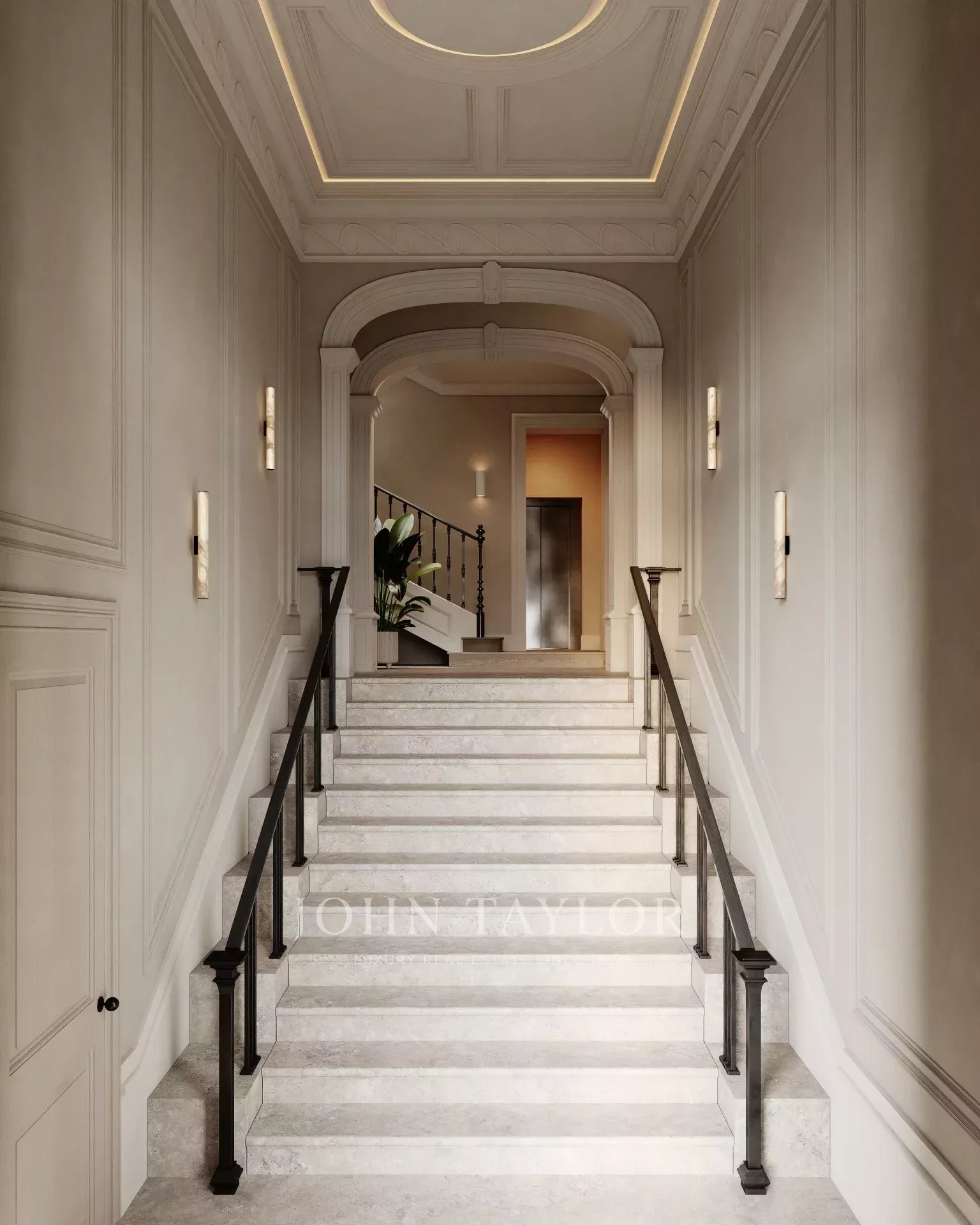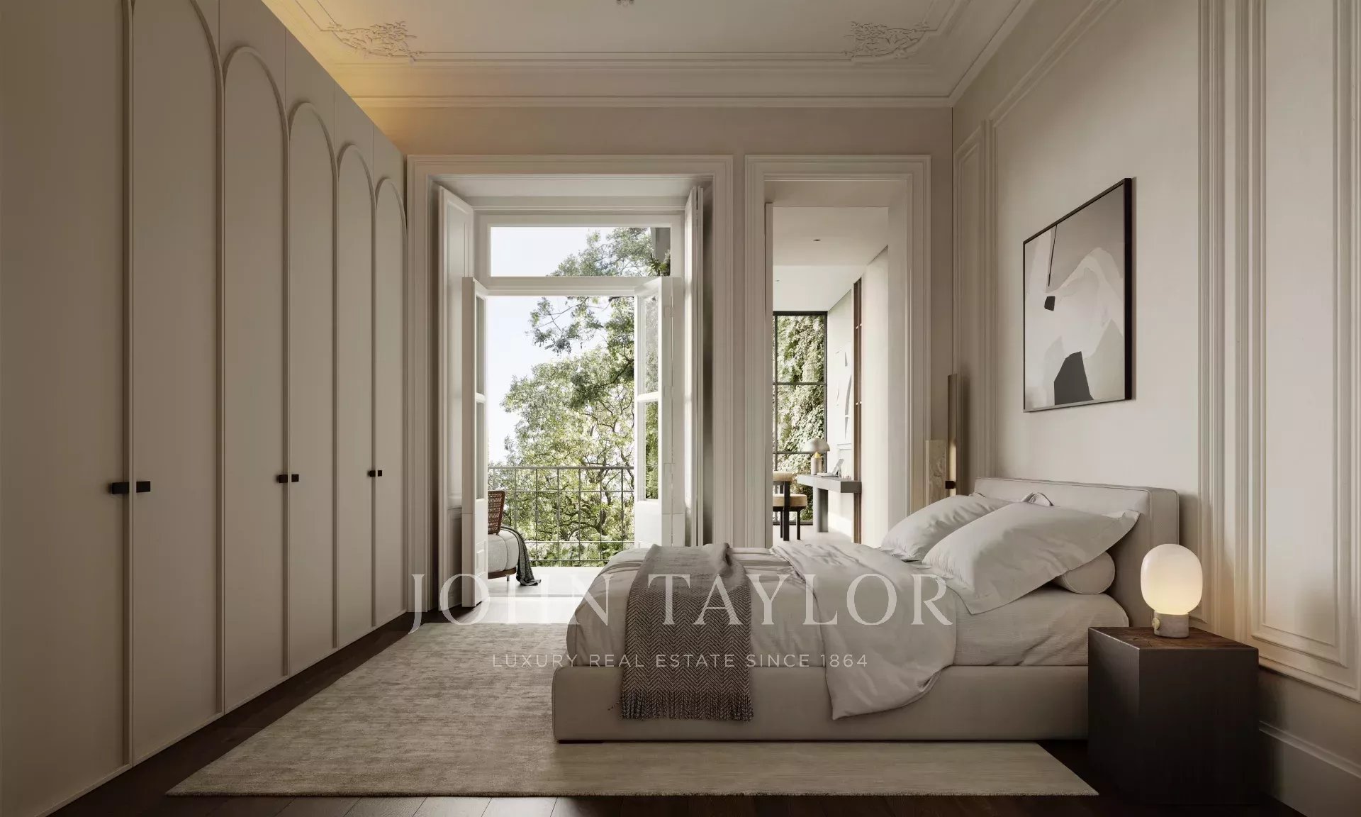 Set within a beautifully restored 19th-century neoclassical building, this residence blends historical charm with contemporary luxury. Carefully preserved original features—such as coffered ceilings and wooden floors—are paired with refined, high-end finishes that elevate everyday living.