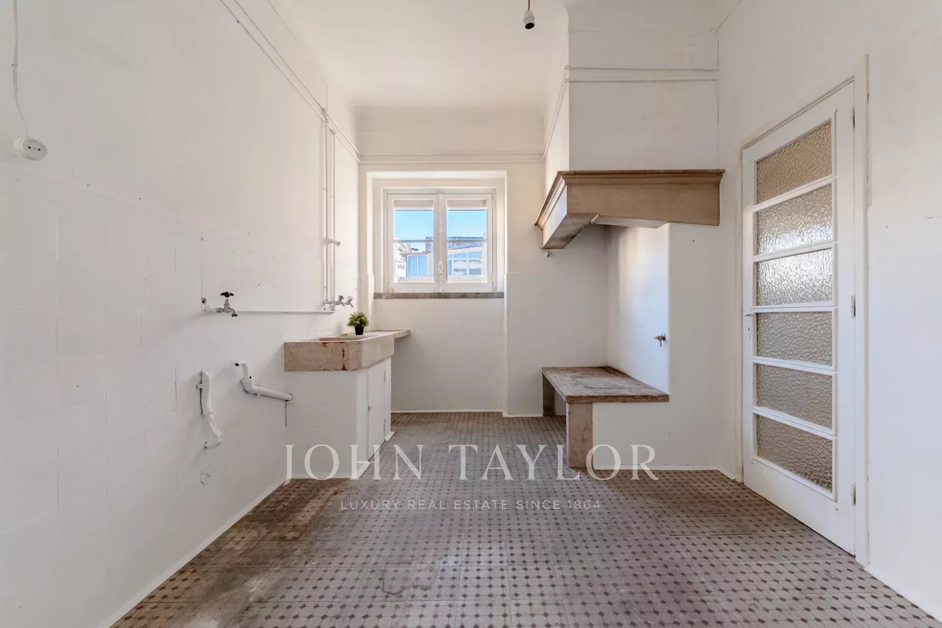 The interior features very generous spaces and an 8 m² storage room, offering excellent potential for personalisation: whether through a contemporary renovation with modern lines or by restoring the original Lisboan character and the charm of its classical details.