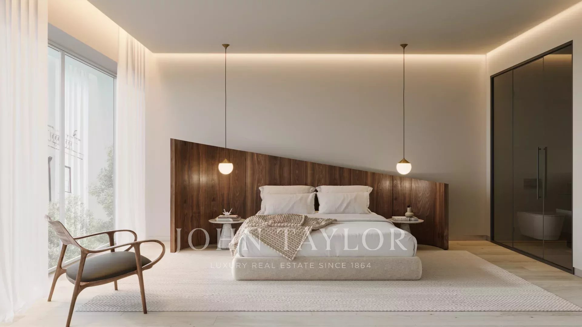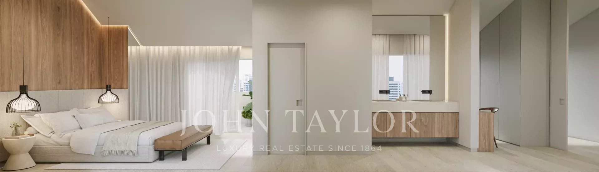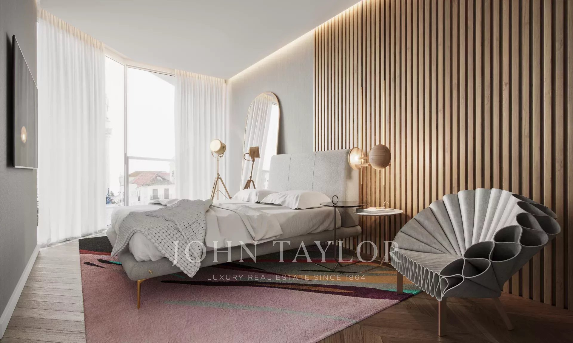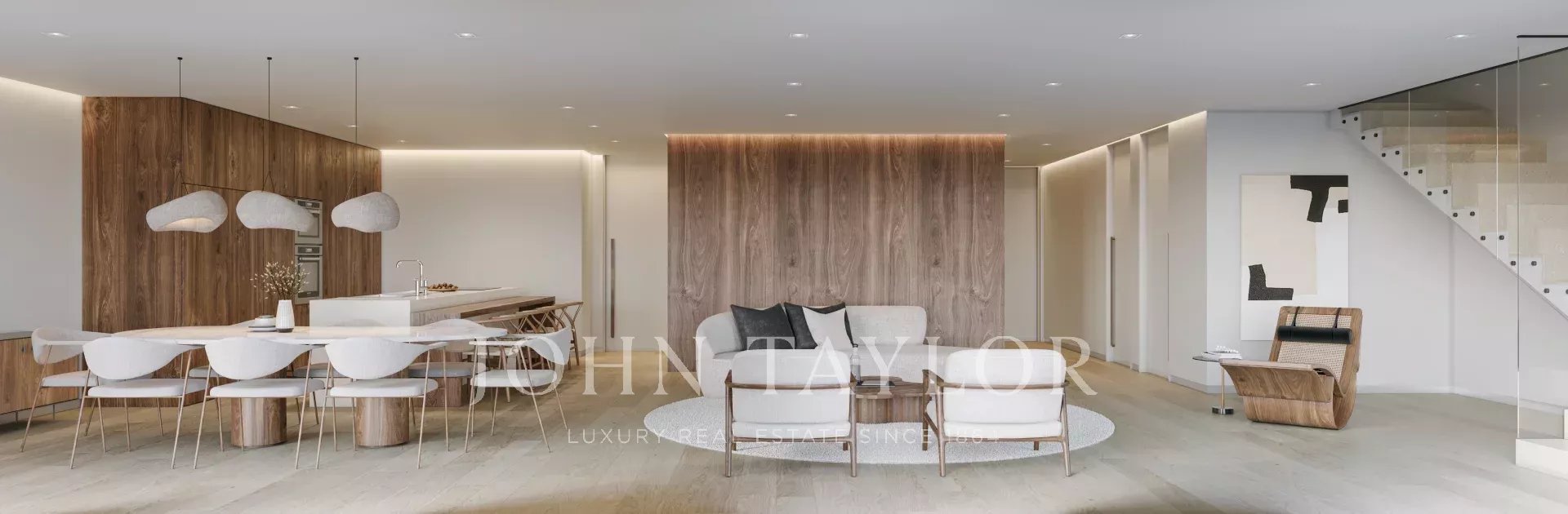 With a total area of 230 m², the apartment features three spacious suites, including a stunning 85 m² master suite occupying the entire upper floor. This private retreat includes a generous dressing room and four terraces offering panoramic views over Lisbon.