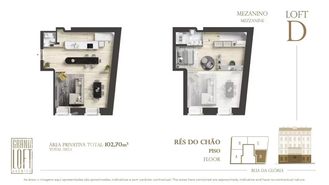 This one-bedroom Loft has a gross covered area of 102.70m2 and views over the typical Rua da Glória.