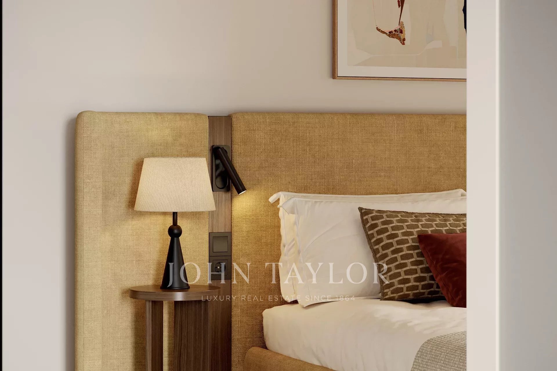 Quality finishes include solid wood floors, marble bathrooms, neutral tones, and original detailing preserved throughout the building. The layout is both practical and elegant, designed to suit either full-time living or a short-stay residence.