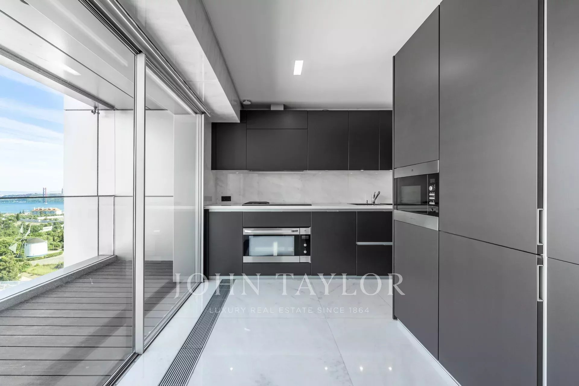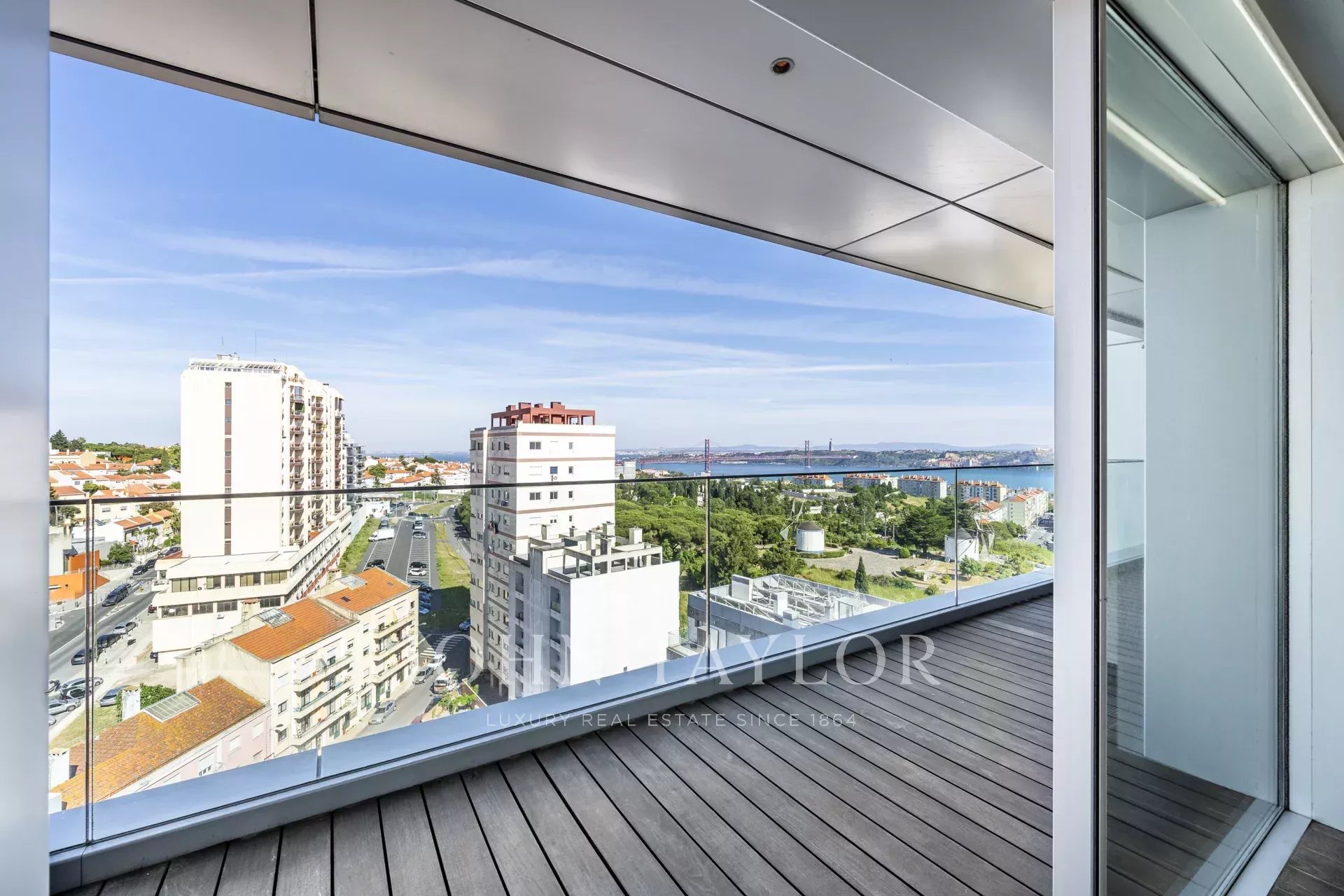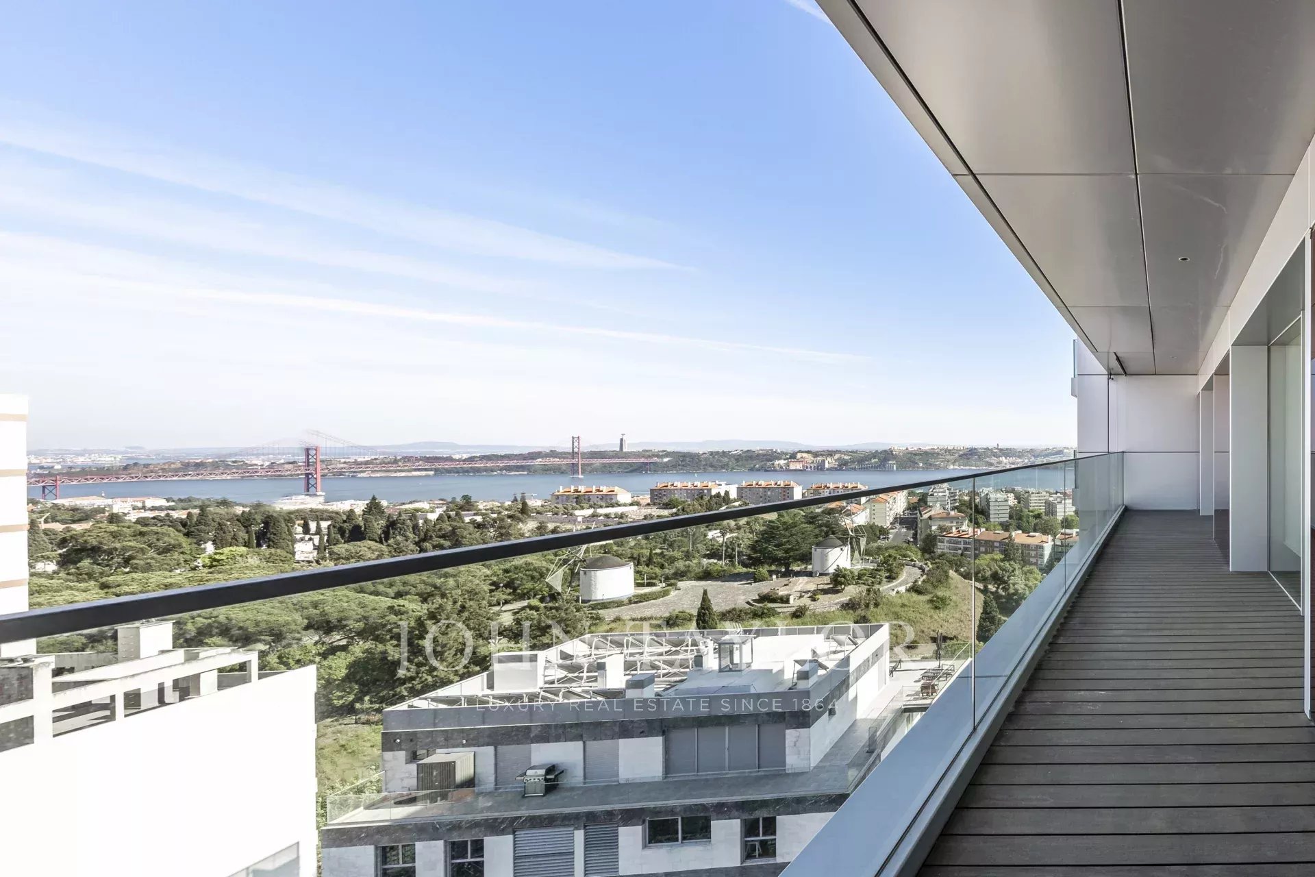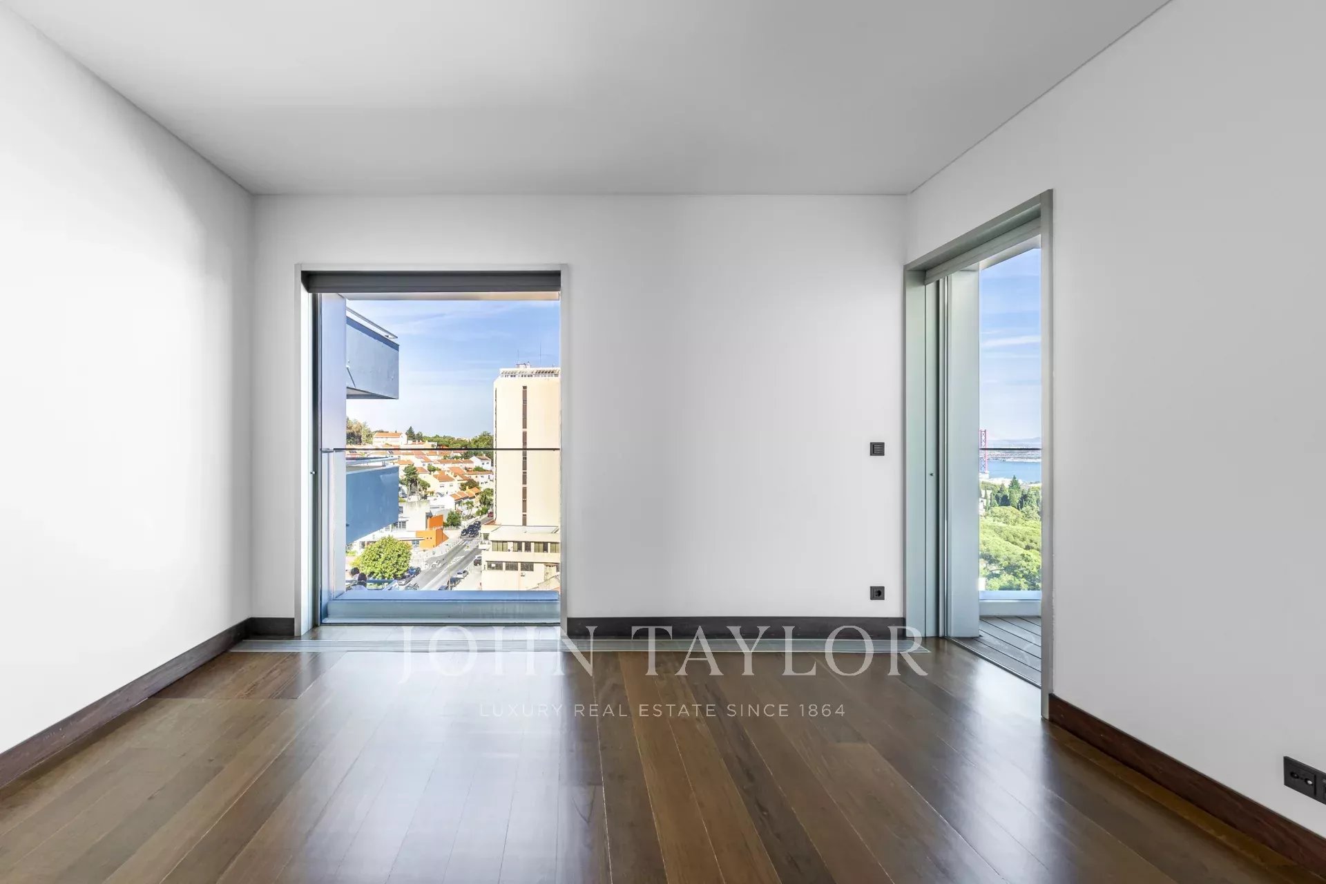 4 bedroom apartment with 279 m2 of gross private area and 3 parking spaces, inserted in a luxury condominium, with swimming pool and gym, located on the hillside of Belém, with a fantastic view over the city, the Tagus river and the Monsanto mountain range.