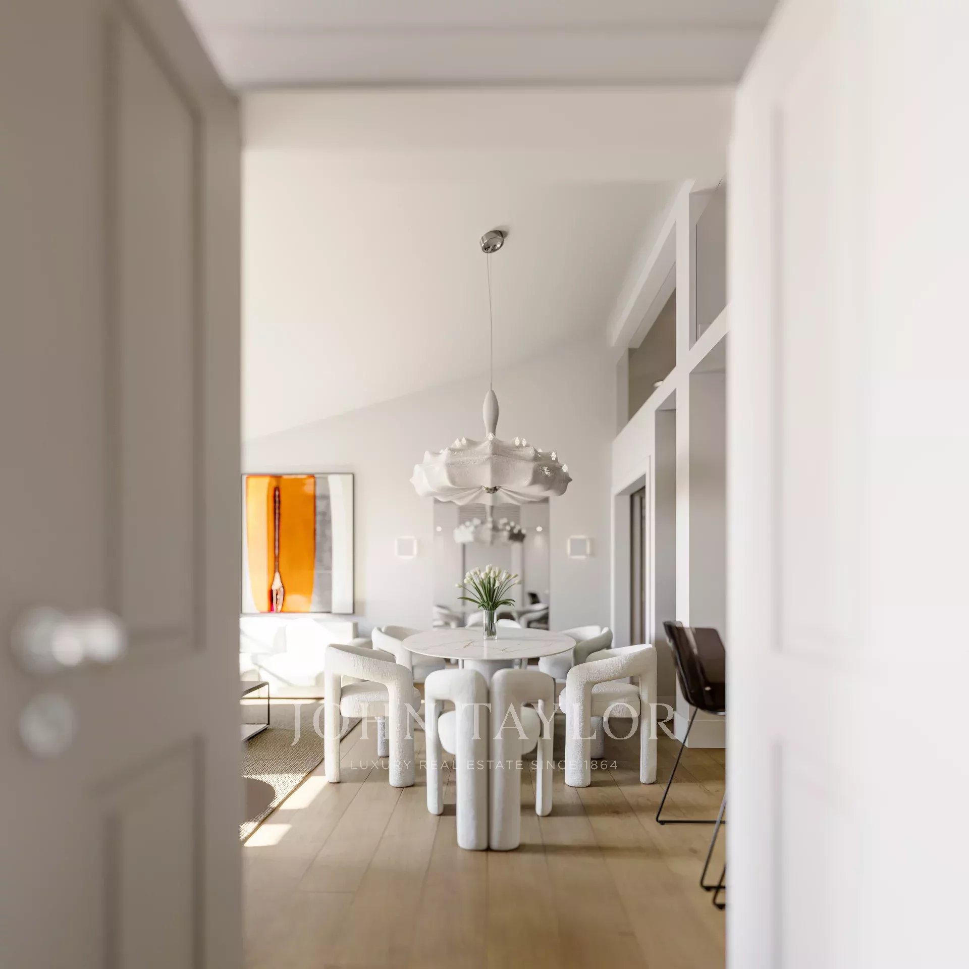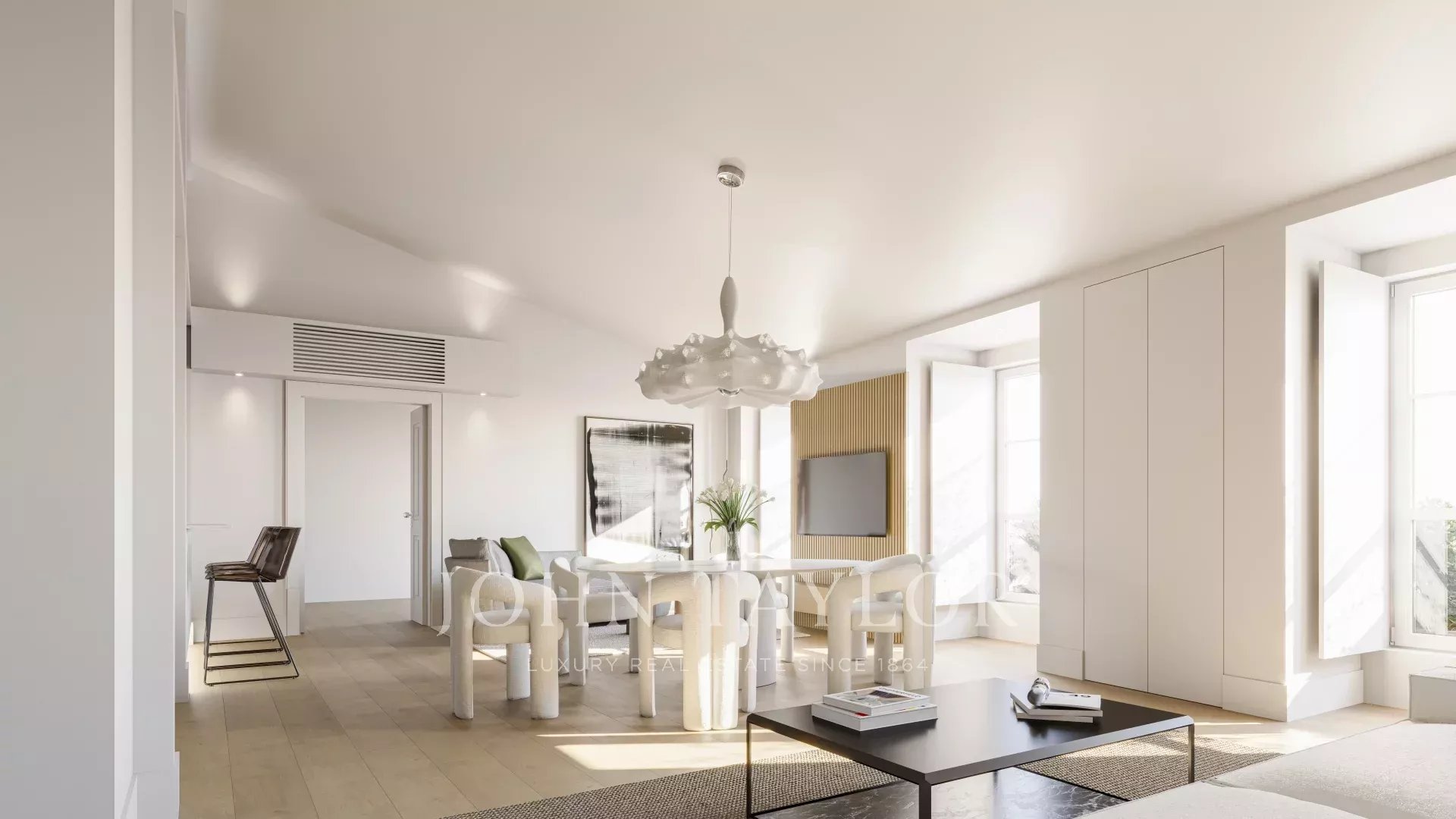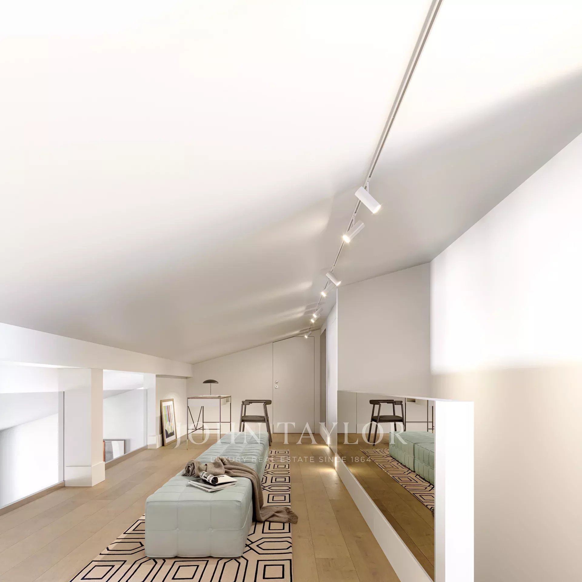 This 158 m² penthouse, accessible by an elevator, is situated in the Alecrim 51 building in Chiado, Lisbon, on one of the city’s most iconic streets. The 18th-century building has been fully restored, preserving its Pombaline style while incorporating modern comforts.