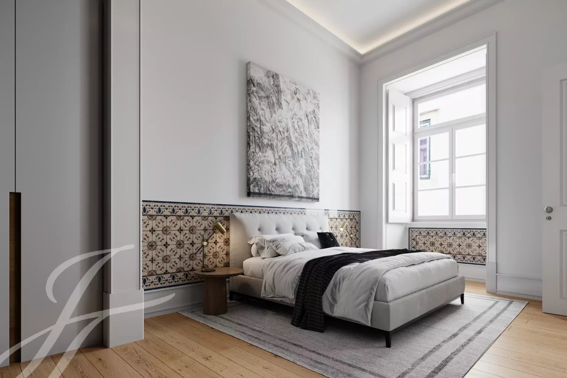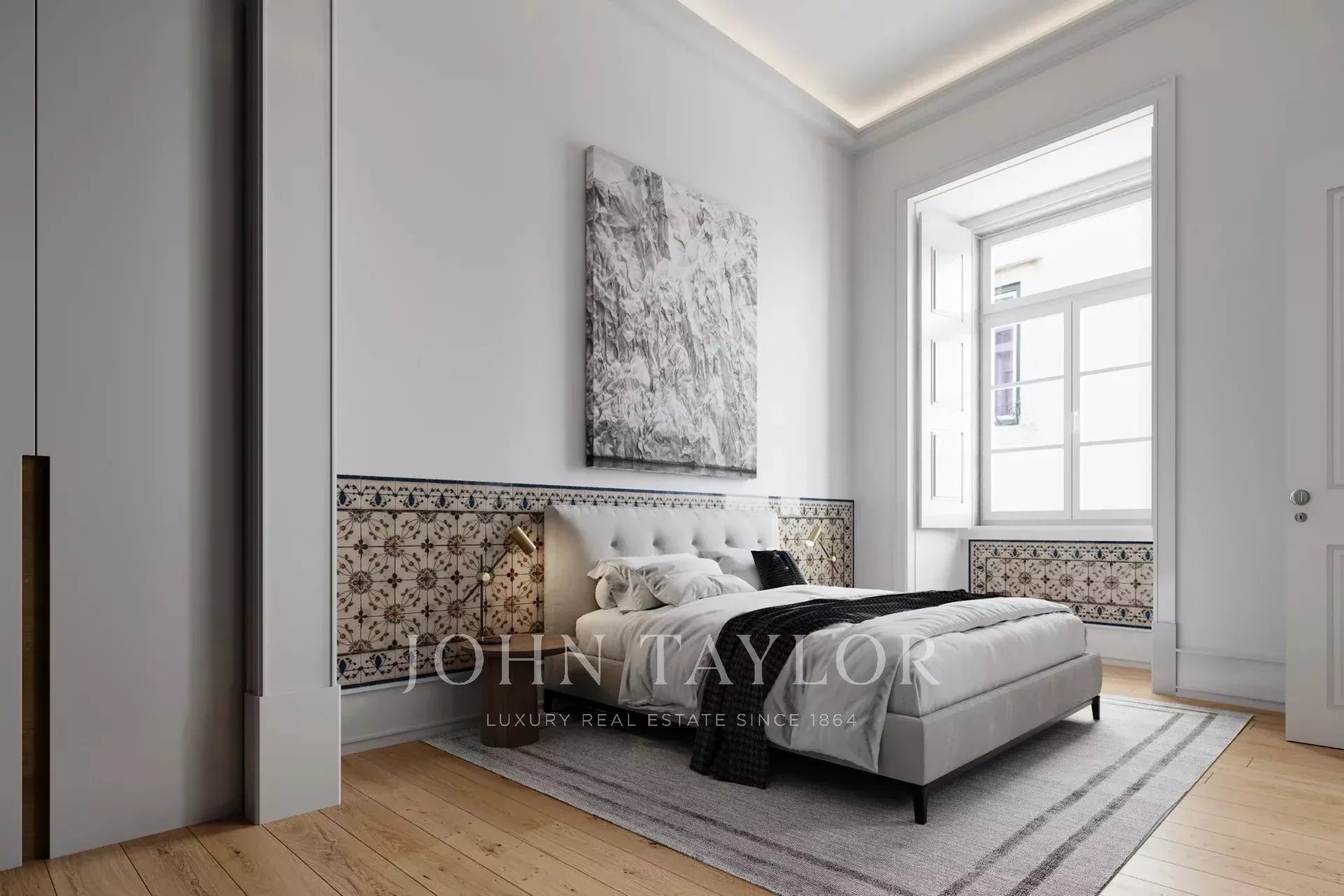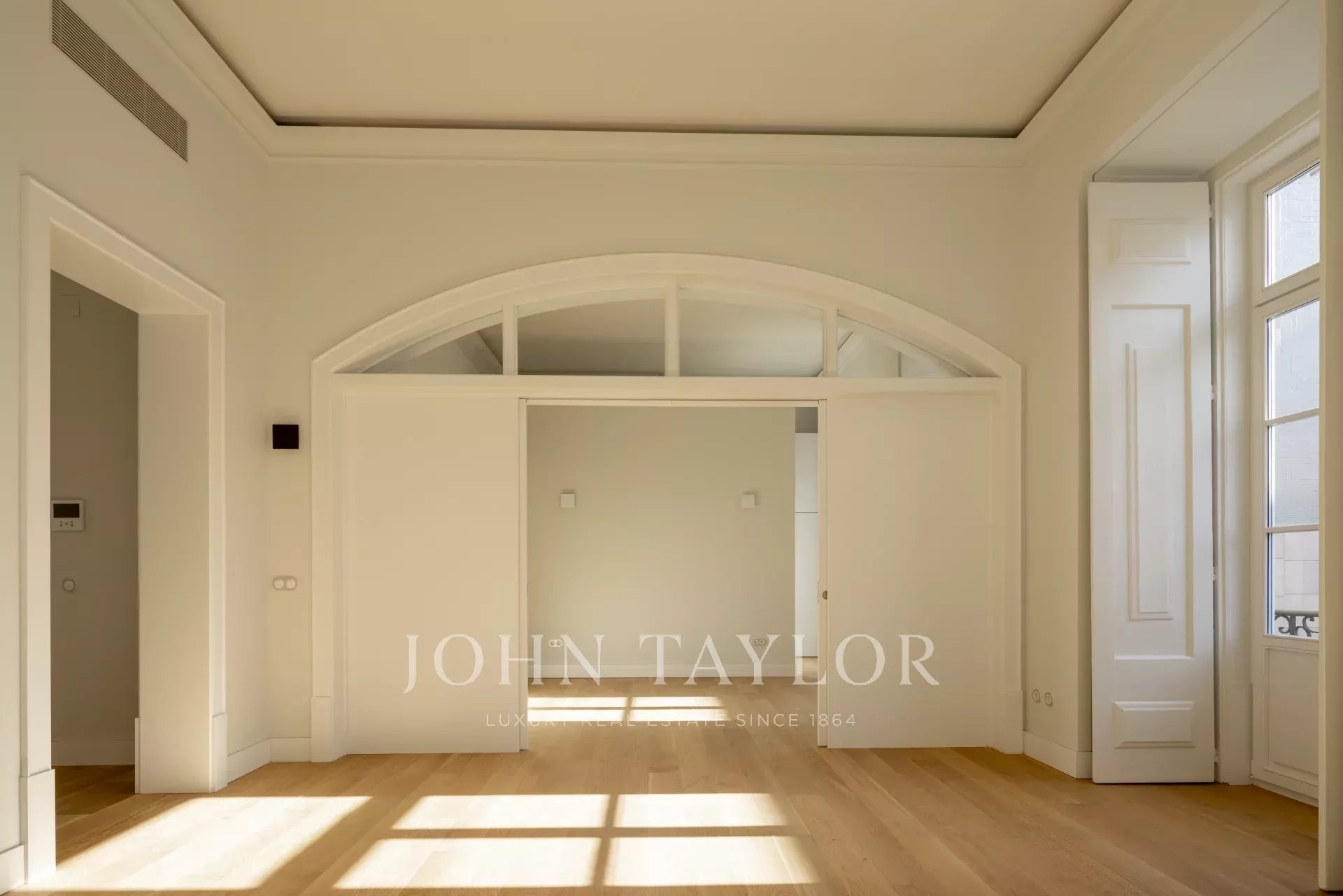 This elegant 110 m² apartment in the Alecrim 51 building, in Chiado, features 2 spacious suites, 3-meter-high ceilings, elevator access, and refined Pombaline architecture. Dating from the 18th century, the building has been carefully restored to preserve its historical character while offering modern comfort.