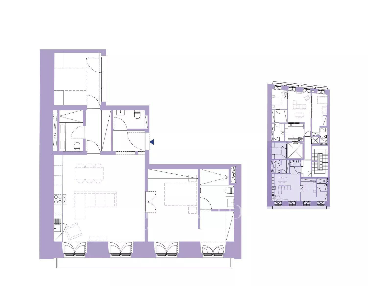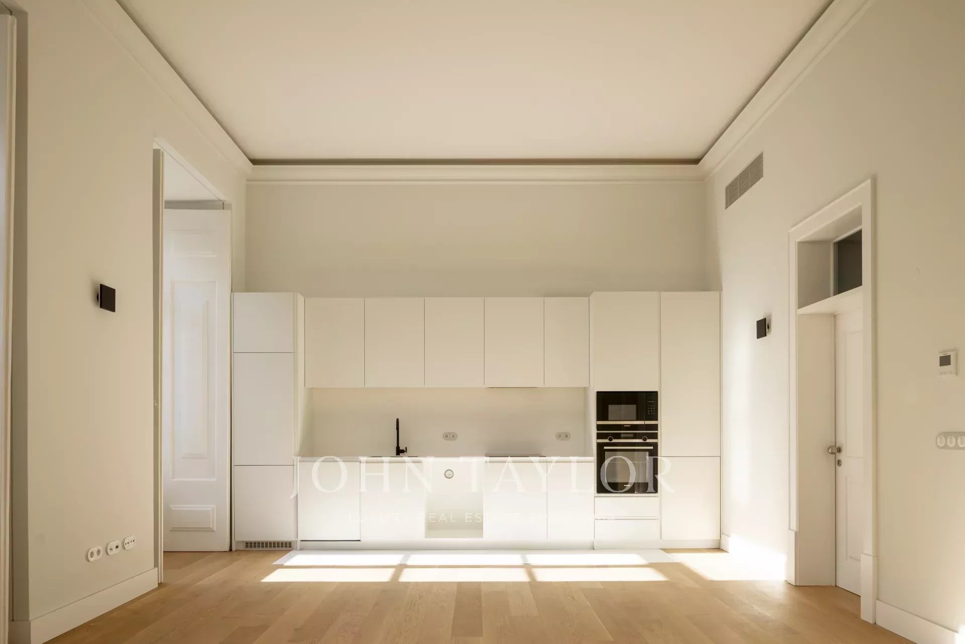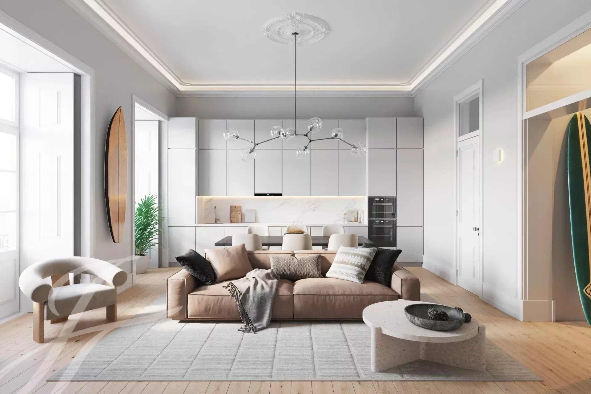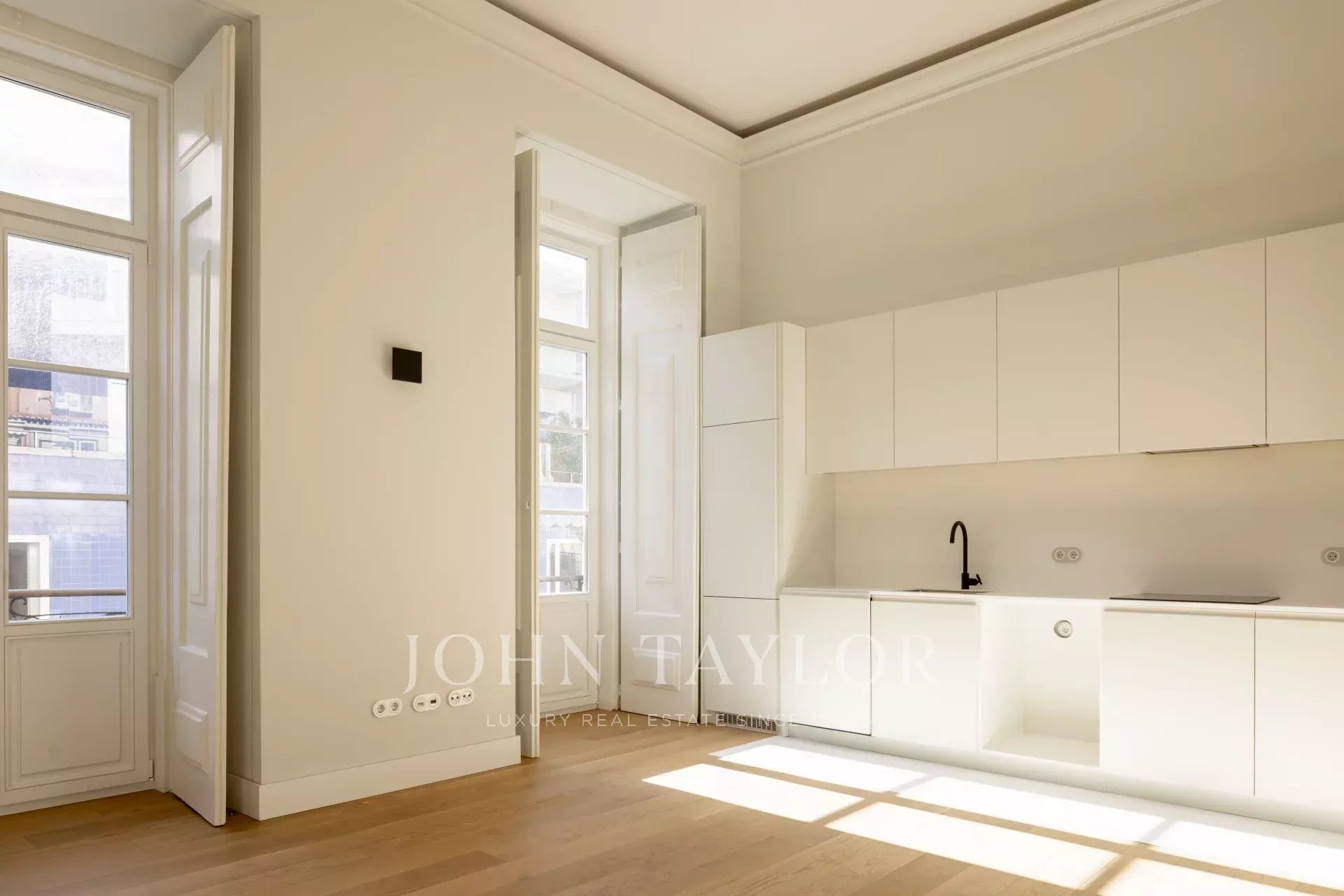 This elegant 110 m² apartment in the Alecrim 51 building, in Chiado, features 2 spacious suites, 3-meter-high ceilings, elevator access, and refined Pombaline architecture. Dating from the 18th century, the building has been carefully restored to preserve its historical character while offering modern comfort.
