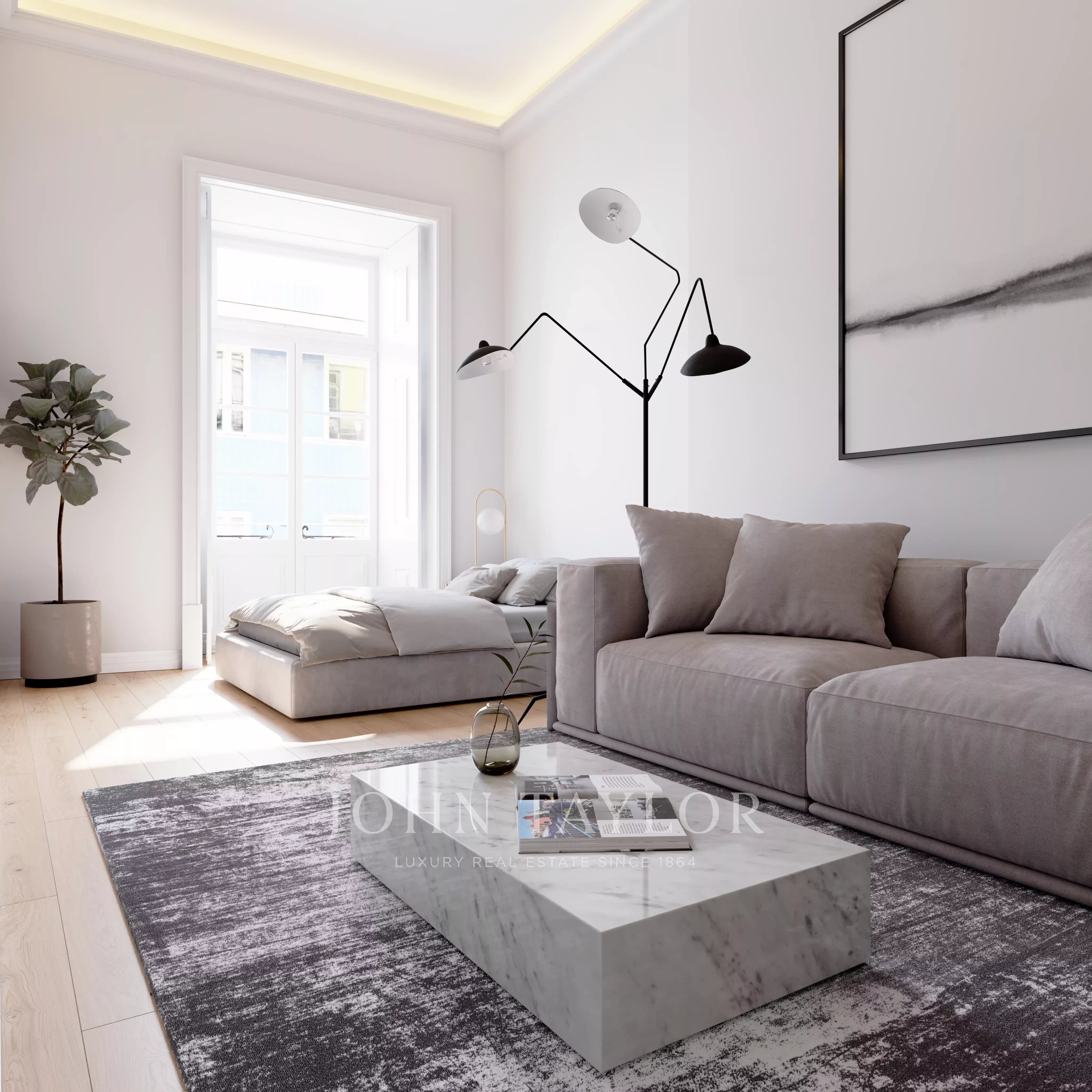 This charming 1-bedroom apartment on Rua do Alecrim is set in a beautifully restored 18th-century building, preserving its original Pombaline architecture. With 4-meter-high ceilings and 91.5m² of living space, the apartment offers a perfect blend of historical character and modern luxury. The interior features top-quality finishes, combining elegance and comfort with luxury amenities.