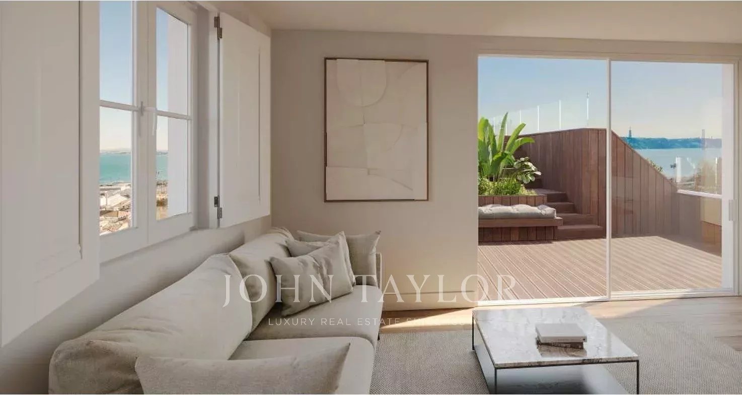 This two-bedroom apartment of 130 m², located in LIV Santa Catarina, offers stunning views over the River Tagus and the city of Lisbon. It is set within a distinguished 19th-century building in the Santa Catarina neighbourhood, one of the most sought-after locations in the heart of the capital.