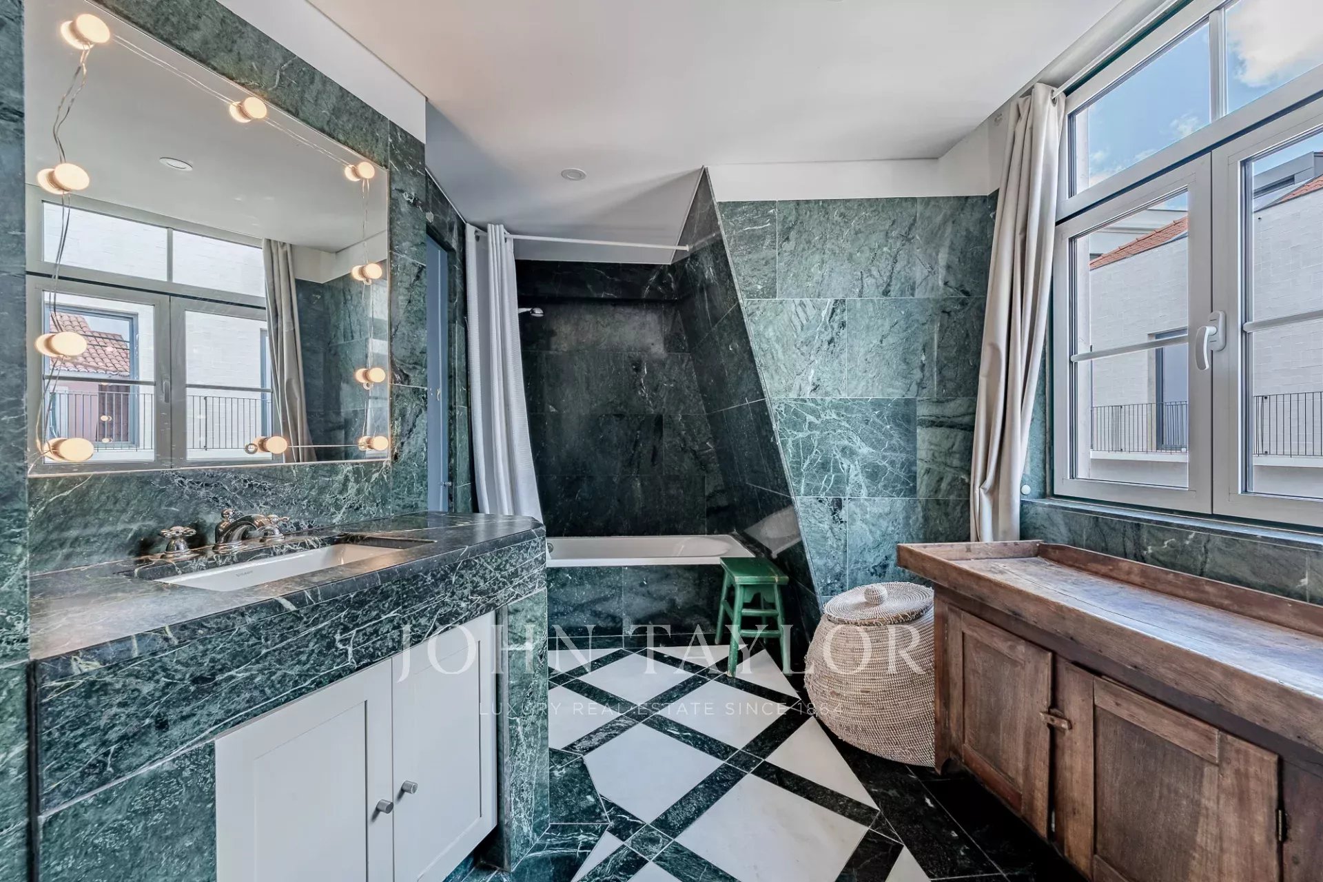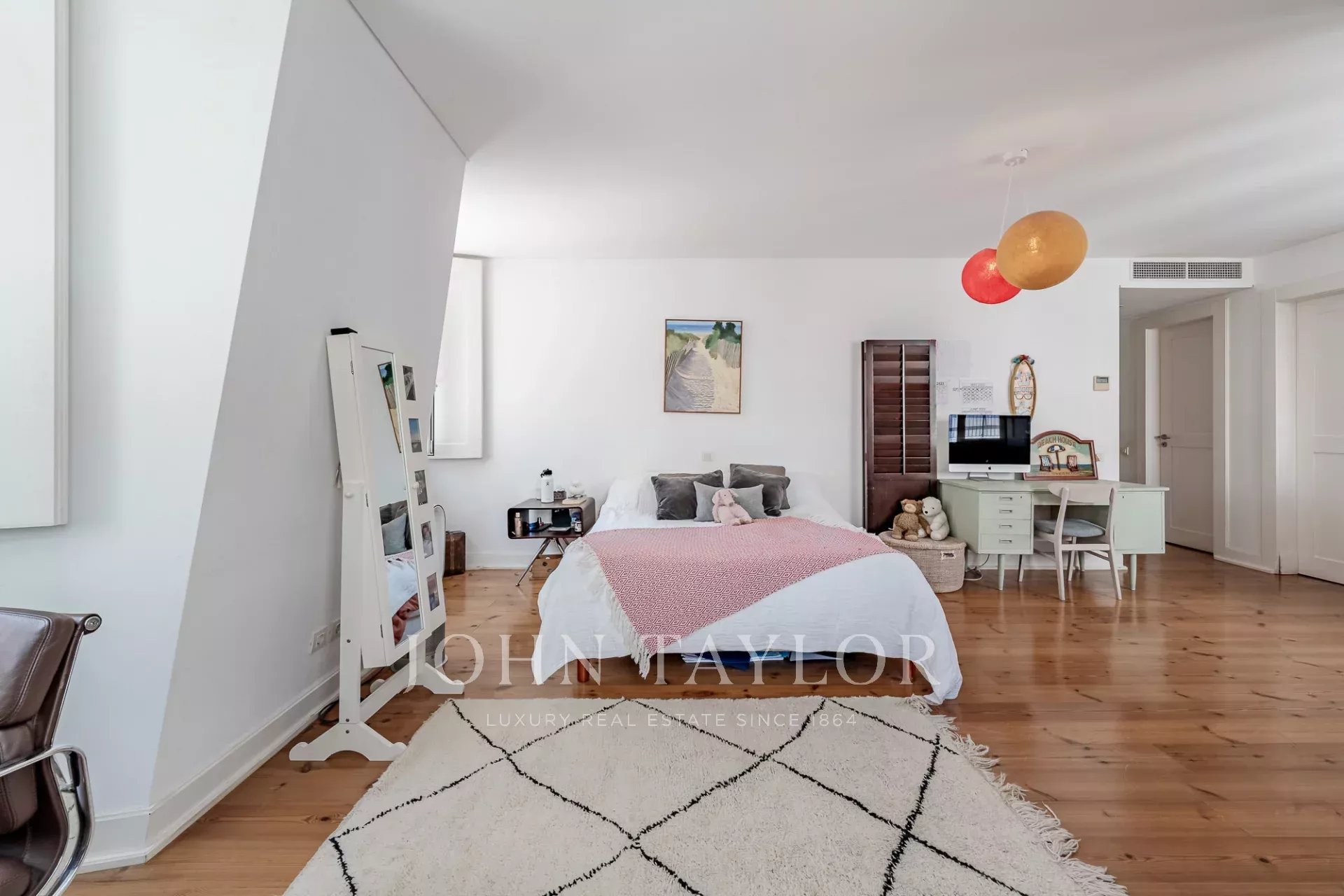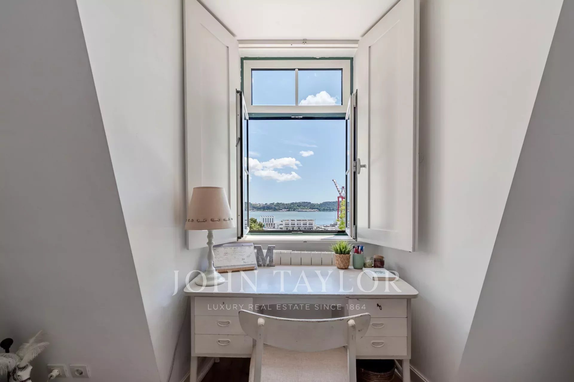 Spread across two expansive floors, this elegant four-bedroom duplex is ideally situated in Lisbon’s sought-after Lapa neighborhood. Boasting uninterrupted views of the Tagus River and the iconic Museu Nacional de Arte Antiga, the property combines timeless architectural charm with modern comfort.