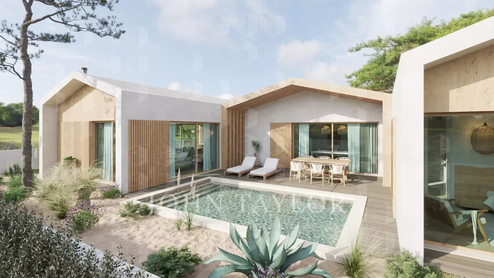 A project is in place for a 4-bedroom villa with 240 m² of construction. The design blends clean, modern lines with the natural surroundings of the Alentejo, with generous indoor and outdoor spaces.