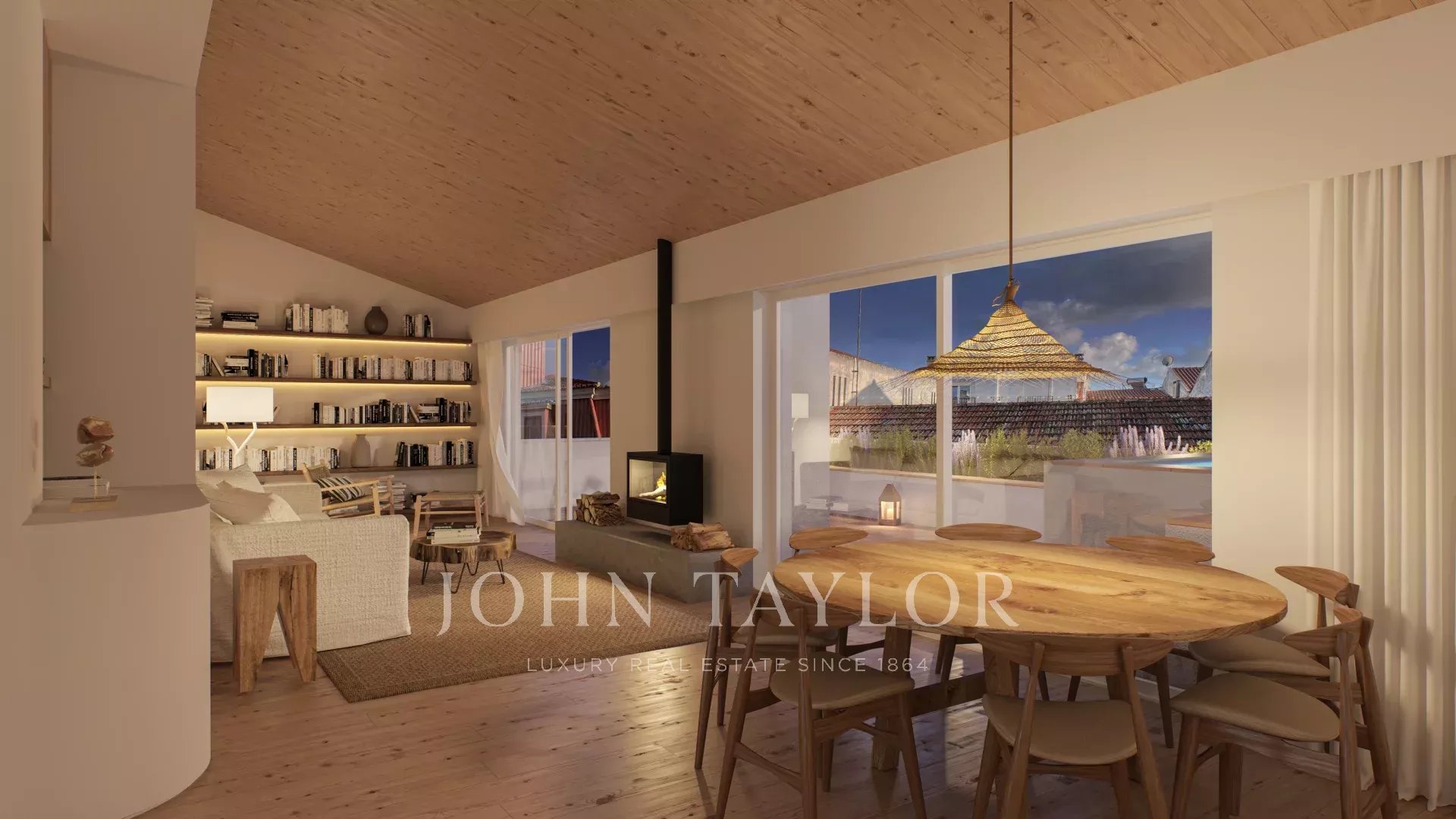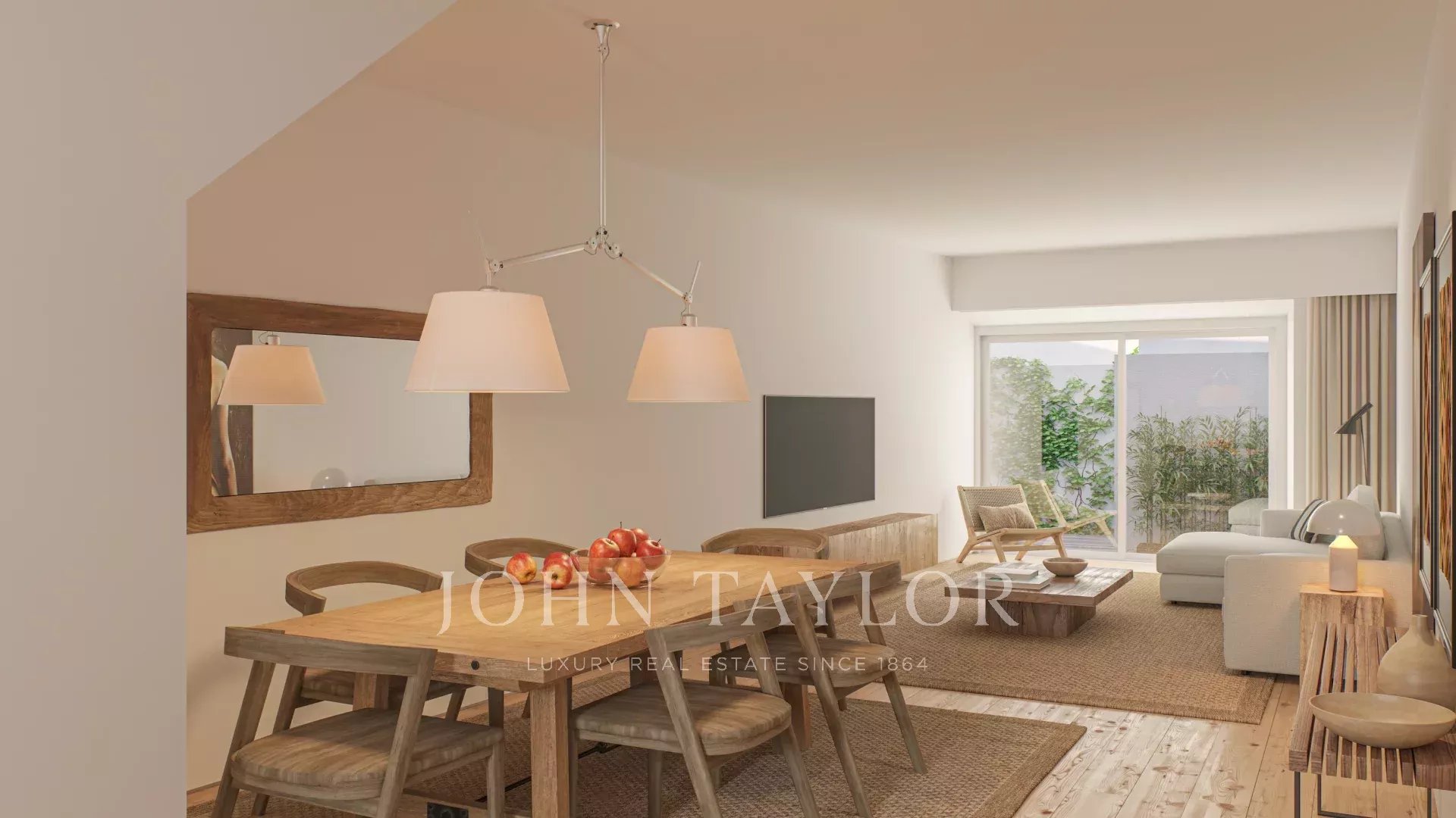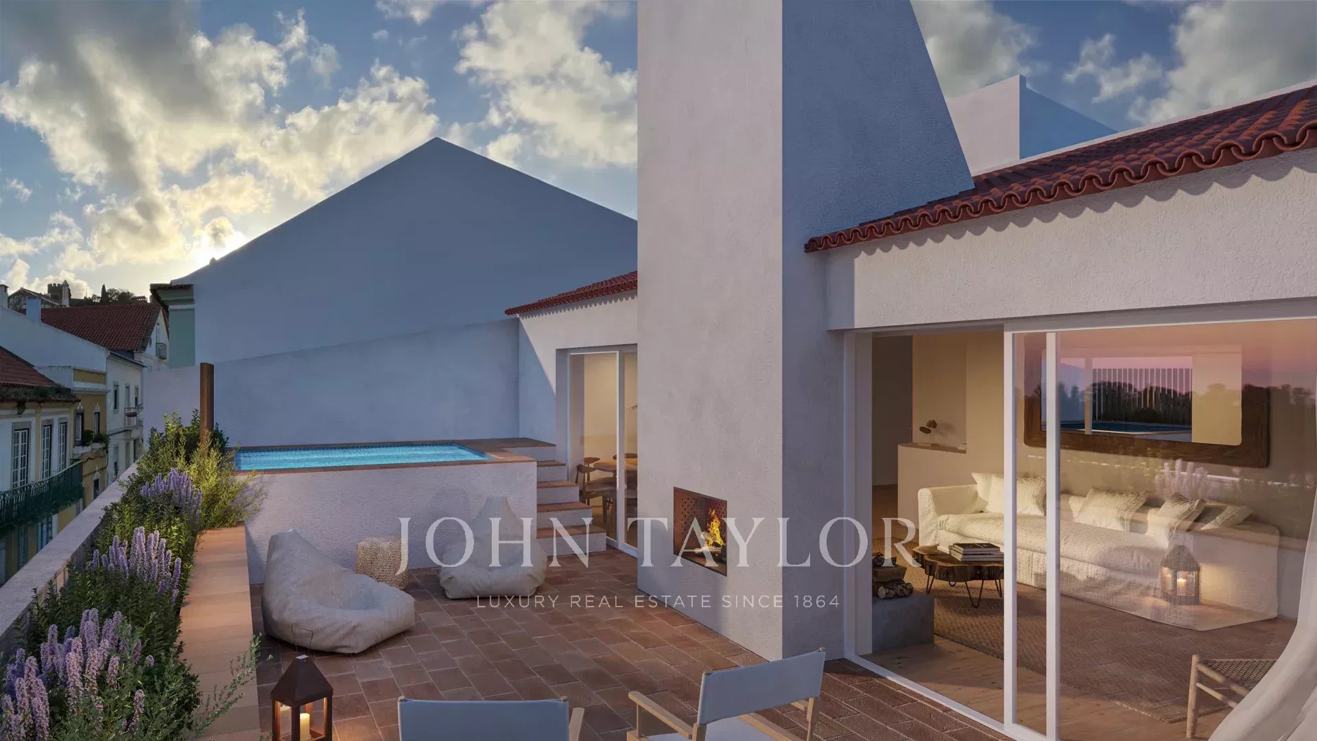 T4 Duplex Apartment: First Floor with 2 suites, 2 bedrooms, and an additional full bathroom. Second Floor includes a open kitchen, a social bathroom, dining room and living room with access to an exterior terrace featuring a pool and a outdoor fireplace.