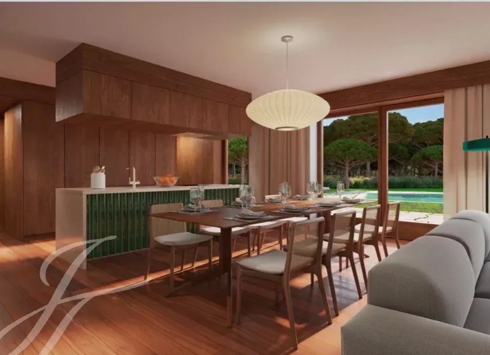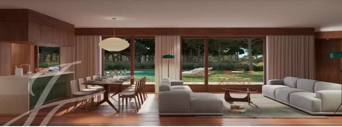 The connection to the outside, through large windows, and with a covered area, guarantee living in harmony with nature, the pine trees, in absolute peace and privacy.