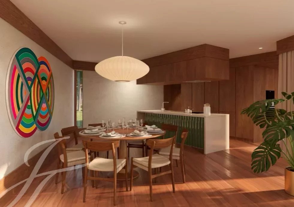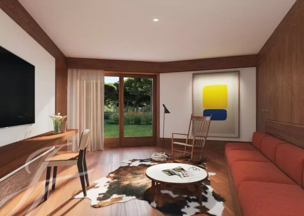 The large living room and dining area of 54 m2, very well integrated with the views of nature outside, is supported by the open, fully equipped kitchen.