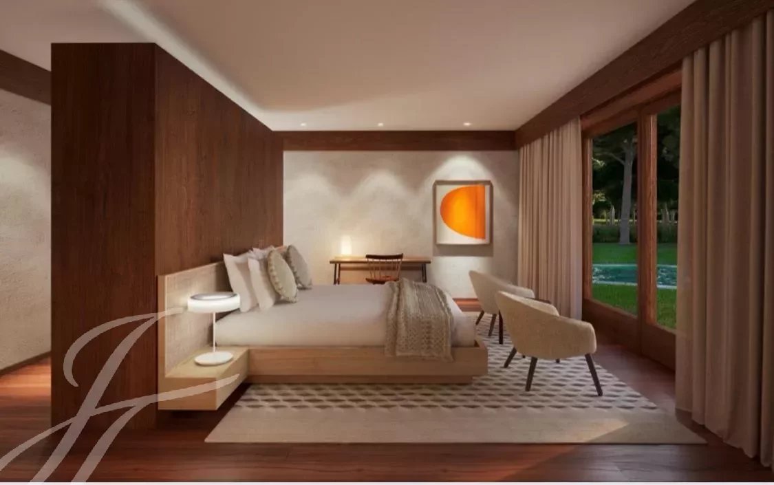 Conceived and designed by the renowned Promontório Arquitectos studio, this luxury condominium has 18 detached villas, duly integrated into the landscape structure of the golf course and the surrounding pine forest landscape, which served as inspiration for the materials and colors used, together with stone, glazed ceramics and natural wood.