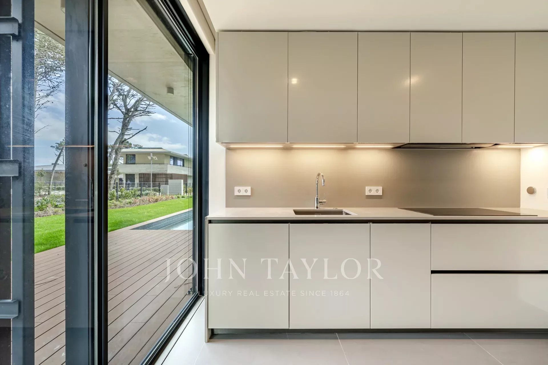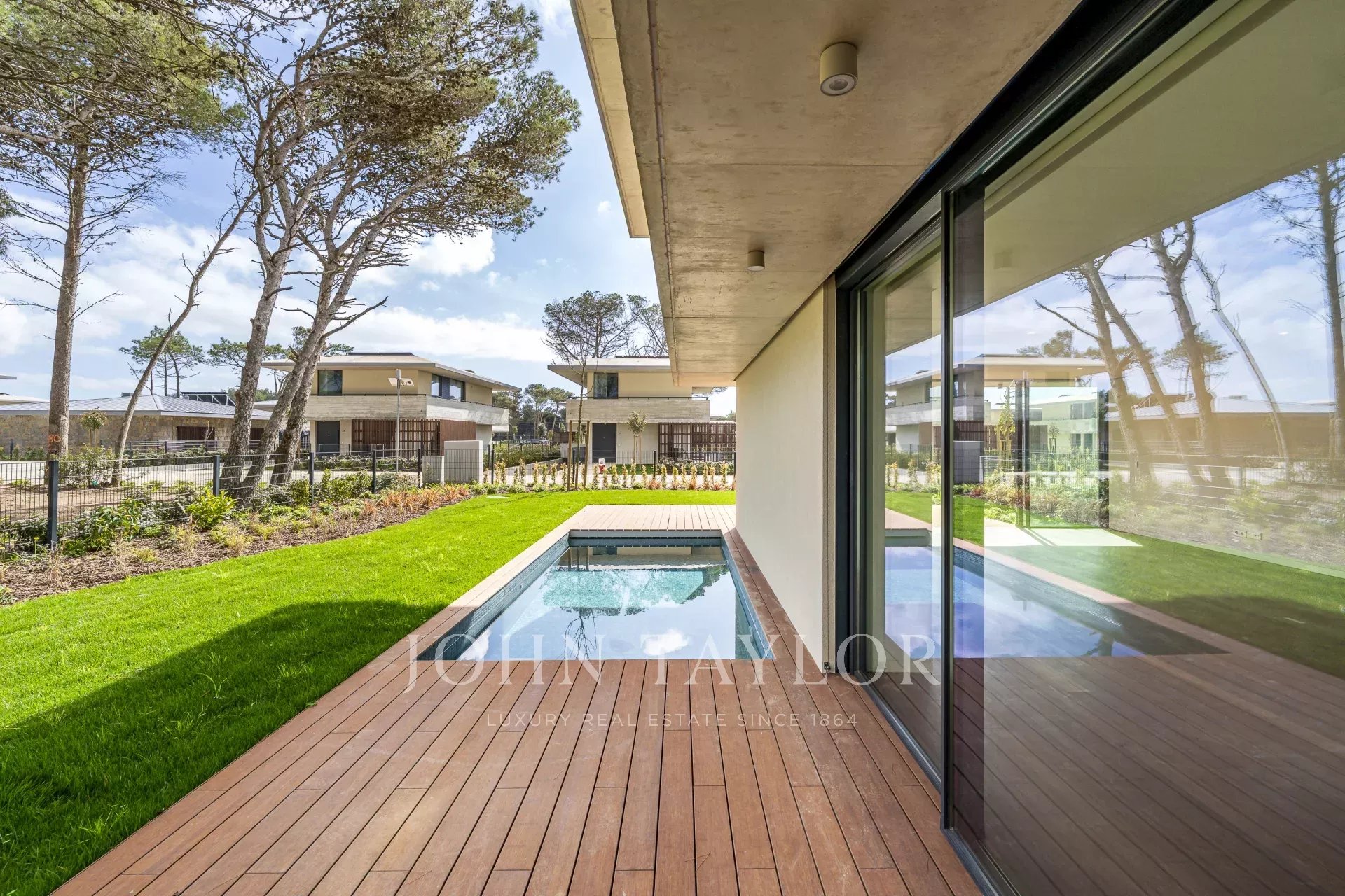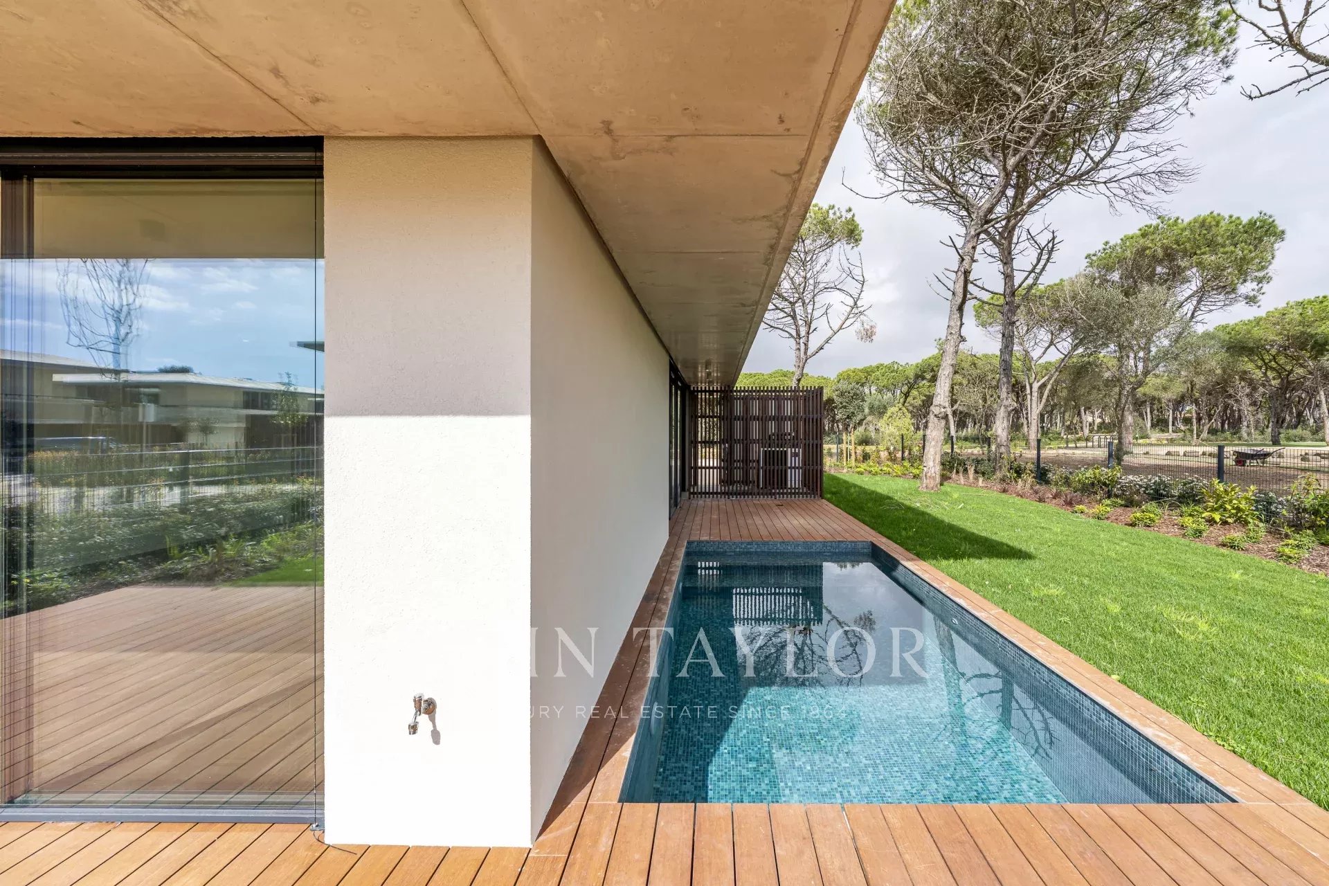 The property offers a gross floor area of 176 m² on a 392 m² plot. Outside, there’s a 41 m² deck, a private swimming pool, and a 304 m² garden.