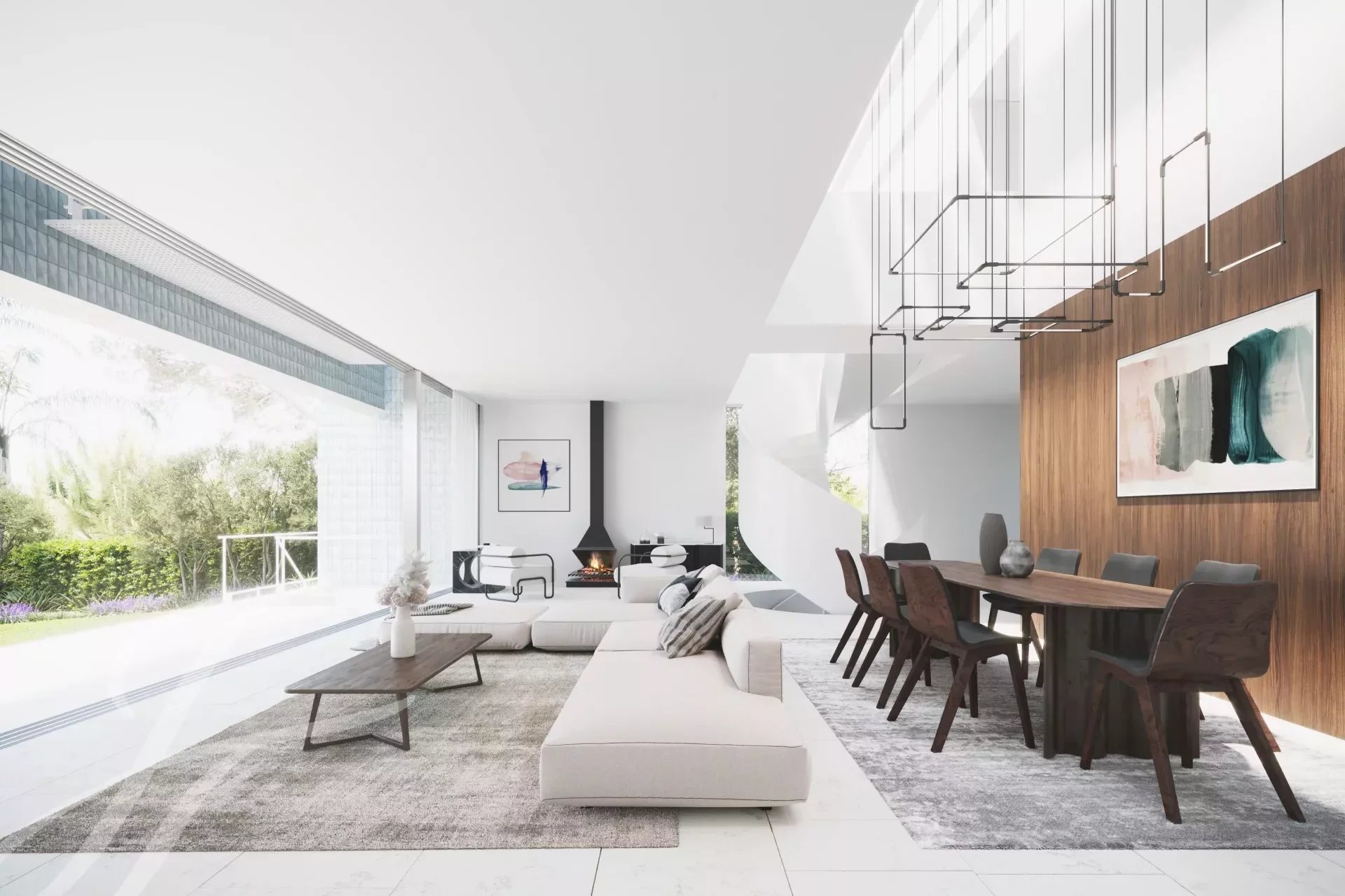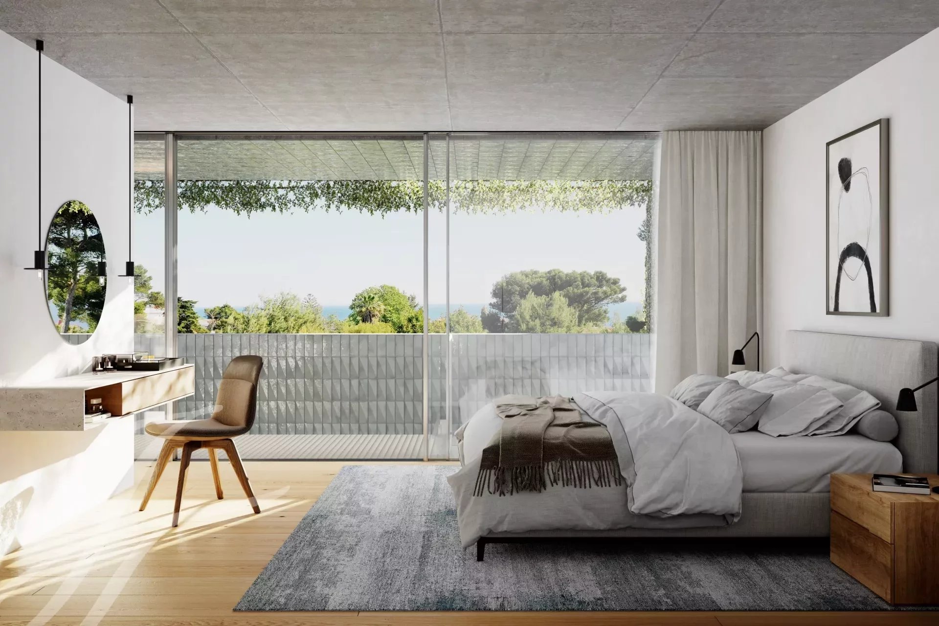 With its minimalist design, open spaces and excellent sun exposure, this exclusive development of just seven villas is located adjacent to the Pinhal de Santa Maria garden on Avenida do Lidador, offering stunning views of the gardens and sea.