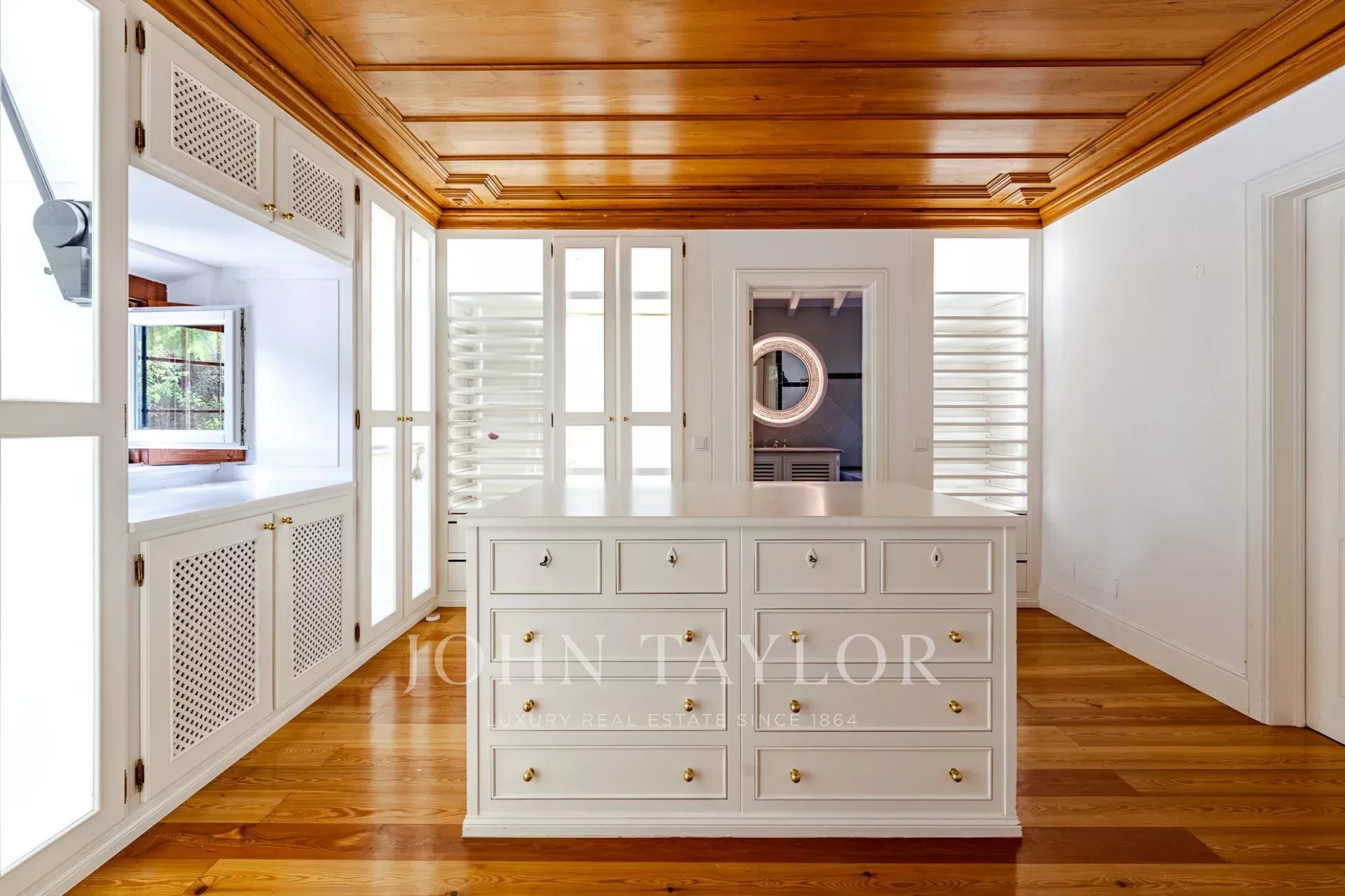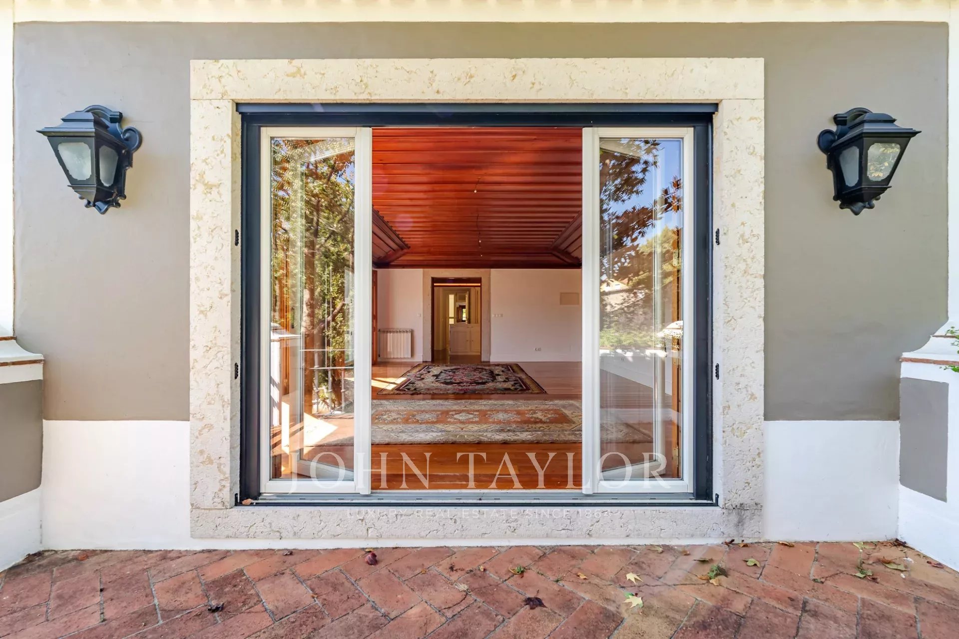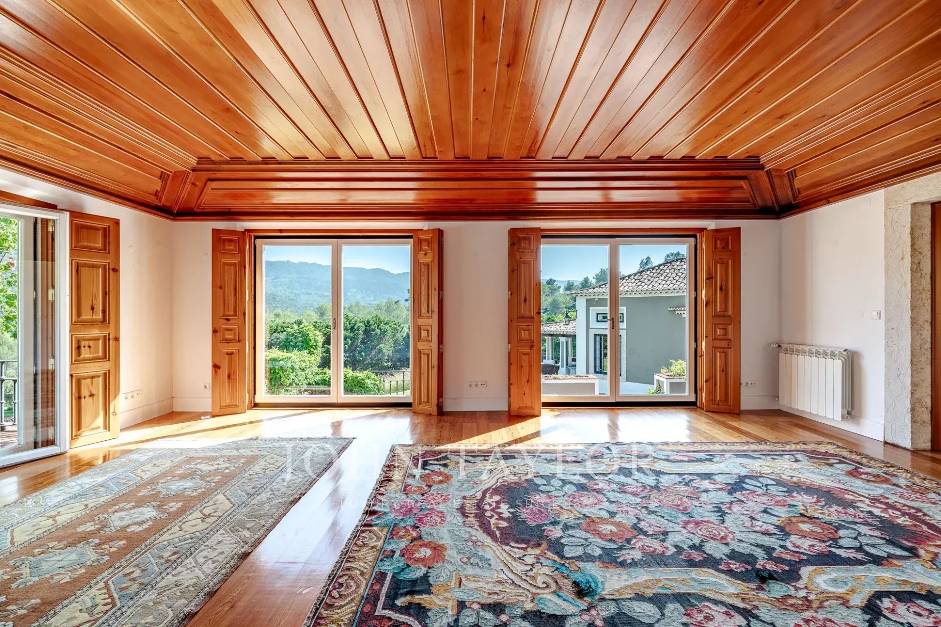 * Spacious master suite with floor-to-ceiling windows, two walk-in closets, and a private terrace offering breathtaking views over the hills of Sintra.