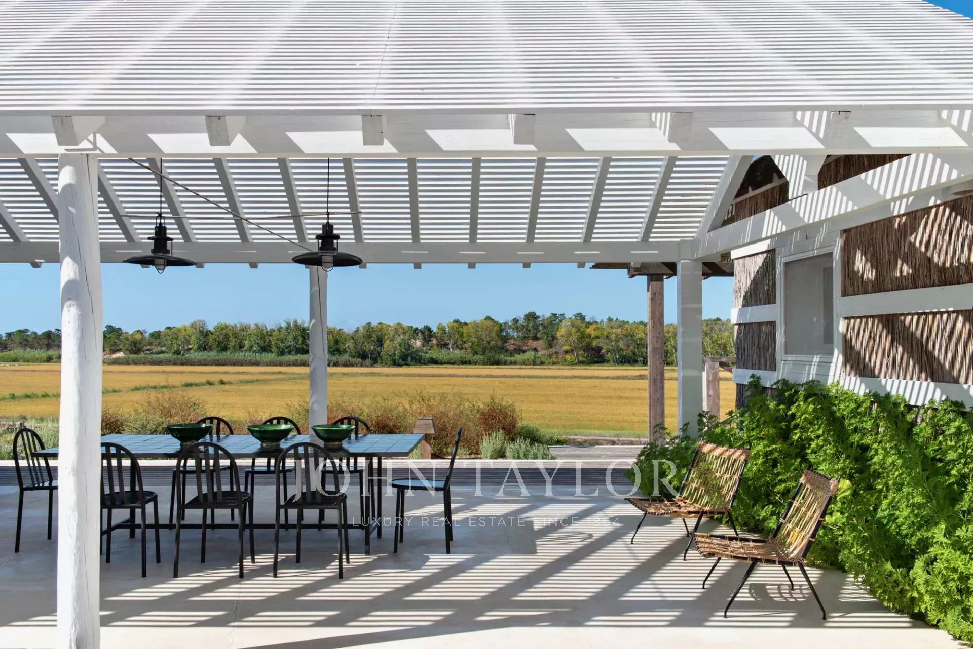 This exceptional property is located in the Brejos Natural Reserve, offering panoramic views of the rice paddies and scenic pine trees. Just a short walk from the private Brejos beach, this hidden gem spans 6,495 m² of land.